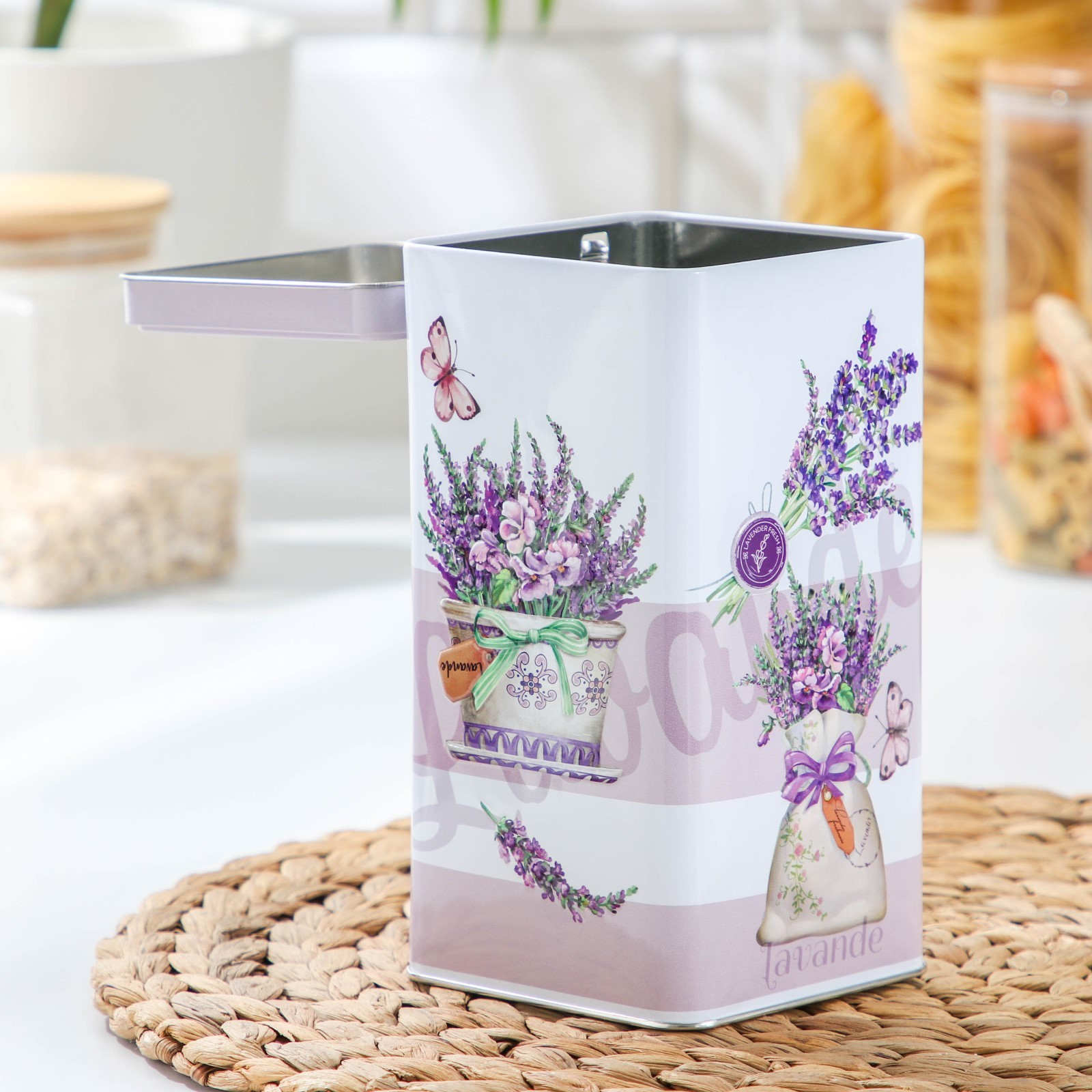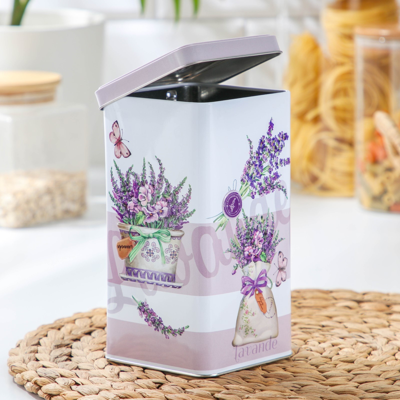 Банка с крышкой для сыпучих продуктов «лаванда-3», 1,2 л, 9x16,5 см, прямоугольная
