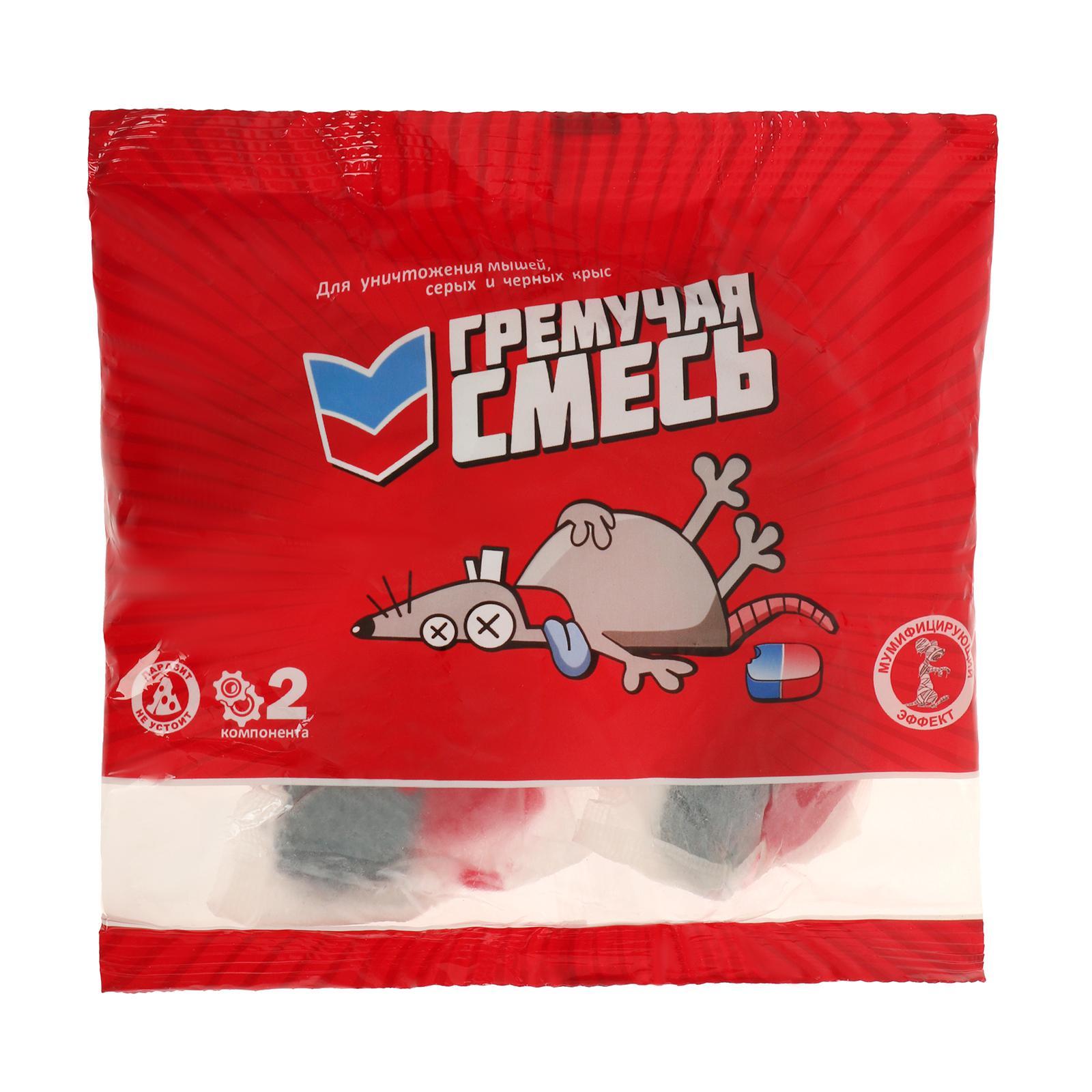 Тесто-брикеты от грызунов "гремучая смесь", пакет, 100 г. Гремучая смесь – это приманка для мышей, крыс и других грызунов. Которая позволяет эффективно справиться с грызунами как в домашних условиях, так и в подсобных, складских помещениях и общественных зданиях. Основное действующее вещество - бродифакум (0, 005%) – это антикоагулянт, который нарушает свертываемость крови. Грызуны съедают летальную дозу уже после первого подхода к корму, и затем любое внешнее или внутреннее повреждение приводит к гибели. Раскладывайте приманку, не вынимая из бумажных фильтр-пакетов. Они пропускают запах, привлекая вредителей, но при этом не поддаются действию влажности и других разрушающих факторов, поэтому их можно использовать как в помещении, так и снаружи здания. Перед работой наденьте защитные перчатки и не допускайте попадания токсинов на кожу и в глаза. Если в доме есть дети и домашние животные, устанавливайте приманку в недоступных для них местах, например, внутри приманочных домиков. Состав: бродифакум 0, 005%, пищевая основа, гореч, краситель. Срок годности: 24 месяца от даты изготовления. Вес, г: 100 Область применения: От грызунов Вид средства: Тесто-брикет Температурное ограничение: Нет  развернуть описание ▼