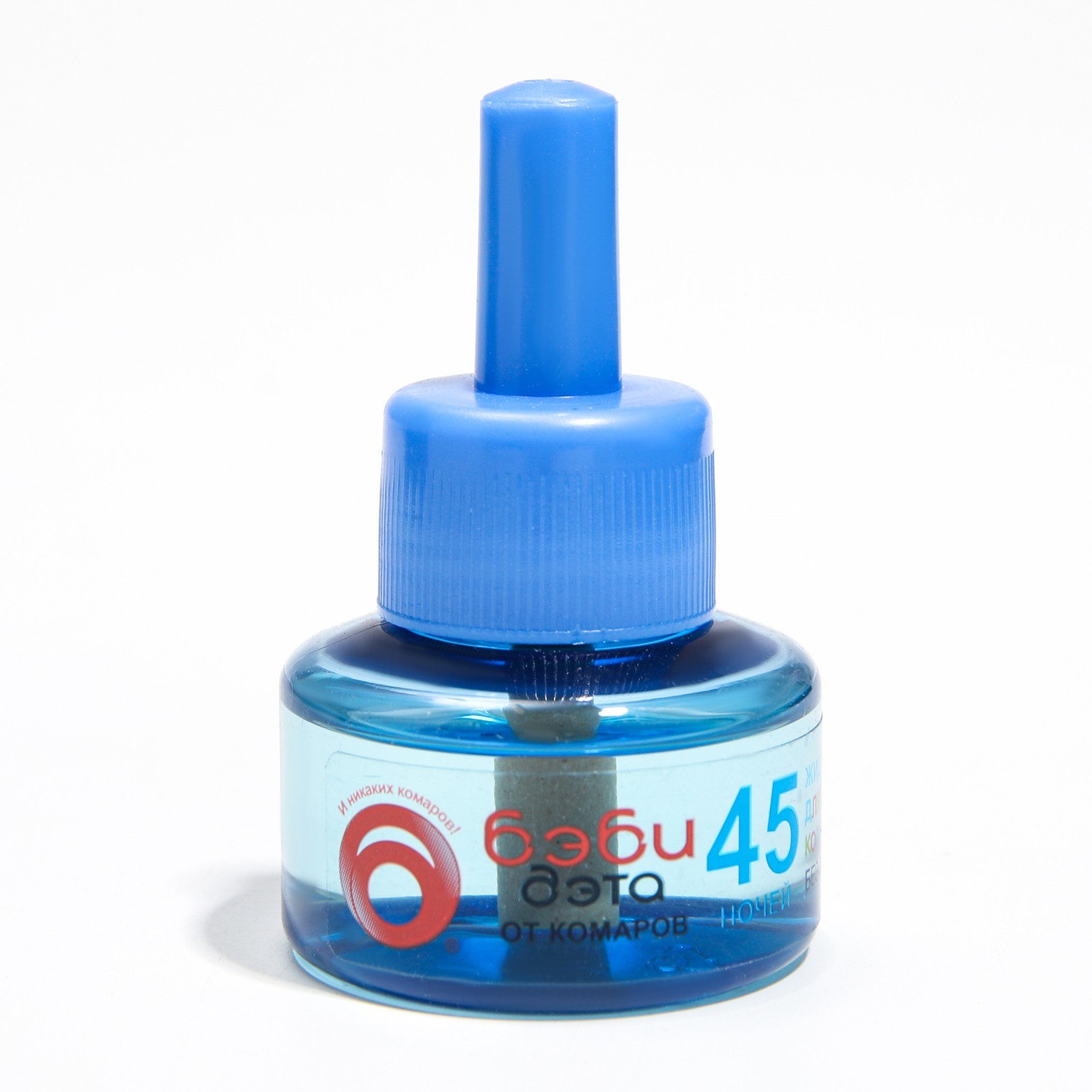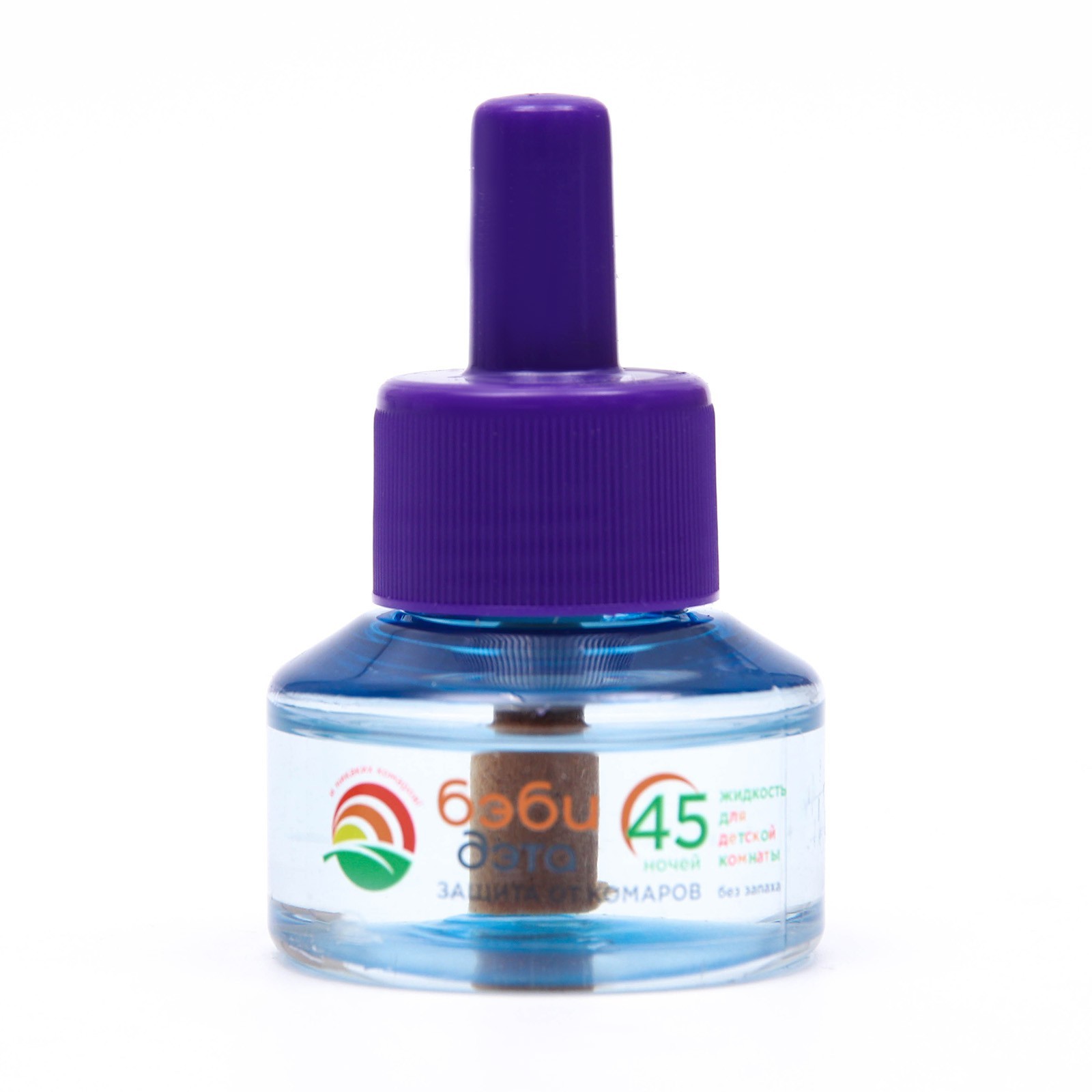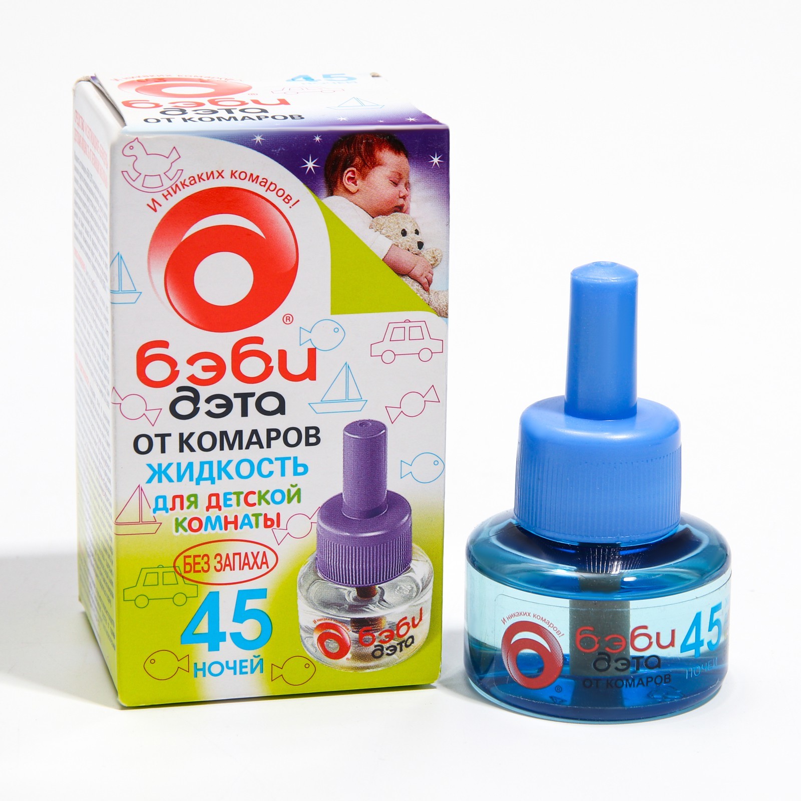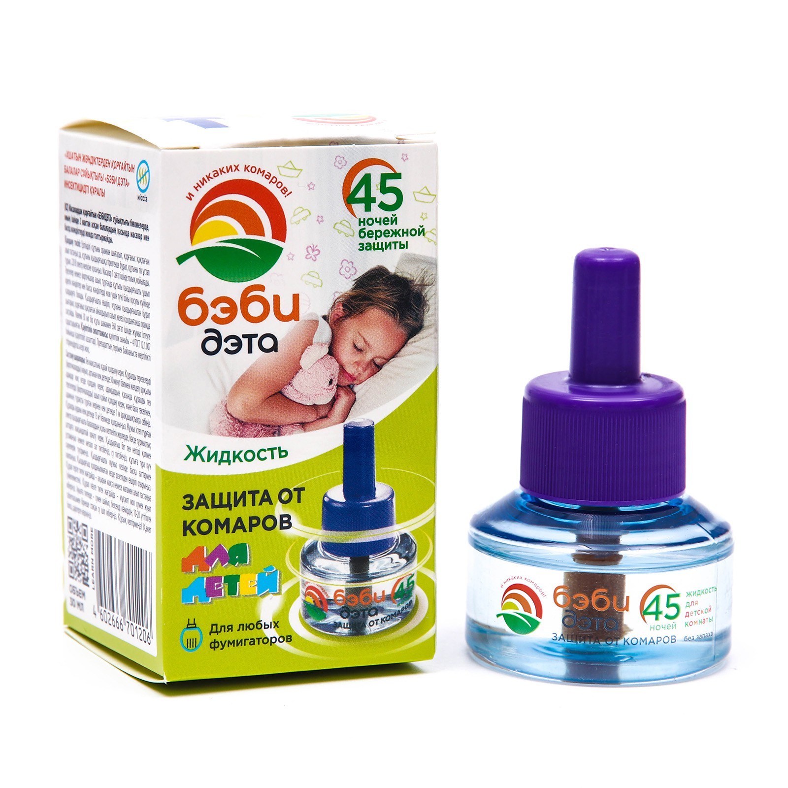 Дополнительный флакон-жидкость от комаров "дэта бэби", без запаха, 45 ночей, флакон, 30 мл. Жидкость от комаров и летающих насекомых для фумигатора, детский, ДЭТА БЭБИ незаменима для уничтожения комаров и других летающих насекомых (москитов, мошек, мух) в детской комнате. Специально разработанная рецептура, без запаха, гарантирует безопасность и эффективность использования. Подходит для малышей с двух лет. В составе натуральный пиретрин – экстракт далматской ромашки, природный инсектицид, безопасный для детей и беспощадный в борьбе с комарами. Один флакон жидкости обеспечивает крепкий сон ребёнка без надоедливых комаров на протяжении 45 ночей!Полное уничтожение комаров уже через 1 час после начала работы фумигатора. Жидкость подходит к большинству электрофумигаторов. Максимальный эффект достигается при использовании жидкости в комплекте с фумигатором БЭБИ ДЭТА. Для защиты от комаров и борьбы с другими насекомыми в ассортименте бренда ДЭТА представлена широкая линейка средств: для использования на улице и для домашнего использования; товары подходят для детей и взрослых. Со средствами бренда ДЭТА ваши любимые активности на природе – прогулка и пикник в парке или в лесу, выезд на природу, на дачу, в поход, на рыбалку, охоту, за грибами или на фестиваль пройдут без комаров. Для детской кожи особенно важно использовать безопасные средства от комаров. В ассортименте бренда БЭБИ ДЭТА есть спреи и аэрозоли, которые подходят для малышей и младенцев уже с 9 месяцев. Средства содержат пантенол, алоэ вера, аллантоин, в состав входит также ромашка и другие натуральные компоненты, которые помогают смягчить и увлажнить кожу, предотвращая раздражение от укусов комаров и других насекомых. Также для безопасного детского использования мы разработали браслеты и клипсы от комаров, которые удобно использовать во время прогулок на свежем воздухе. Торговая марка ДЭТА предлагает самые удобные формы средств помощи против насекомых - вредителей: аэрозоль, спрей, крем, молочко, гель, комплект (набор) фумигатор и жидкость или пластины (таблетки), стержни, спирали. Они содержат отпугивающие вещества и эффективно отгоняют комаров, а также других вредителей. Большинство средств содержат активные компоненты – дэта (диэтилтолуамид) или ir3535 - эффективное против насекомых вещество, которое безопасно для использования в соответствии с инструкцией по применению к средству (это справедливо в т. ч. для бытовой химии, косметических средств, репеллентов и инсектицидов). Мы также рекомендуем попробовать средства ДЭТА против клещей (в т. ч. иксодовых клешей), мошек, мокрецов, слепней, москитов, ос, клопов, блох, мух, тараканов и других летающих насекомых. Продукты ДЭТА защитят ваш дом от назойливых насекомых, обеспечат приятную и беззаботную прогулку на свежем воздухе и отдых на даче для всей семьи. Состав:натуральные пиретрины (0, 025%), трансфлутрин (0, 1%), праллетрин (0, 5%); растворитель. Вид средства: Жидкость Назначение: От комаров Тип средства: Инсектицид  развернуть описание ▼