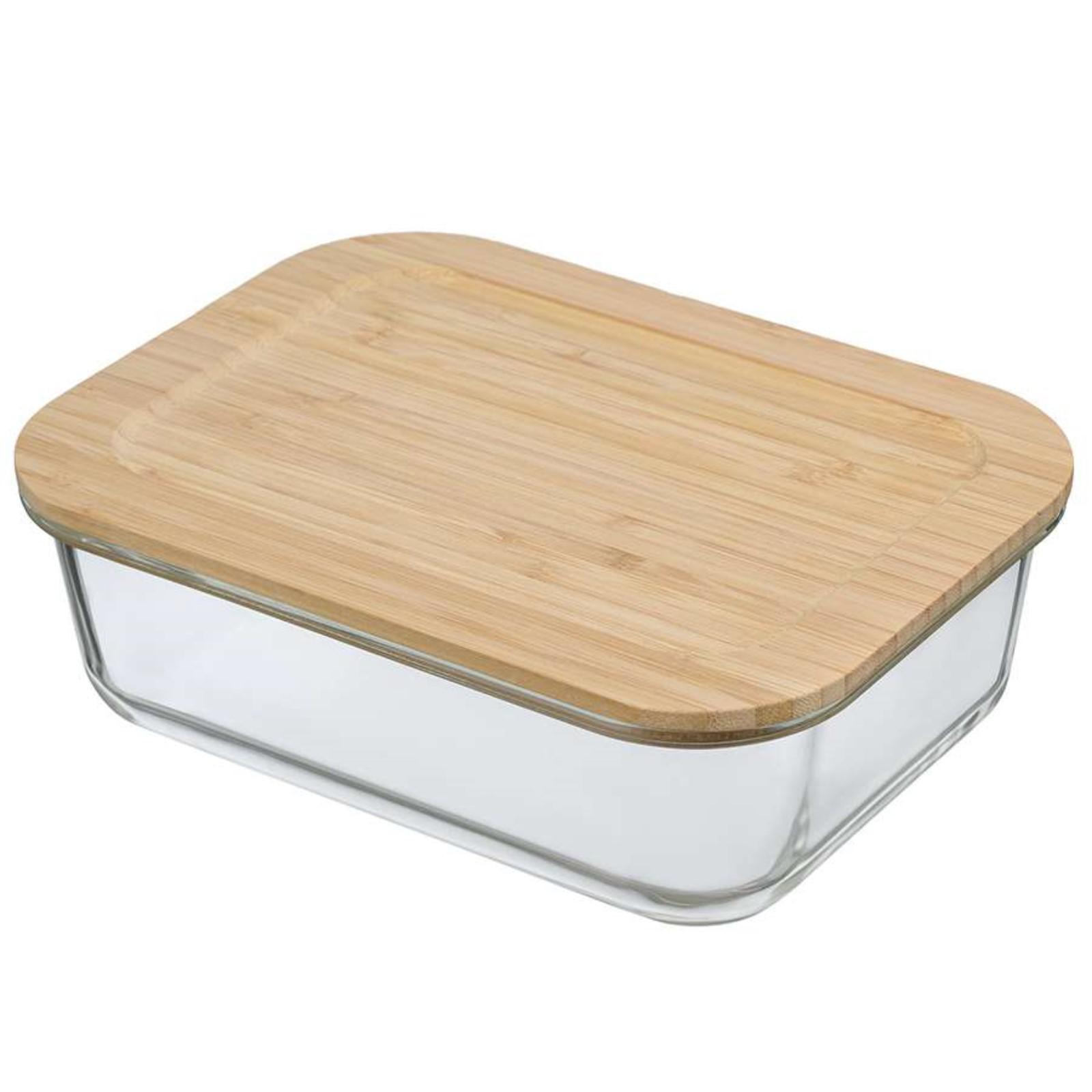 Контейнер для еды стеклянный 1520 мл, с крышкой из бамбука