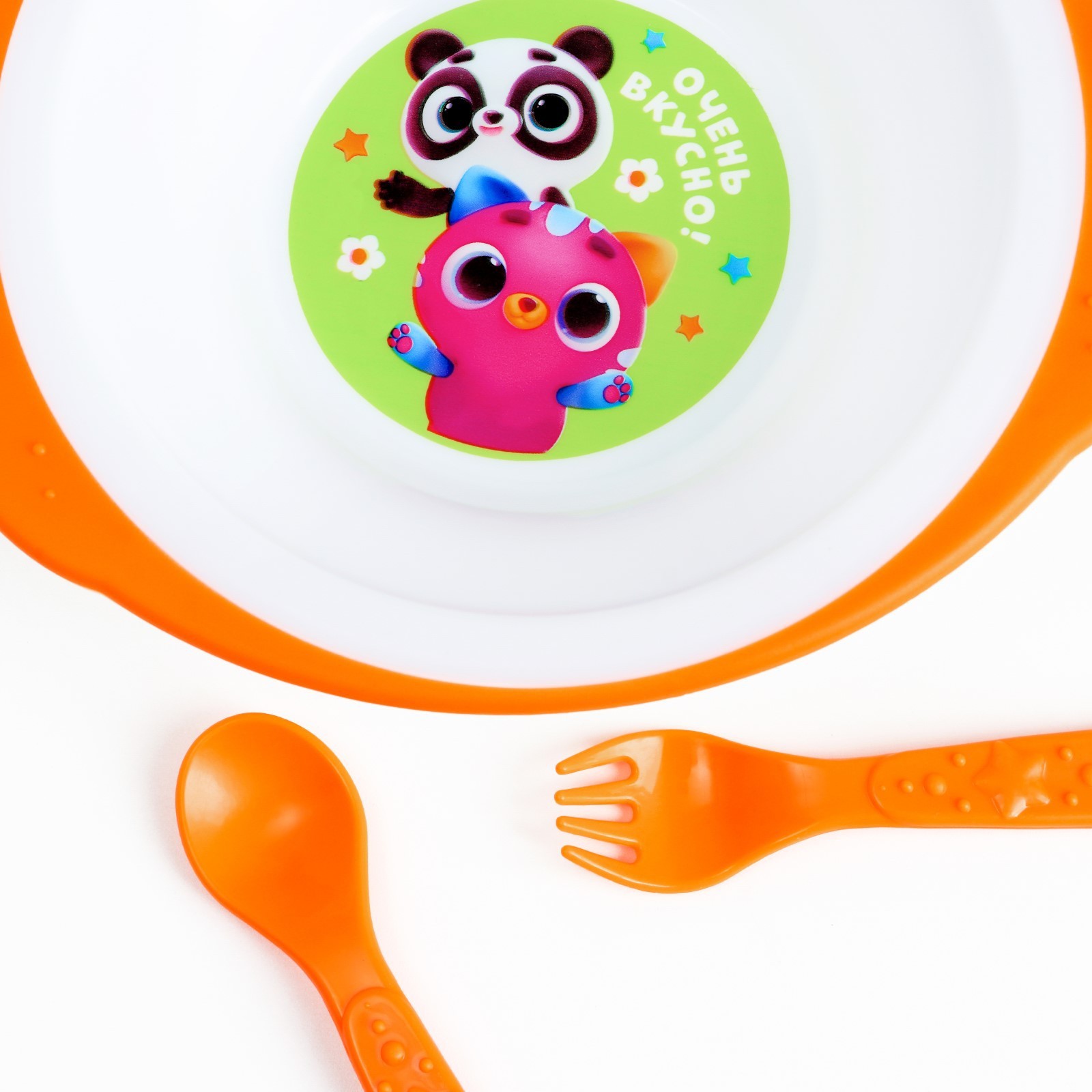 Набор детской посуды «очень вкусно», тарелка на присоске 250мл, вилка, ложка