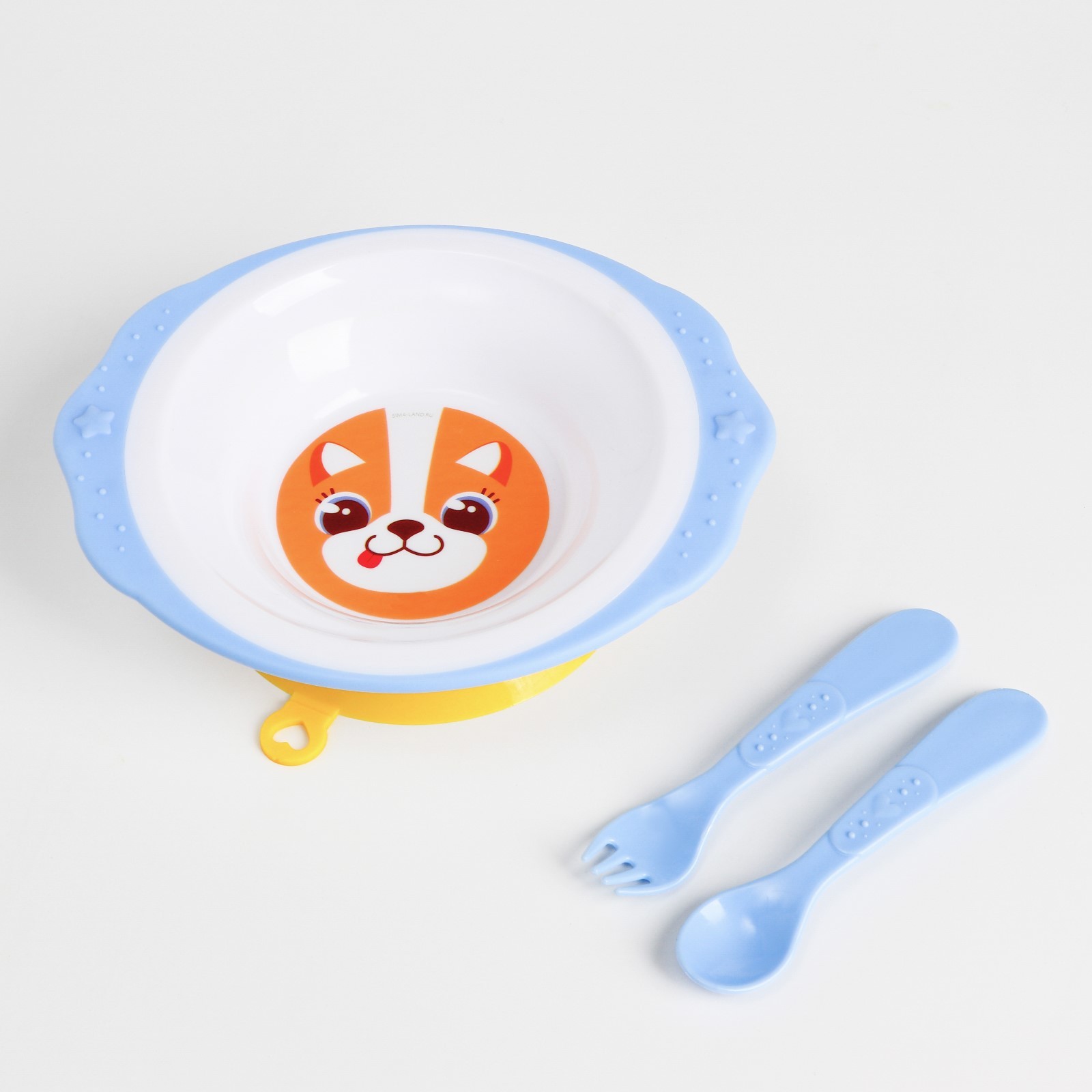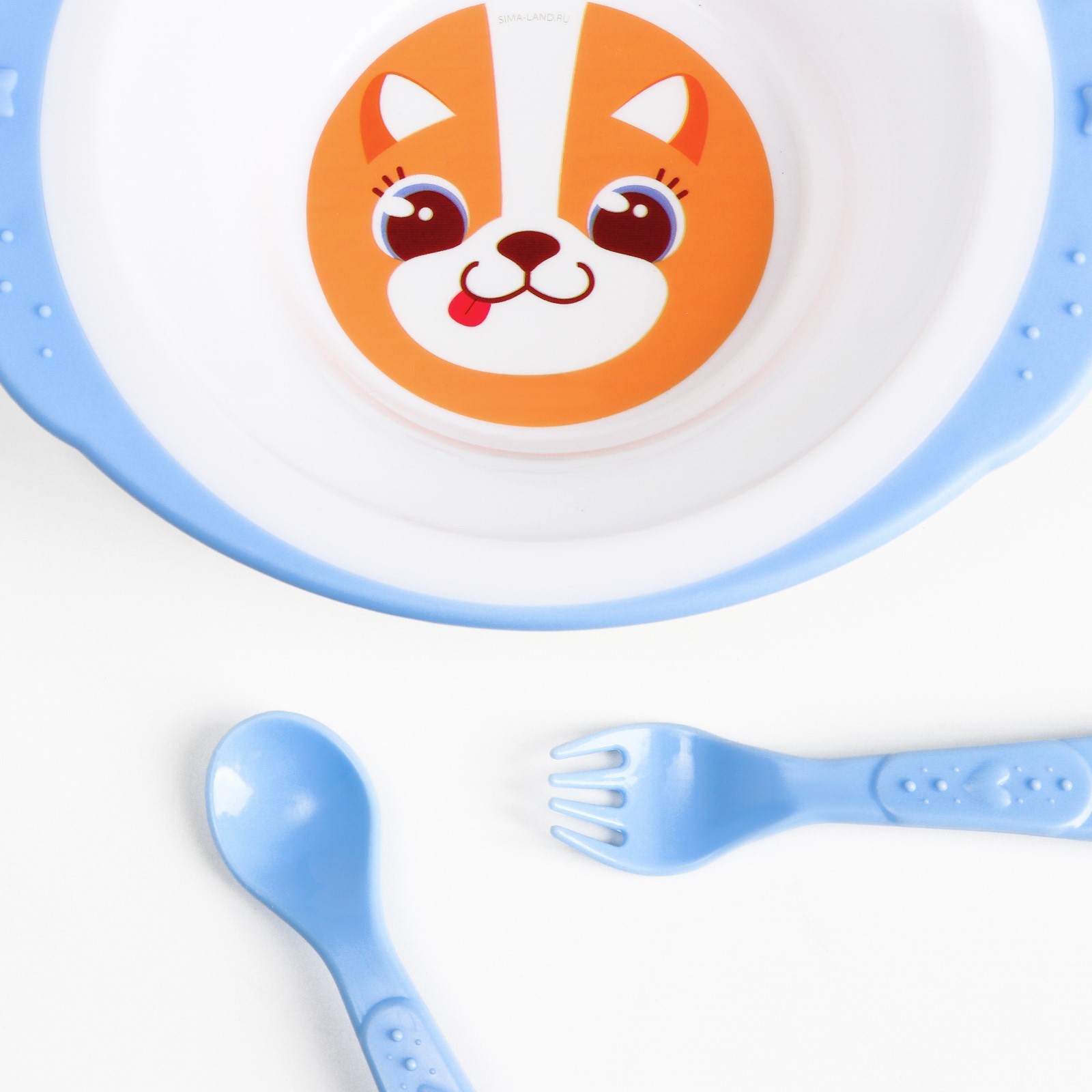 Набор детской посуды «корги», тарелка на присоске 250мл, вилка, ложка