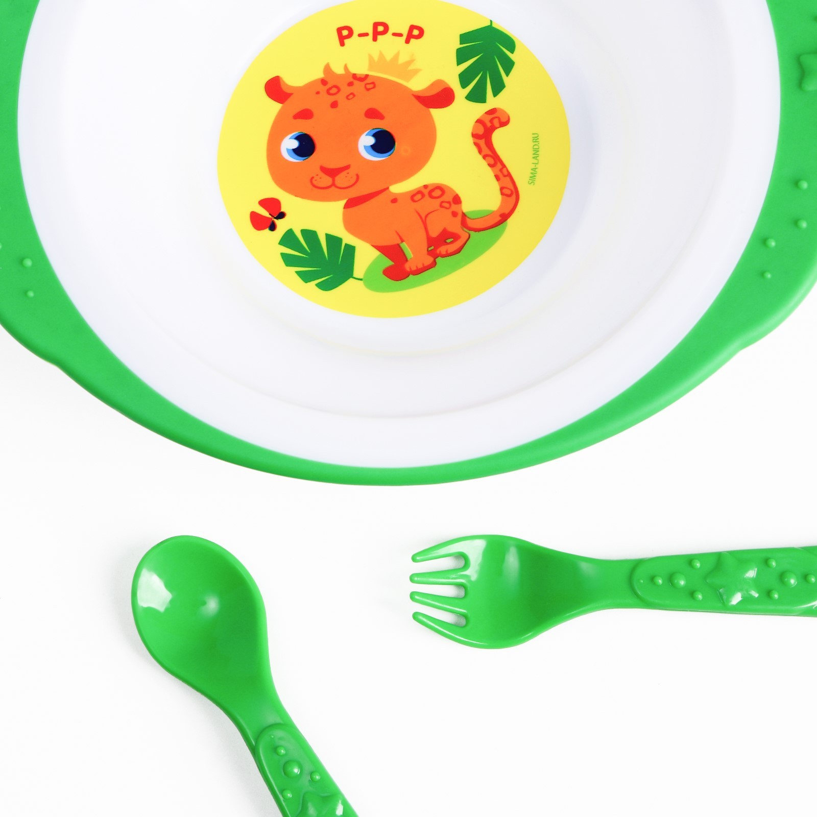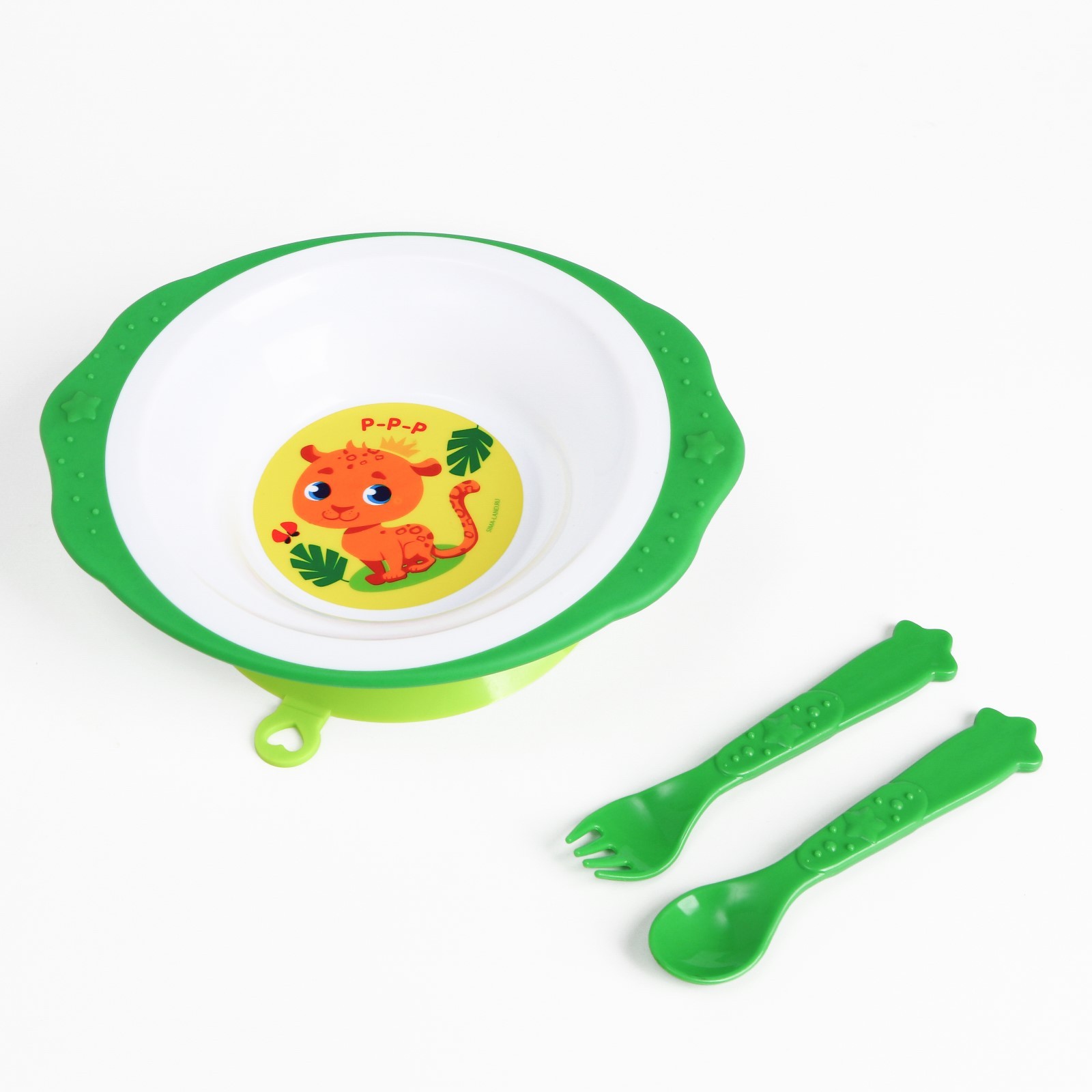 Набор детской посуды «леопард», тарелка на присоске 250мл, вилка, ложка