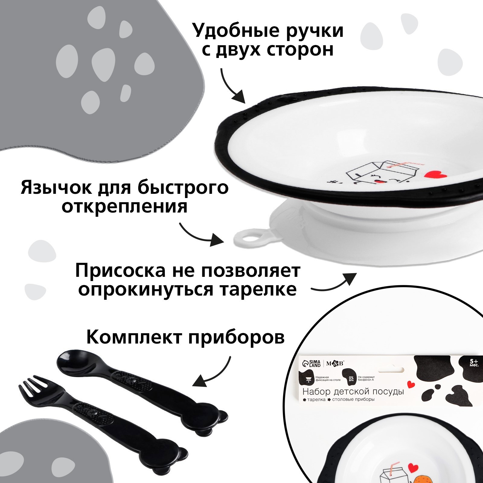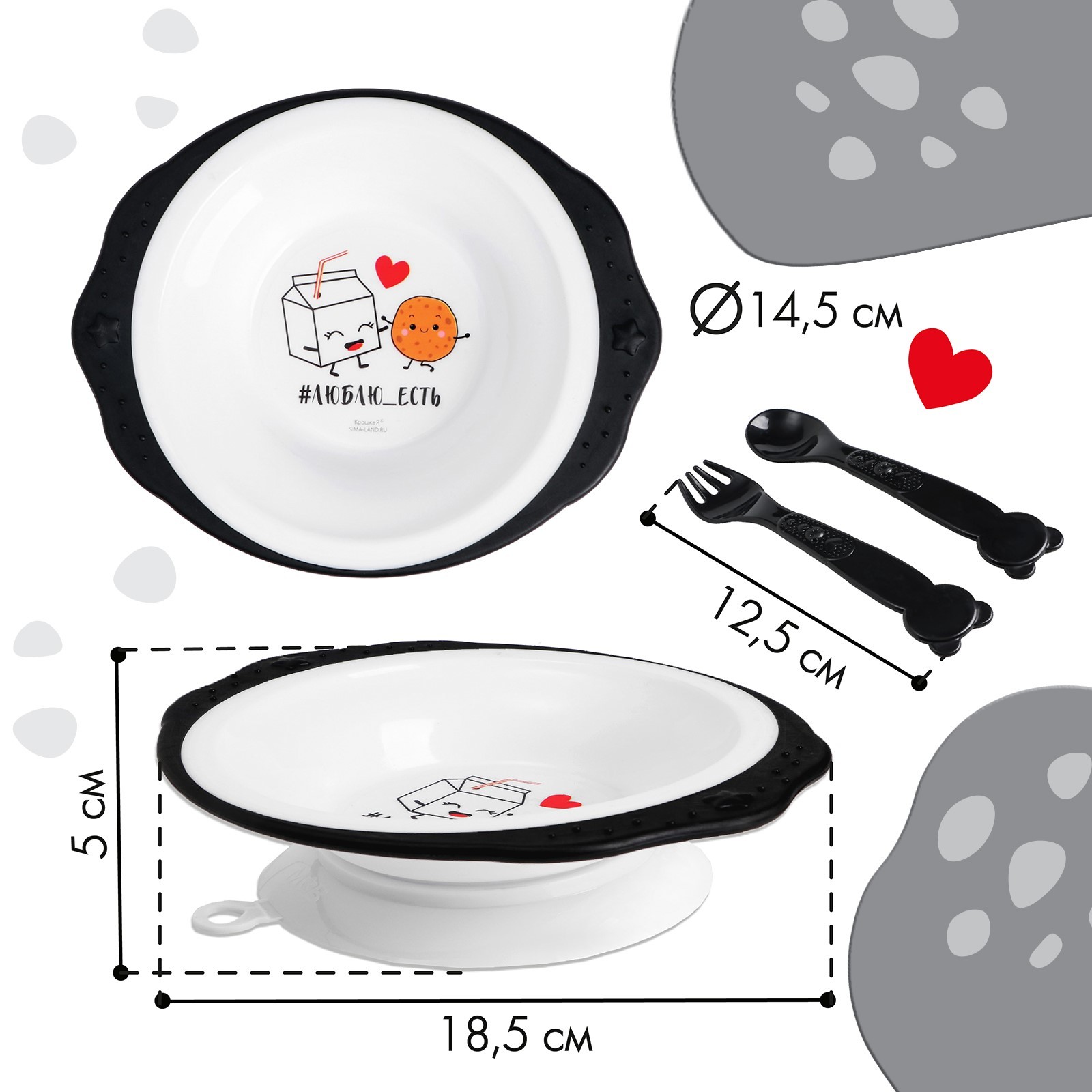 Набор детской посуды «люблю есть», тарелка на присоске 250мл, вилка, ложка