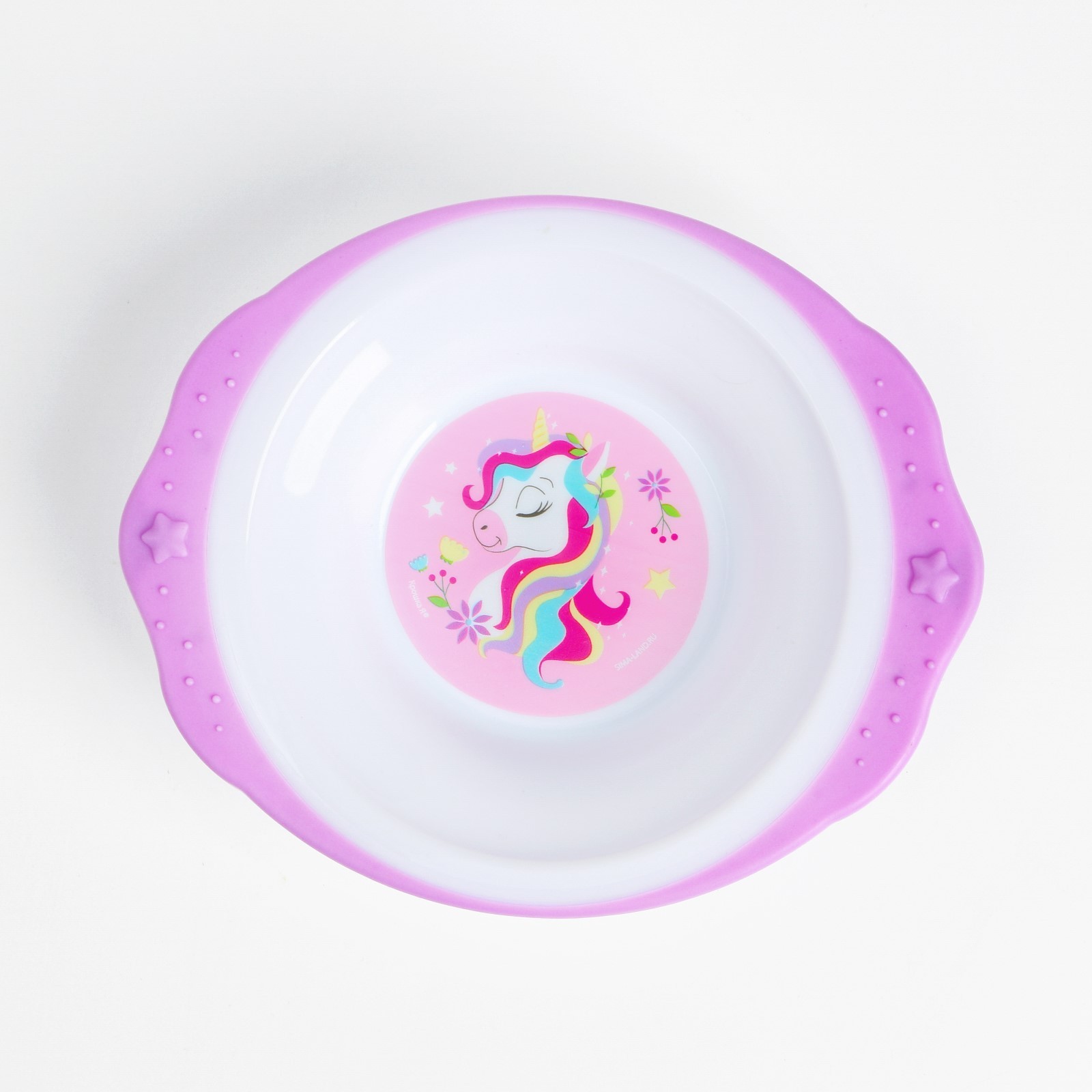 Набор детской посуды «единорожек», тарелка на присоске 250мл, вилка, ложка