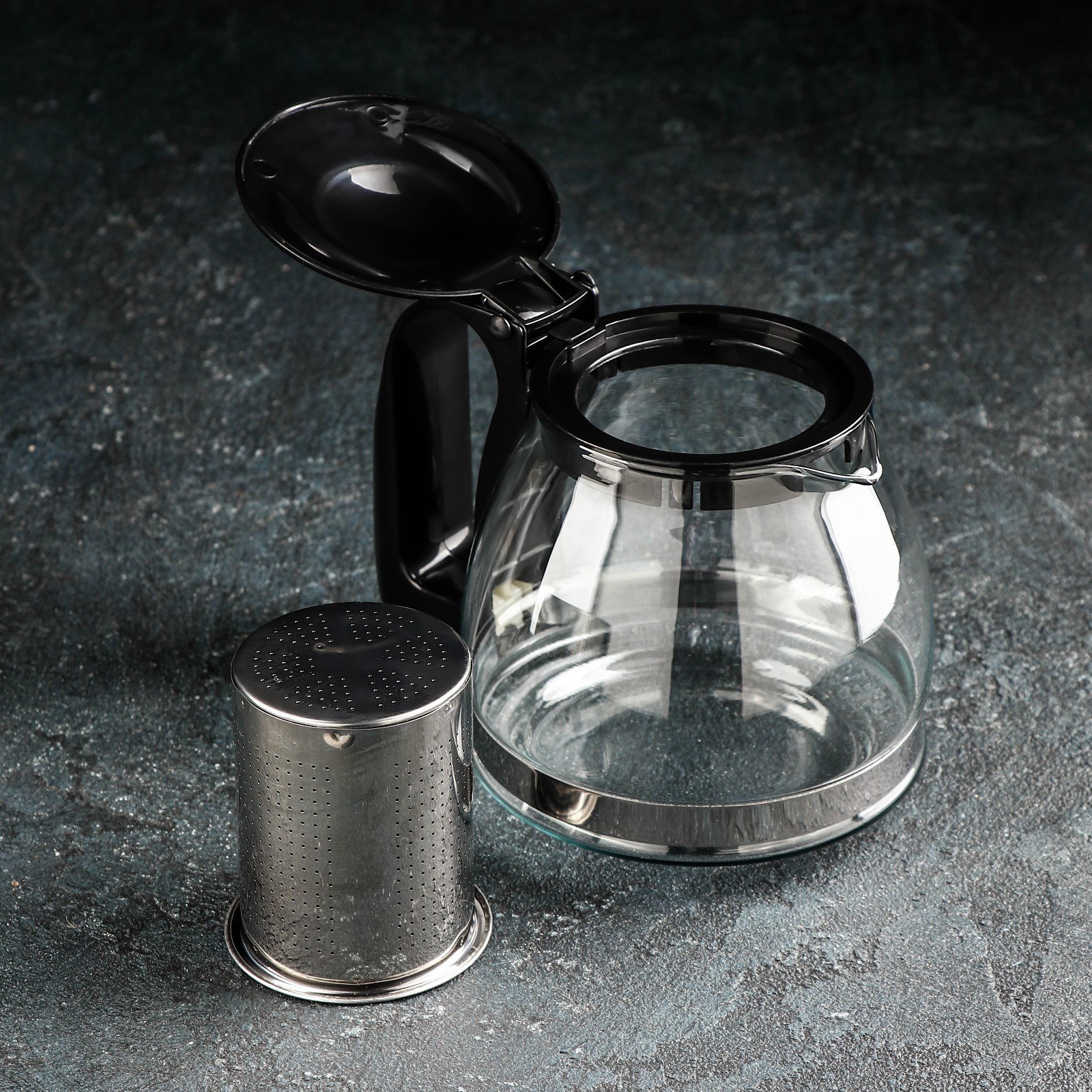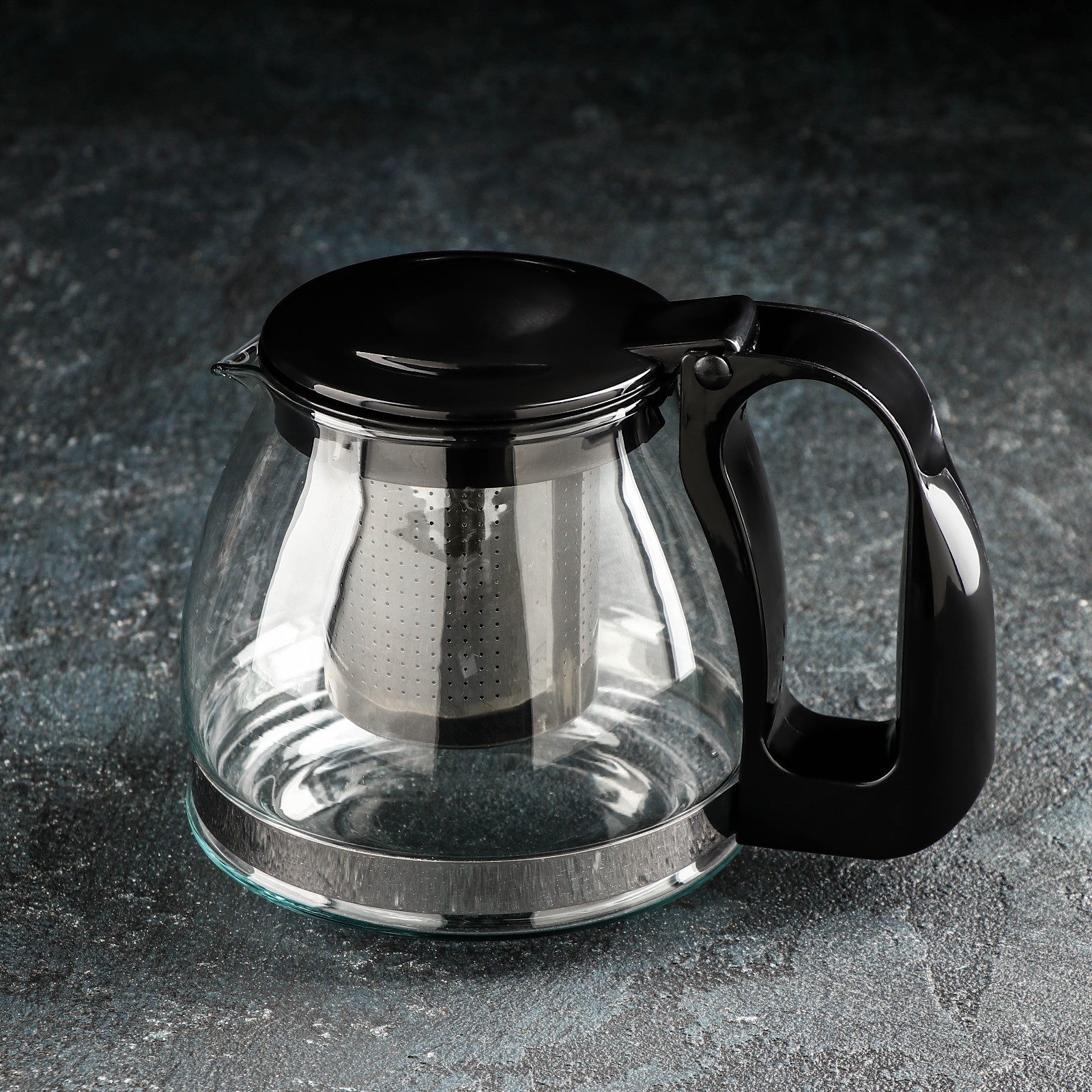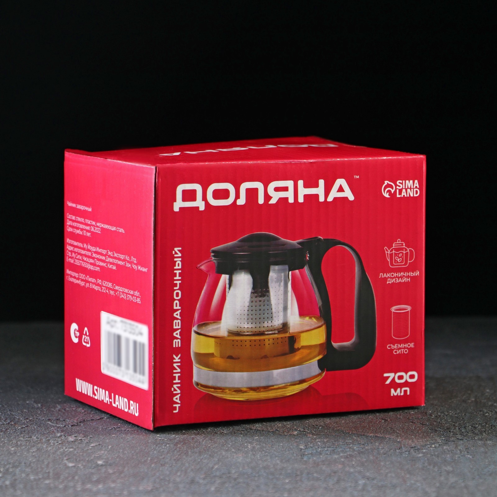 Чайник стеклянный заварочный доляна «иллюзия», 700 мл, с металлическим ситом, цвет чёрный