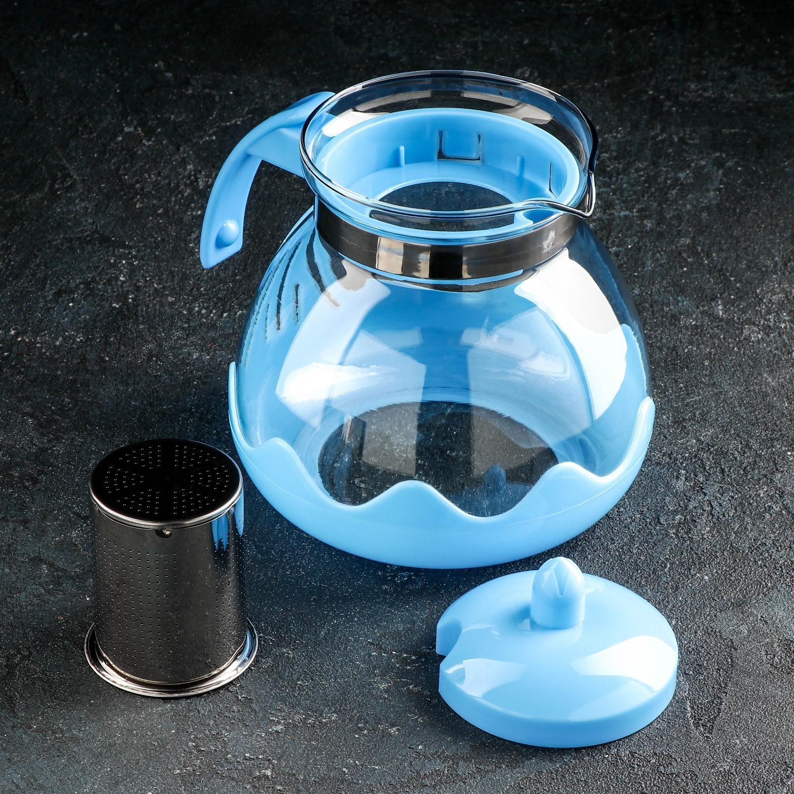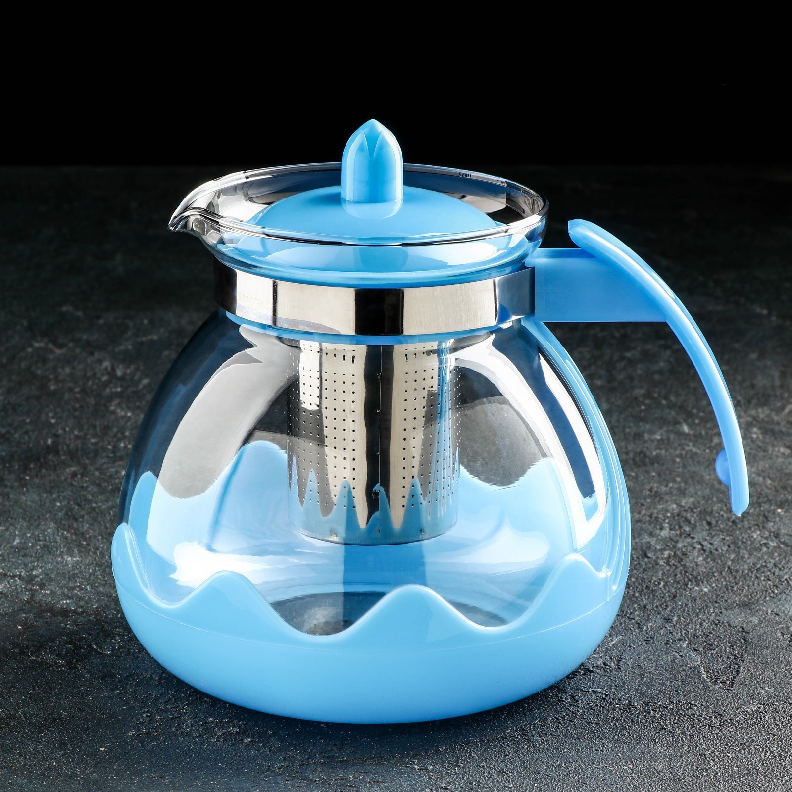 Чайник стеклянный заварочный доляна «волна», 1,5 л, с металлическим ситом, цвет голубой