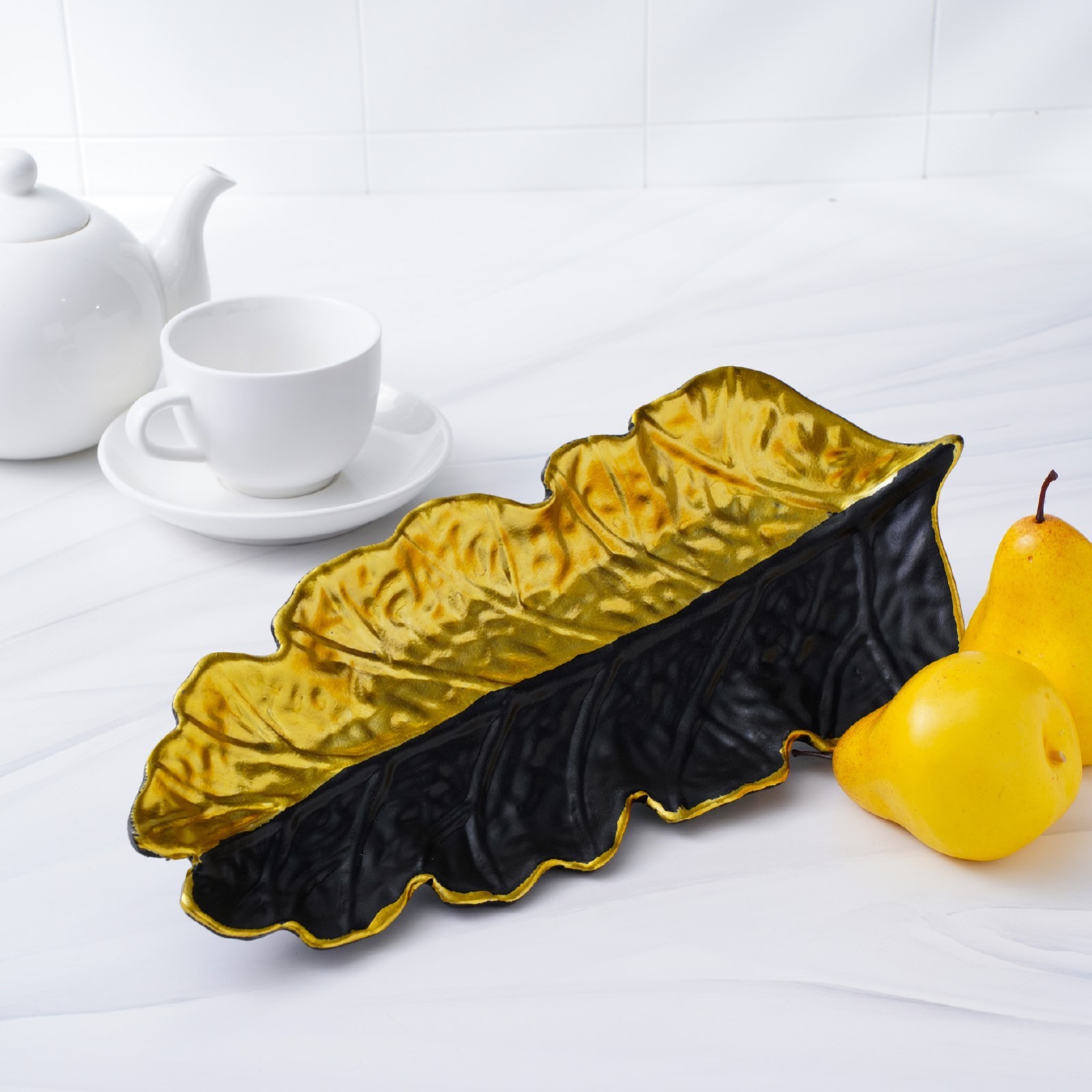 Блюдо для фруктов доляна «золотой лист», 37x14 см, цвет золотой с чёрным