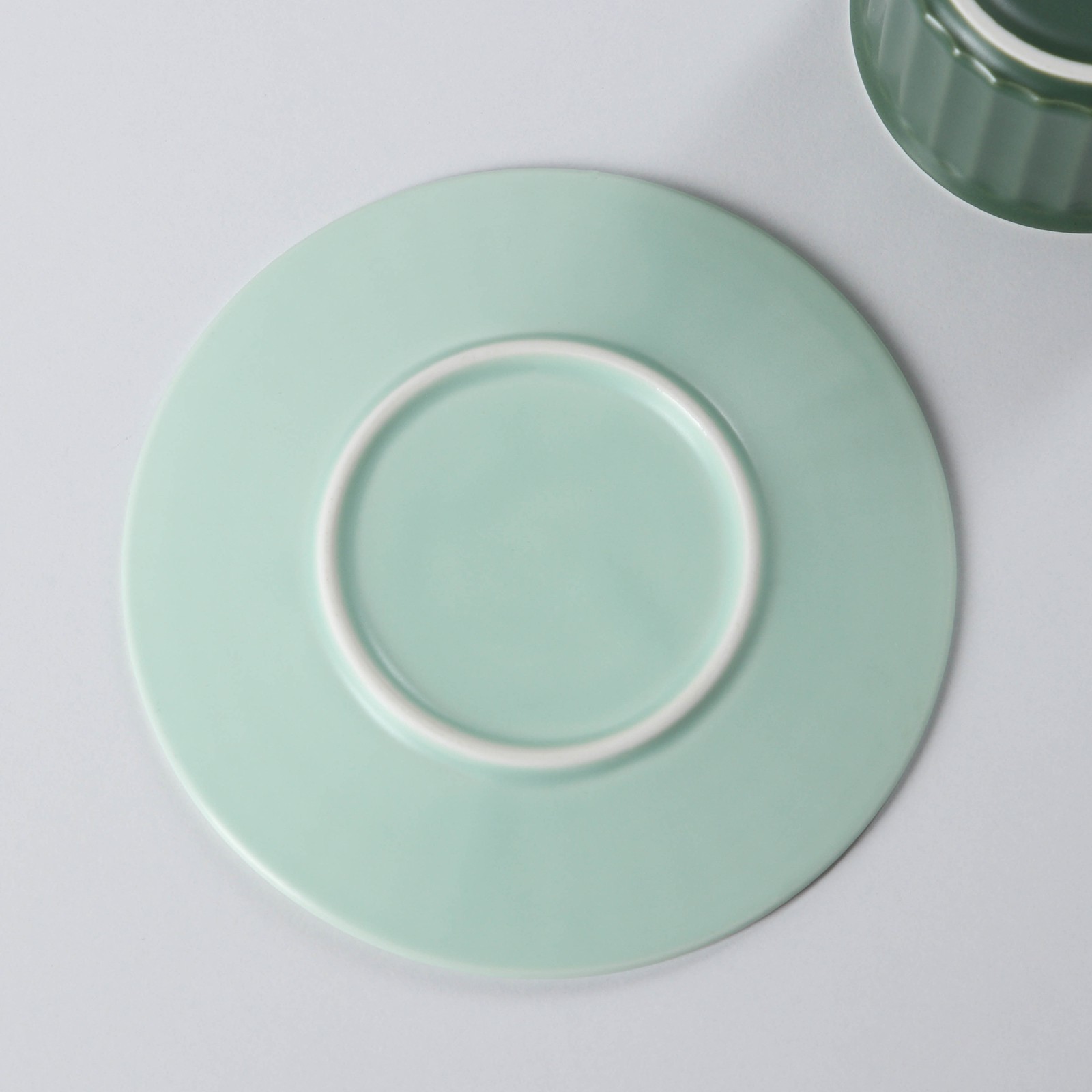 Чайная пара керамическая «профитроль», 3 предмета: чашка 180 мл, блюдце D=13,7 см, ложка, цвет зелёный