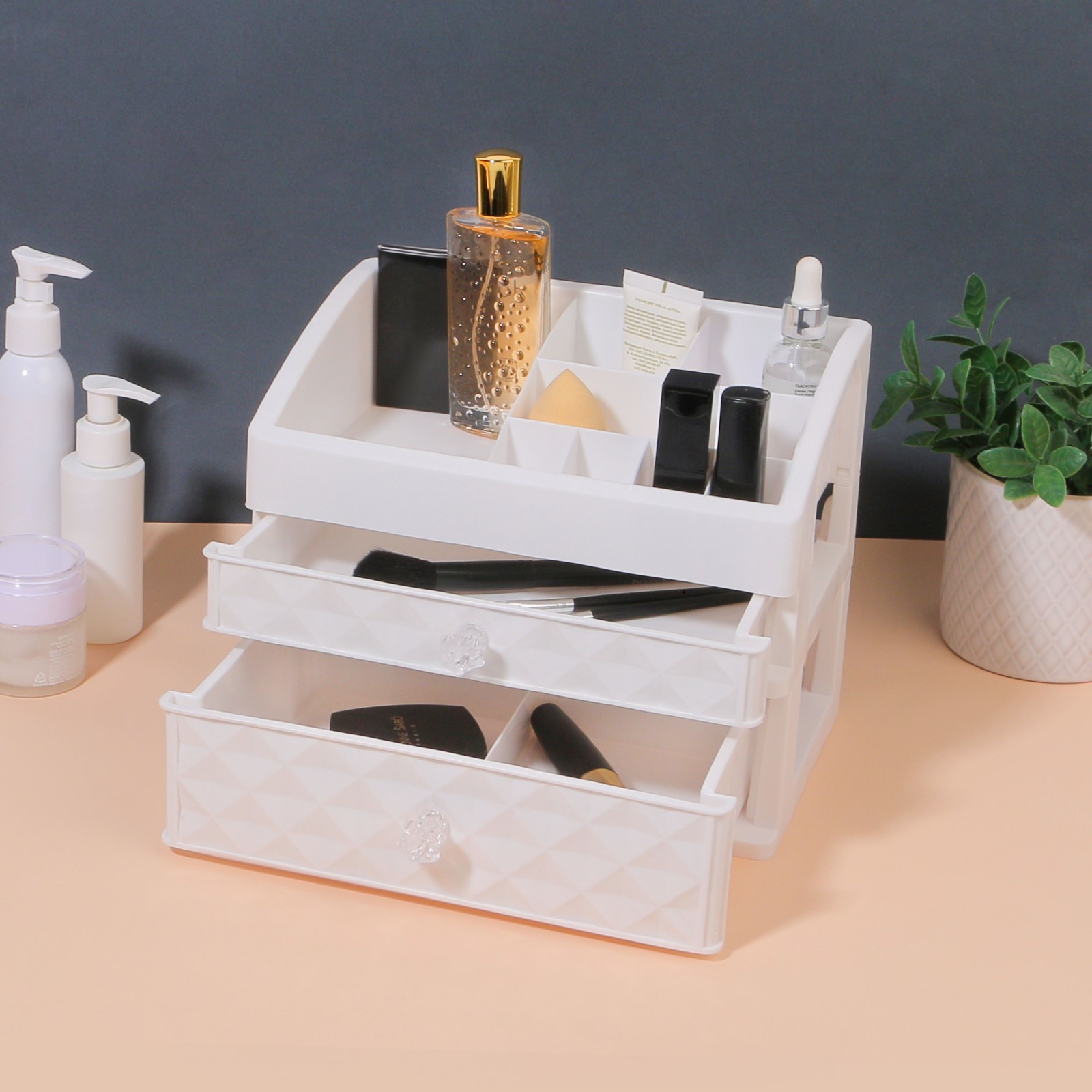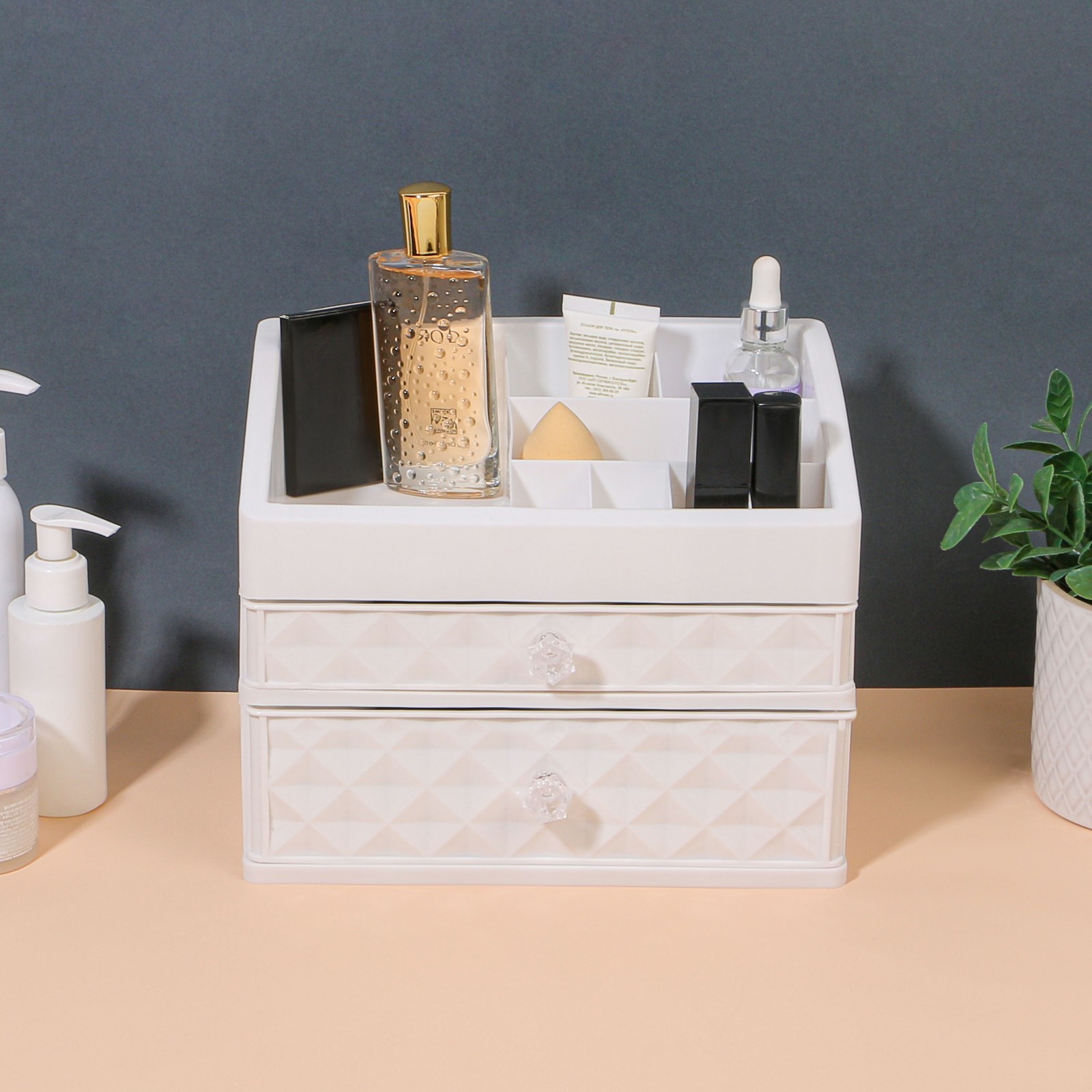 Органайзер для хранения маникюрных/косметических принадлежностей, 8 секций, 2 ящика, 25 X 16,5 X 20 см, цвет белый