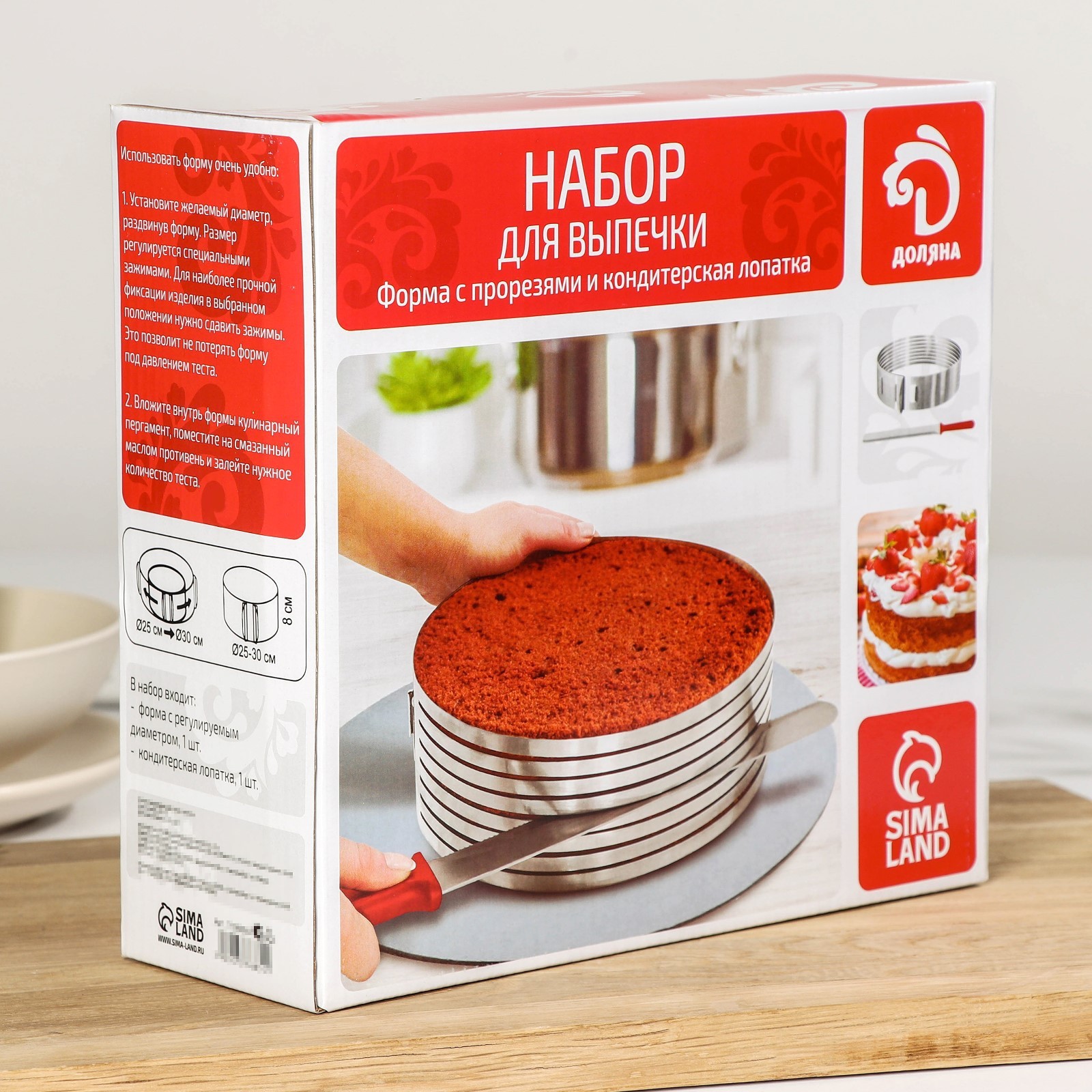 Набор кондитерский доляна, 2 предмета: форма для выпечки с прорезями 25-30x8 см, кондитерская лопатка