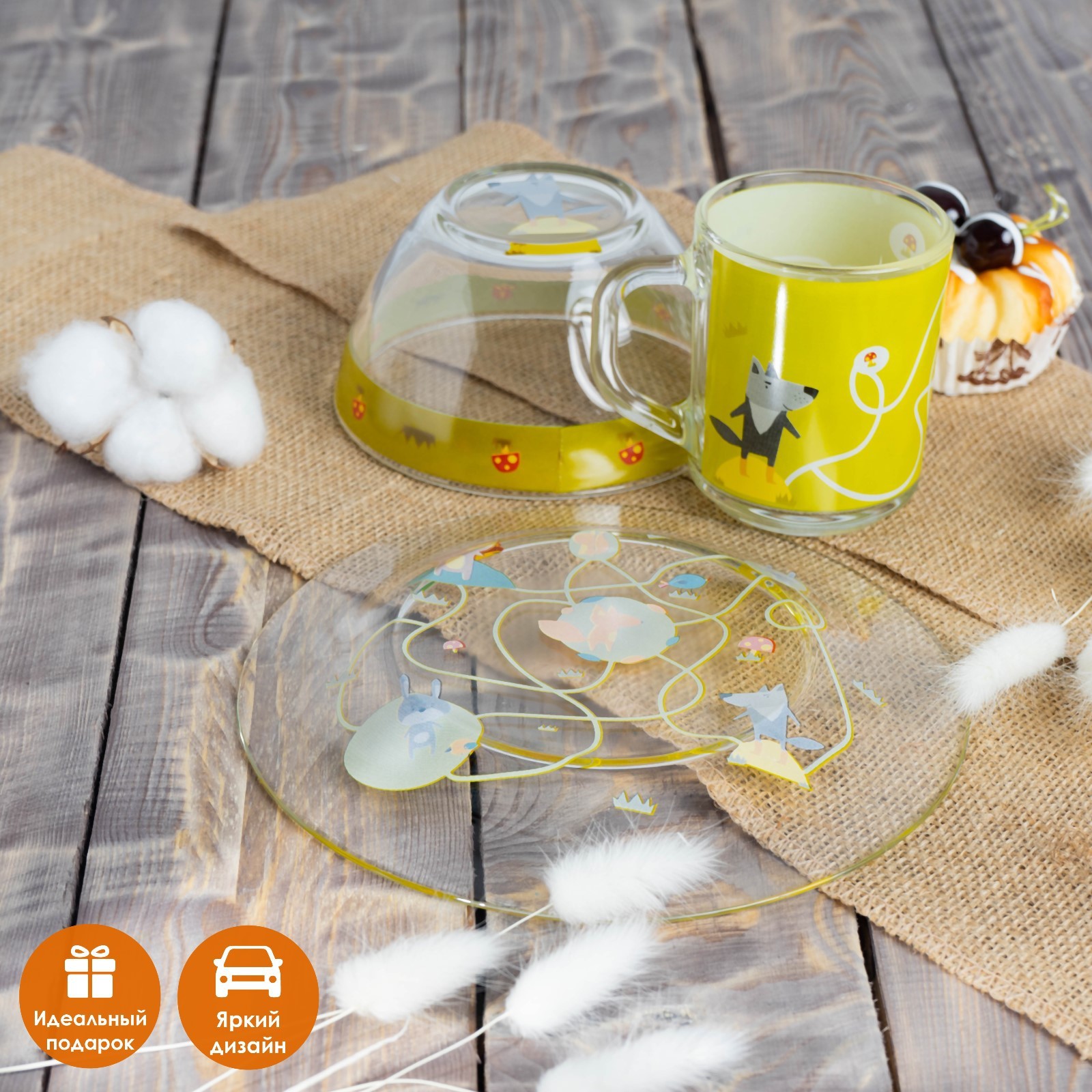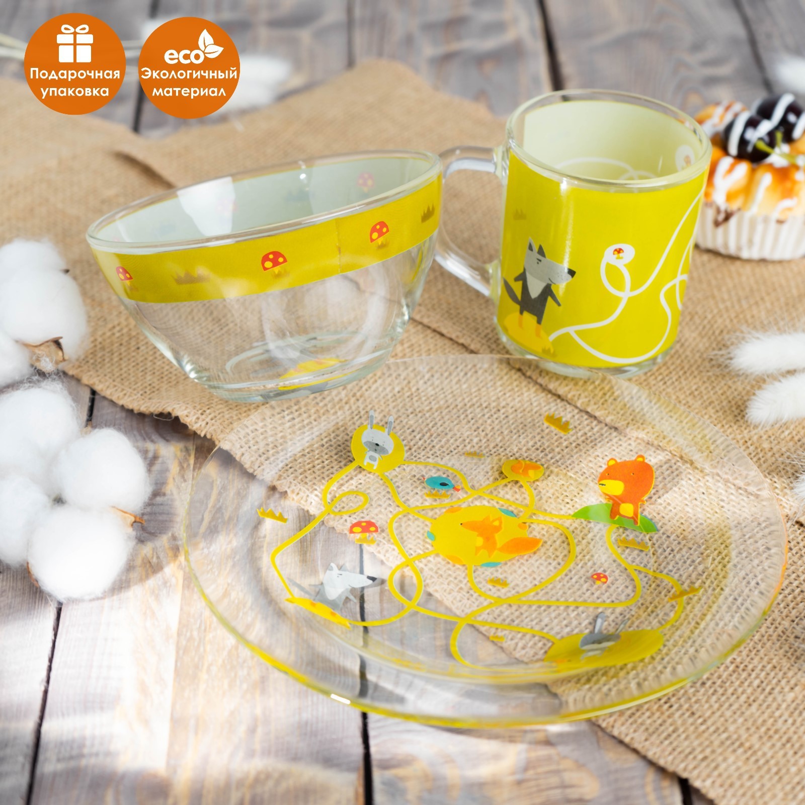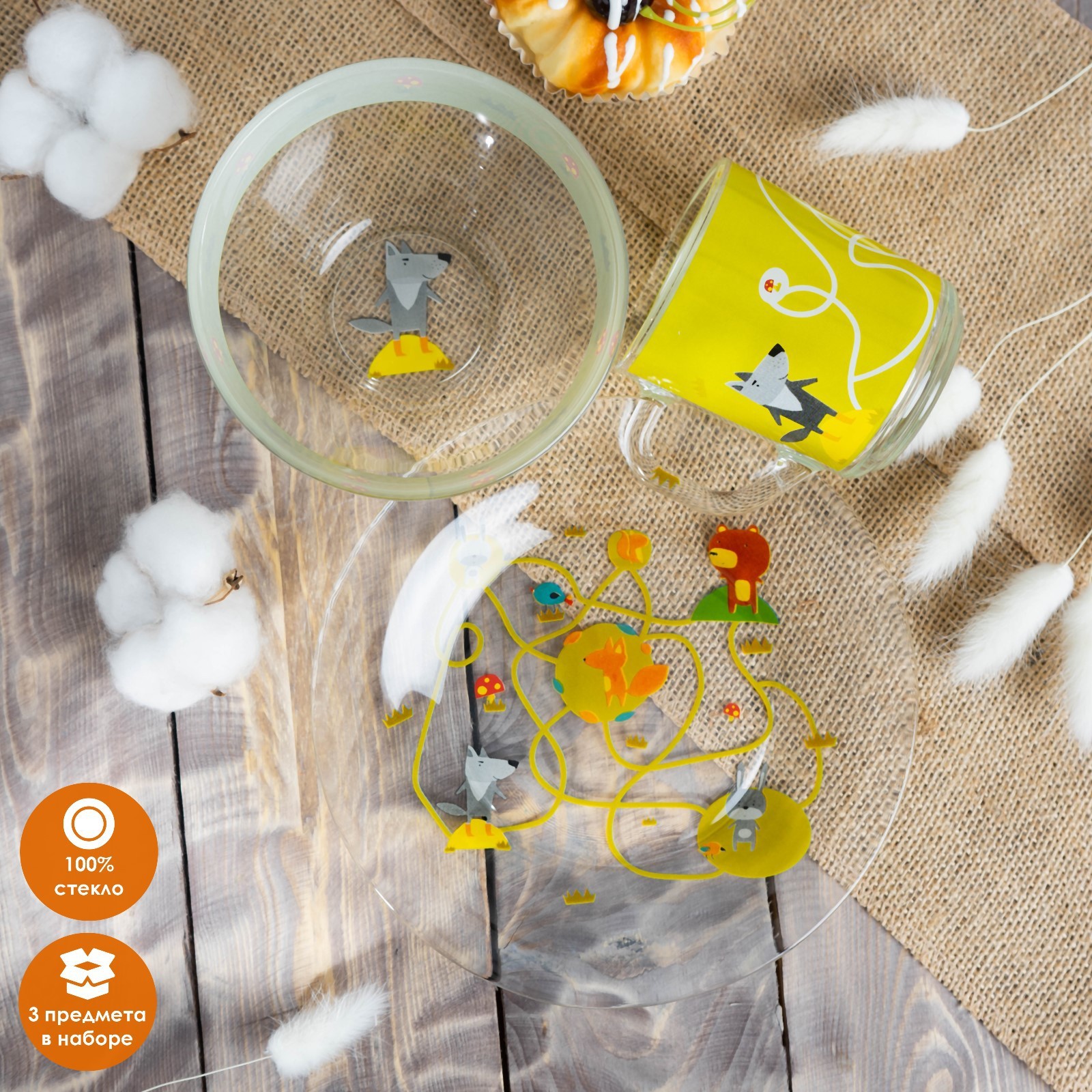 Набор детской посуды доляна «лесные забавы», 3 предмета: миска 450 мл, тарелка D=20 см, кружка 200 мл