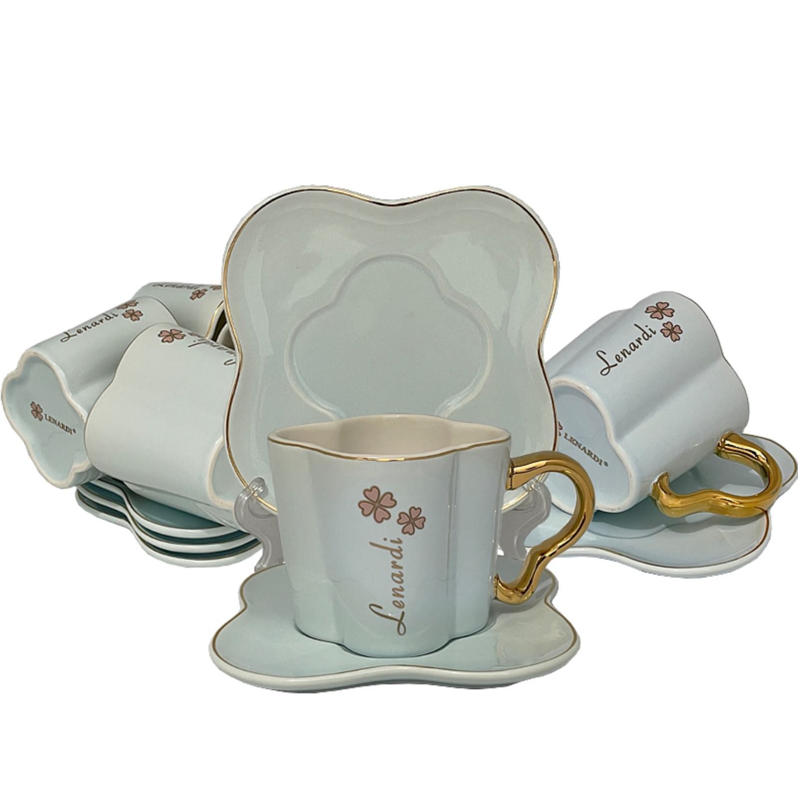 Чайный набор lenardi, 12 предметов. Изделие может иметь следующие несущественные дефекты: незначительный скол краски;прерывание и наплыв рисунка;наличие полосы на рисунке;потёртости и наплыв золотой краски на внутренней стороне;небольшие потёртости и царапины на глазури;засорения под глазурью;плотные вздутия глазури на внутренней поверхности;натёк глазури;наличие мушек (чёрных точек);неровность внутреннего отверстия;отклеивание страз;потёртость упаковки в уголках. Данные недостатки не влияют на свойства изделия при использовании. Цвет: Голубой Количество персон: 6 В наборе, шт.: 12 Объём, мл: 250 Тематика: Надписи, цифры, буквы Материал: Фарфор Наличие подставки: Нет Можно мыть в посудомоечной машине: Да Можно использовать в СВЧ-печи: Нет Текстура: С рельефом Тип: Чайный сервиз Особенности: Деколь Матовая поверхность: Нет Запрет реализации по сегментам: 00000000485  развернуть описание ▼