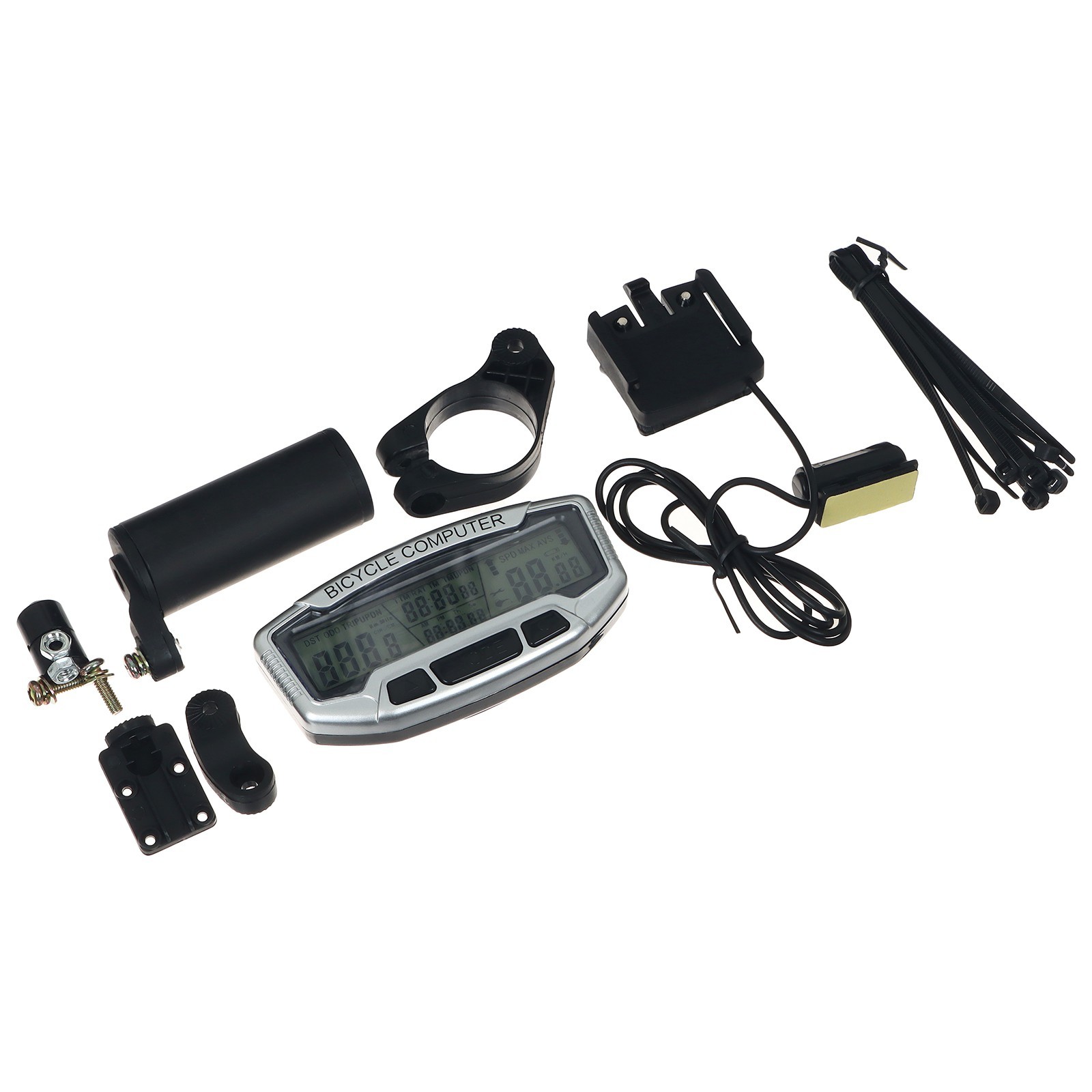 Велокомпьютер 28 функций, проводной sd-558a. Велокомпьютер предназначен для фиксирования параметров велосипедного заезда. Спидометр фиксирует текущую, максимальную и среднюю скорость велосипедиста. Вы можете сами установить наиболее комфортную скорость на спидометре и ориентироваться по показаниям прибора, чтобы придерживаться заданных параметров. Также на циферблате вы можете наблюдать количество километров, которые проехали за день или весь период путешествия. Функции Отображение параметров времени, скорости и расстояния в реальном времени. Функция автоматической подсветки. Подсветка автоматически включается/ выключается при закате / восходе солнца. SPD: текущая скорость. ODO: общий пробег велосипеда (отсчитывается с момента установки компьютера на велосипед) до 99999 км. DST: расстояние, пройденное за текущую поездку (от 0 до 9999 км). В любой момент этот показатель можно обнулить . MXS: максимальная скорость. AVS: средняя скорость. OTM: общее время поездки. TM: время текущей поездки. RTM: время езды в движении (во время остановки счётчик останавливается). CLK: текущее время (возможность выбора 12 или 24-часового режима). SW: секундомер. Температура (от -20 до 90°С). TM UP: увеличение времени поездки. TM DN: уменьшение времени поездки. TRIP: общее пройденное расстояние. TRIP DN: расстояние текущей поездки. «+» «-» компаратор, индикатор указывающий ниже или выше текущая скорость, чем средняя за поездку. Настройка единицы измерения скорости (км/ч, м/ч). Напоминание о необходимости технического обслуживания. Напоминание о том, что ваша скорость ниже вашей средней. Напоминание об уходе. Установка окружности колеса (0 мм – 9999 мм). Установка последнего значения одометра. Настройка OTM. Замораживание памяти компьютера. ЖКИ подсветка. Индикатор низкого заряда батареи. Авто вкл. / выкл. Характеристики Водонепроницаемость IPX4 позволяет пользоваться компьютером в дождливые дни. Простая установка. В комплект входят монтажные аксессуары. Работает от батареи CR2032 (входит в комплект). Размер: 8, 5 х 4, 8 х 1, 5 см. Количество функций: 27 Беспроводное соединение: Нет  развернуть описание ▼