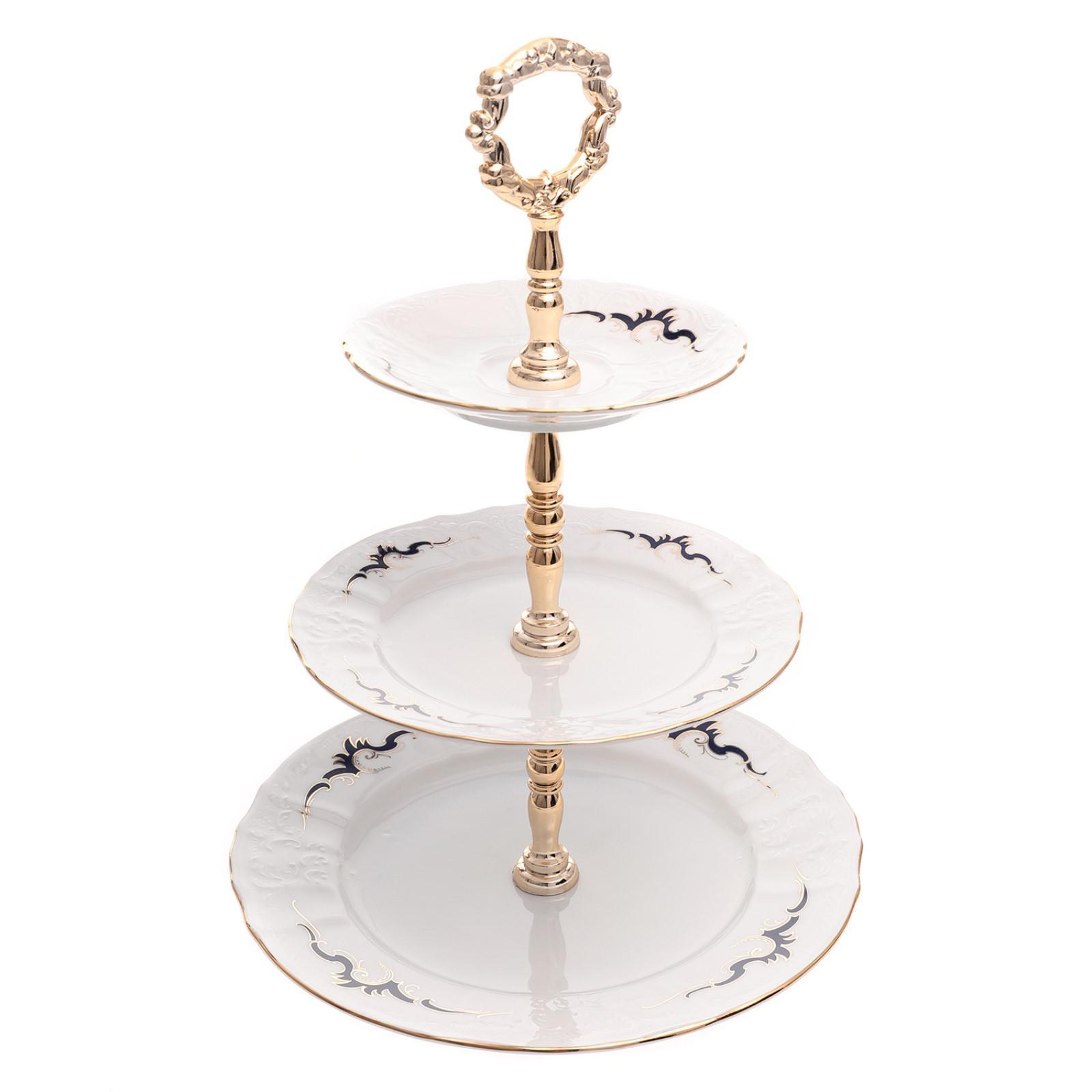 Этажерка 3-х ярусная Bernadotte, декор «синие вензеля»