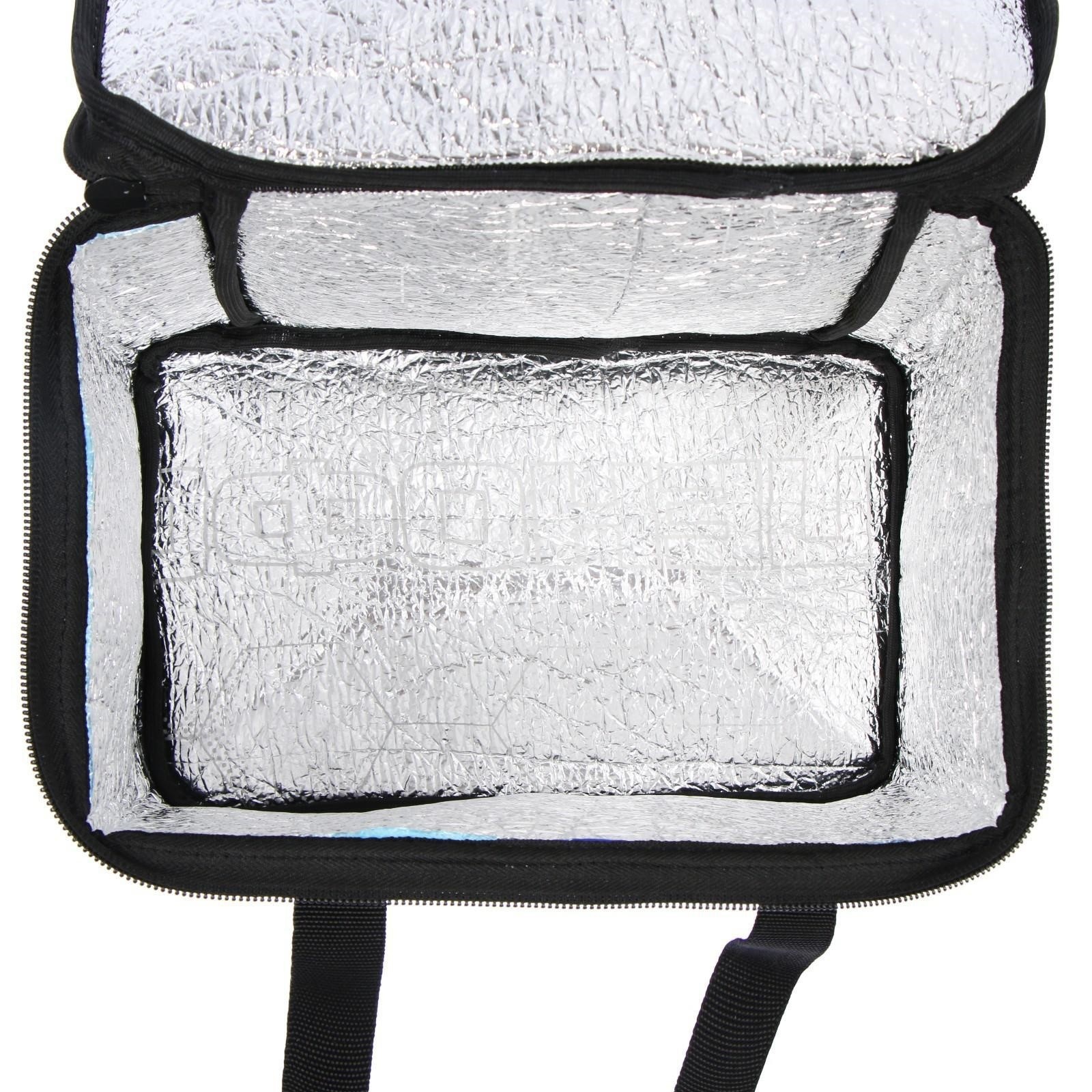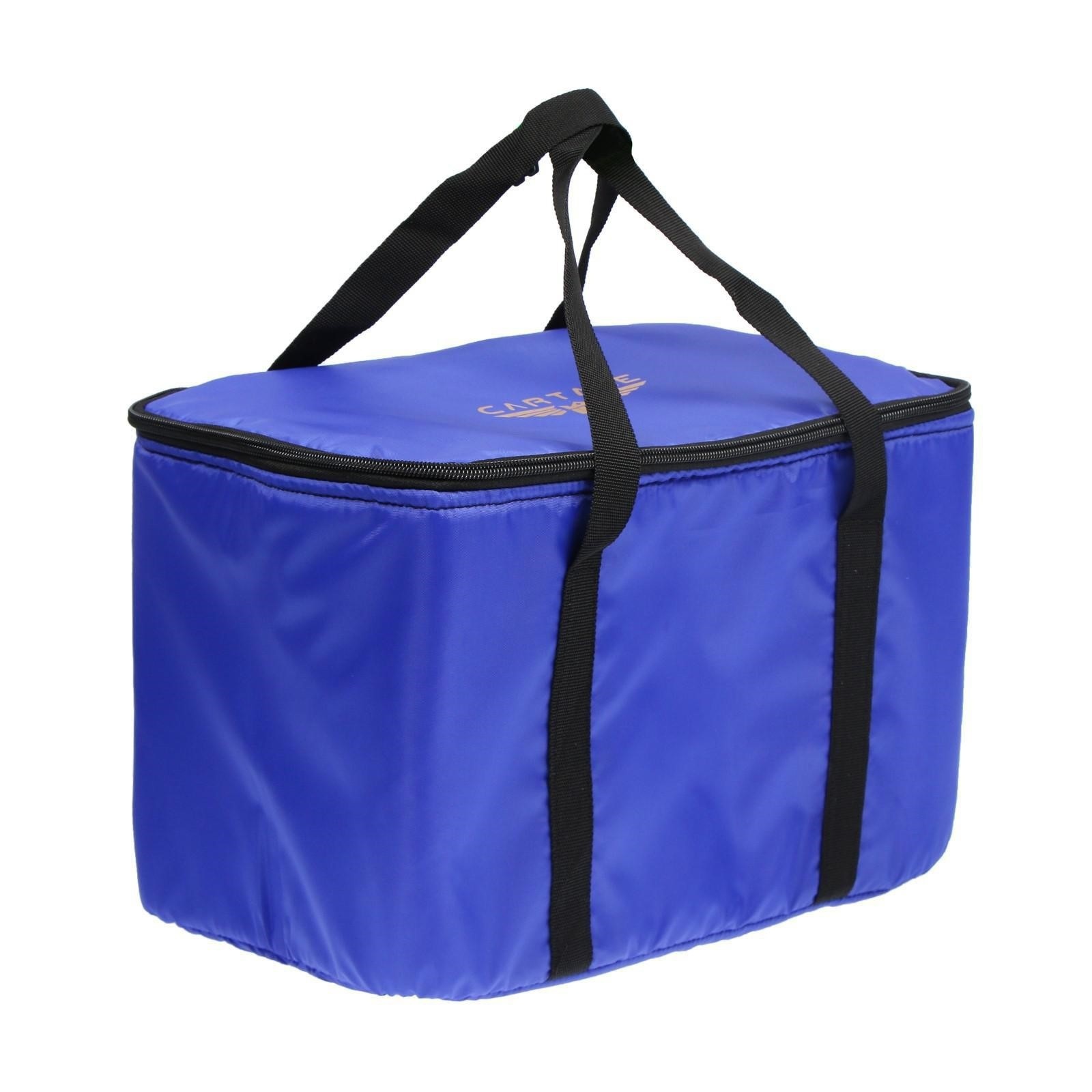 Термосумка cartage т-12, синяя, 18 л, 35х21х24 см. Сохранить продукты свежими, охлажденными или даже замороженными вне дома и без стационарного холодильника можно легко и просто при помощи термосумки Cartage! Термосумка Cartage Т-12 устроена по принципу термоса, причем, такой аксессуар может не только поддерживать низкие температуры, но и сохранить продукты горячими. То есть, вы всегда сможете полакомиться мороженным на пляже, угостить друзей теплой пиццей на пикнике за городом, и пообедать горячим супом на работе. Термосумка устроена очень просто – она имеет внутри изоляционный антибактериальный фольгированный слой, в случае если в сумке разлился напиток, или вытекло варенье, достаточно просто протереть сумку влажной тканью, или антибактериальной салфеткой. Такой сумкой очень удобно пользоваться, если вы ведете активный образ жизни и много времени проводите в дороге и на ногах. Для более долгого сохранения низких температур, советуем использовать аккумуляторы холода. Объём, л: 17 Объём, л: 18 Вид: Термосумка Температурное ограничение: Нет  развернуть описание ▼