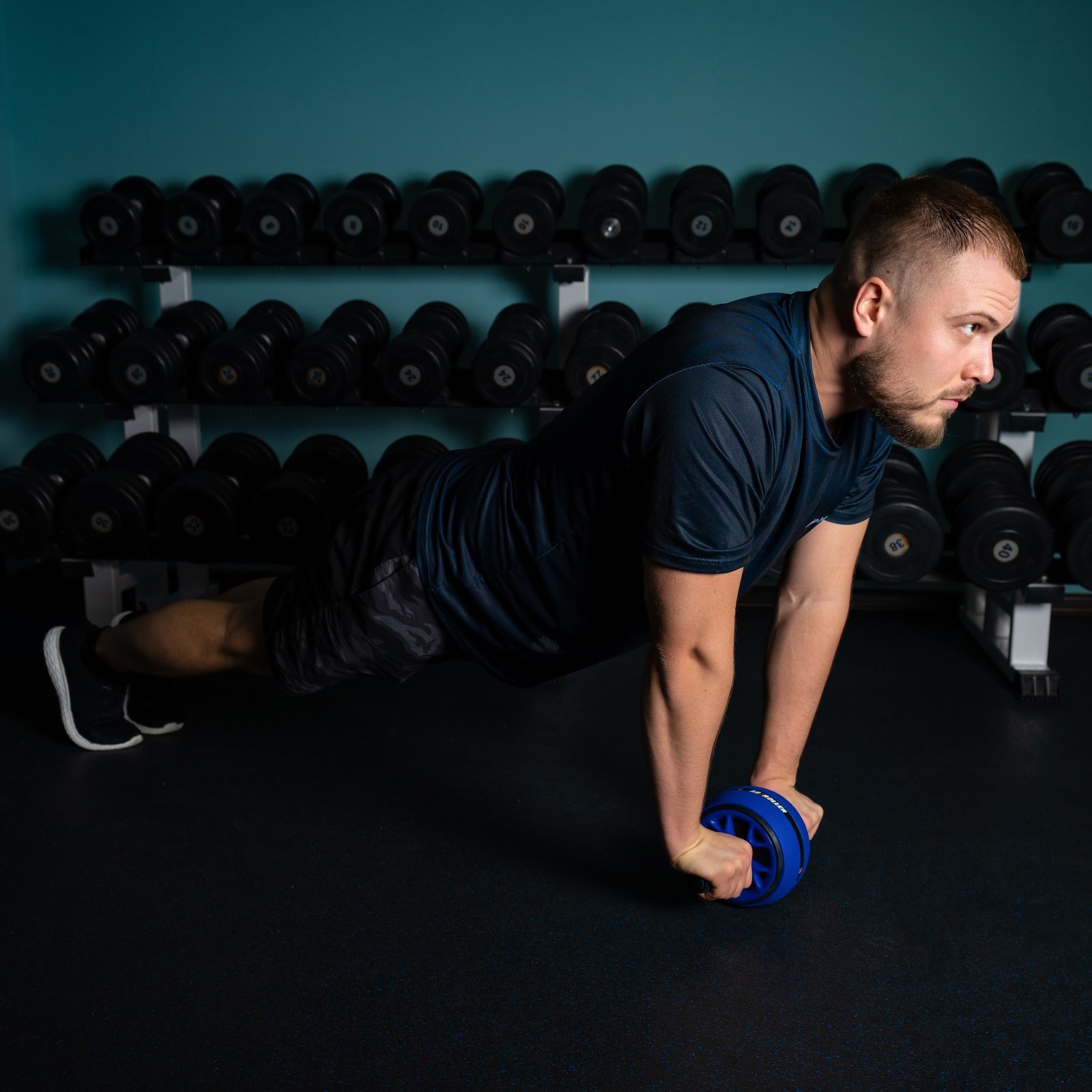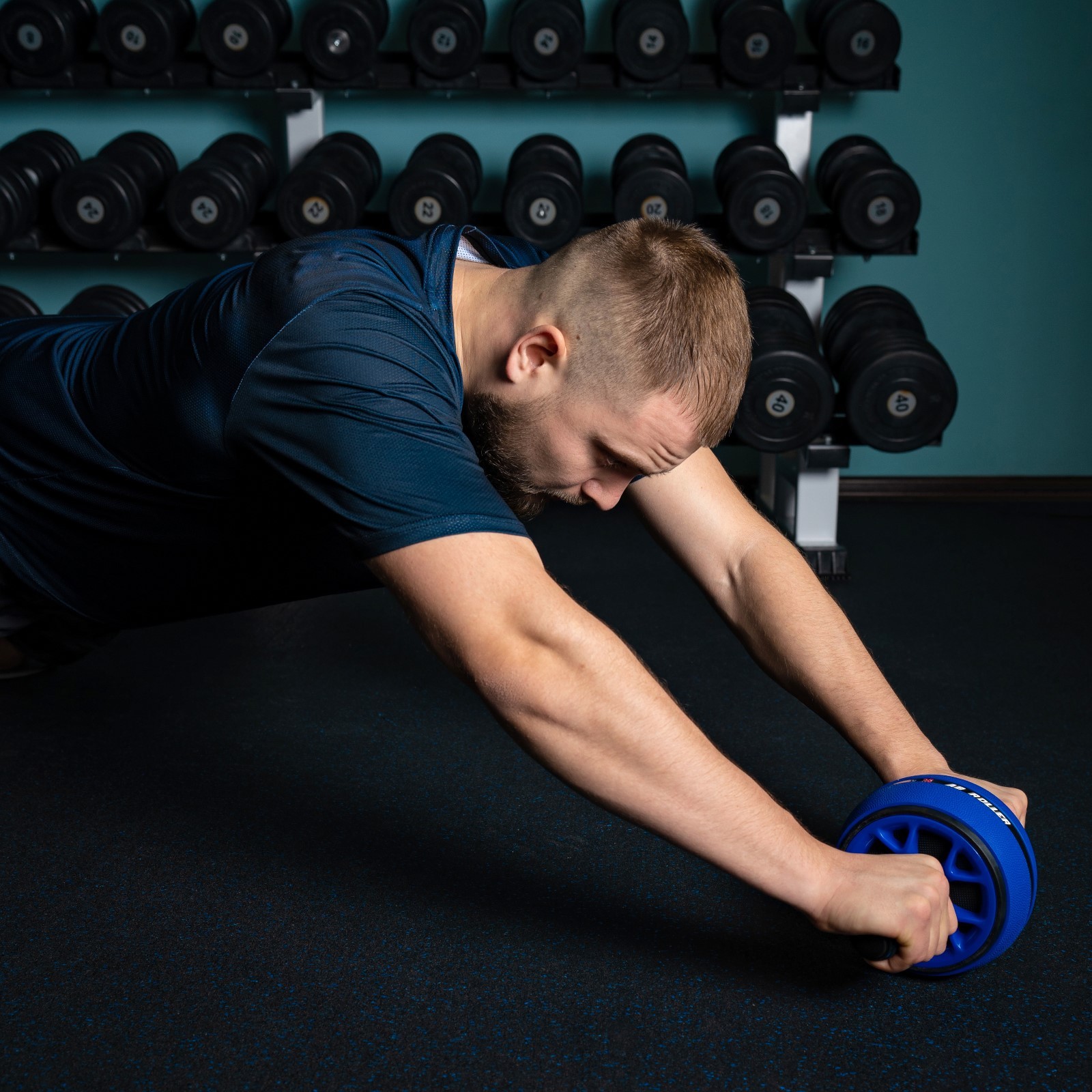 Ролик для пресса onlytop, 28х16х16 см, с ковриком, цвет синий. Ролик для пресса — это простой, но достаточно эффективный спортивный снаряд. Во время тренировок с ним прорабатываются все группы мышц, основная нагрузка приходится на пресс. Диск имеет рельефную поверхность, что позволяет ему кататься по полу ровно, не скользя, по прямой. Мягкие ручки увеличивают сцепление со снарядом и снижают давление на запястье. В комплект входит мягкий нескользящий коврик, на который вы можете опереться коленями или ступнями. Материал: Металл Материал: Пластик  развернуть описание ▼