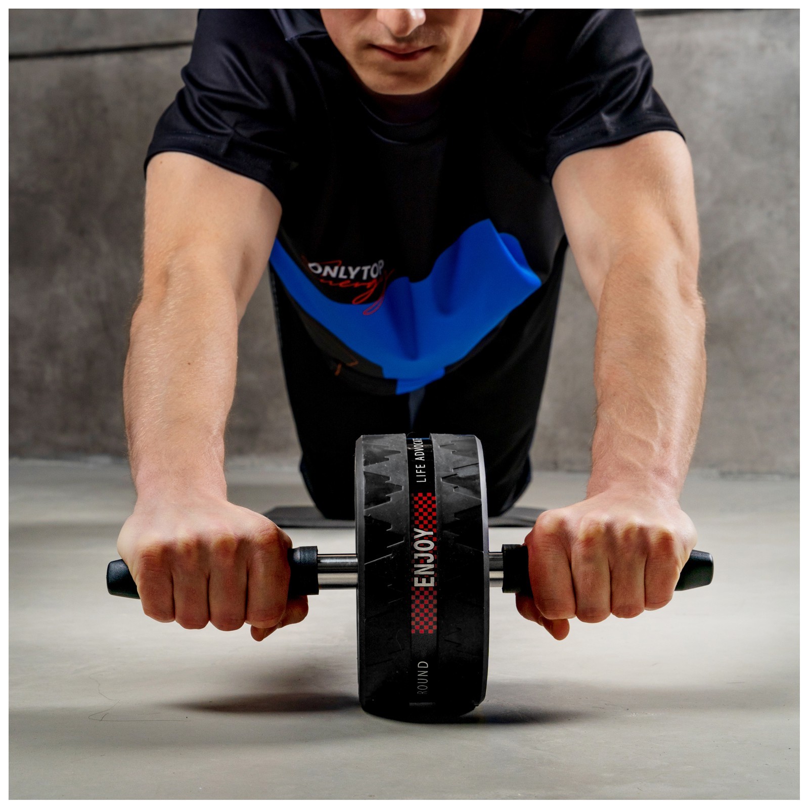 Ролик для пресса onlytop, 38х17х17 см, с ковриком, цвет чёрный. Ролик для пресса — это простой, но достаточно эффективный спортивный снаряд. Во время тренировок с ним прорабатываются все группы мышц, основная нагрузка приходится на пресс. Диск имеет рельефную поверхность, что позволяет ему кататься по полу ровно, не скользя, по прямой. Эргономичная форма ручек обеспечивает безопасность спортсмена во время тренировки. В комплект входит мягкий нескользящий коврик, на который вы можете опереться коленями или ступнями. Характеристики Диаметр: 16, 5 см. Длина: 31 см. Максимальная нагрузка: 150 кг. Материал: Пластик Материал: Металл  развернуть описание ▼