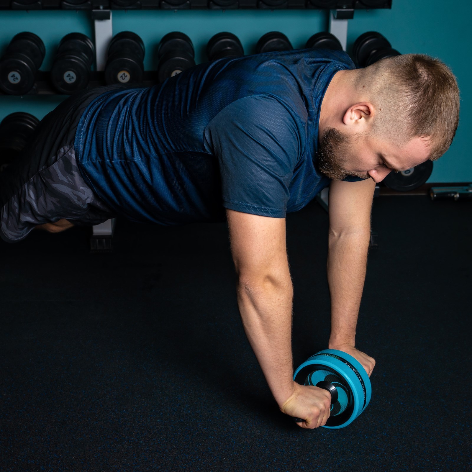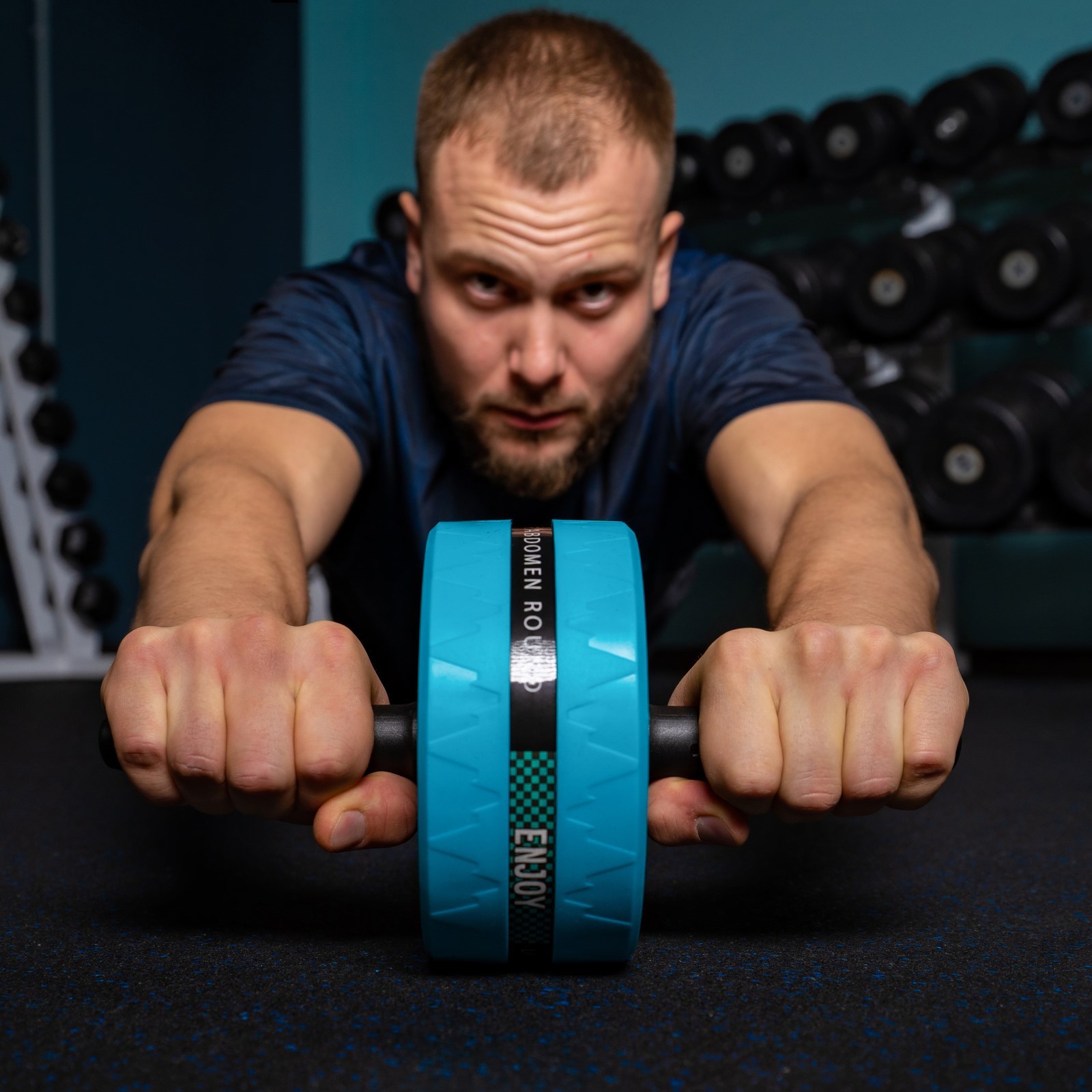Ролик для пресса onlytop, 38х17х17 см, с ковриком, цвет голубой. Ролик для пресса — это простой, но достаточно эффективный спортивный снаряд. Во время тренировок с ним прорабатываются все группы мышц, основная нагрузка приходится на пресс. Диск имеет рельефную поверхность, что позволяет ему кататься по полу ровно, не скользя, по прямой. Эргономичная форма ручек обеспечивает безопасность спортсмена во время тренировки. В комплект входит мягкий нескользящий коврик, на который вы можете опереться коленями или ступнями. Материал: Пластик Материал: Металл  развернуть описание ▼