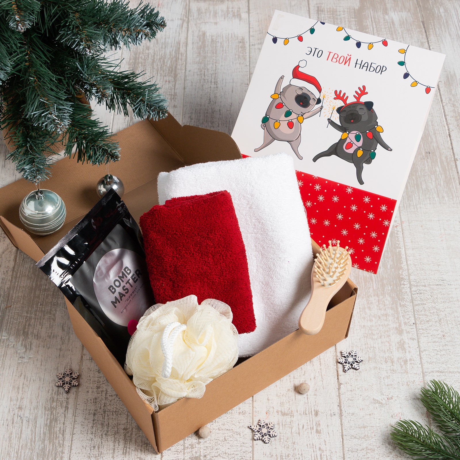Набор подарочный этель твой набор, полотенце 50х90см,30х60см и аксессуары. Набор:Да|Цвет:Красный|Цвет:Белый|Для кого:Для женщины|Для кого:Для девочки|Ткань:Махра|Плотность, г/м :340|Размер, см:30 х 60|Размер, см:50 х 90|В наборе, шт.:5|Вид упаковки:Термоусадочная плёнка|Символ года:Нет|Тематика праздника:Новый год|Адресат:Без адресата|Возраст:Любой|Декоративные элементы:Без элементов|Рекомендации по уходу:Не отбеливать|Рекомендации по уходу:Химчистка запрещена|Рекомендации по уходу:Глажка при 150 °С|Рекомендации по уходу:Стирка при 40 °С|Назначение полотенец:Для рук|Назначение полотенец:Для лица|Состав ткани:Хлопок|Составляющие набора:Расчёска для волос|Составляющие набора:Полотенце|Составляющие набора:Мочалка|Составляющие набора:Соль для ванны|Возраст:Для взрослых|В подарочной упаковке:Да|Стиль:Новогоднее барокко|Страна:Россия  развернуть описание ▼