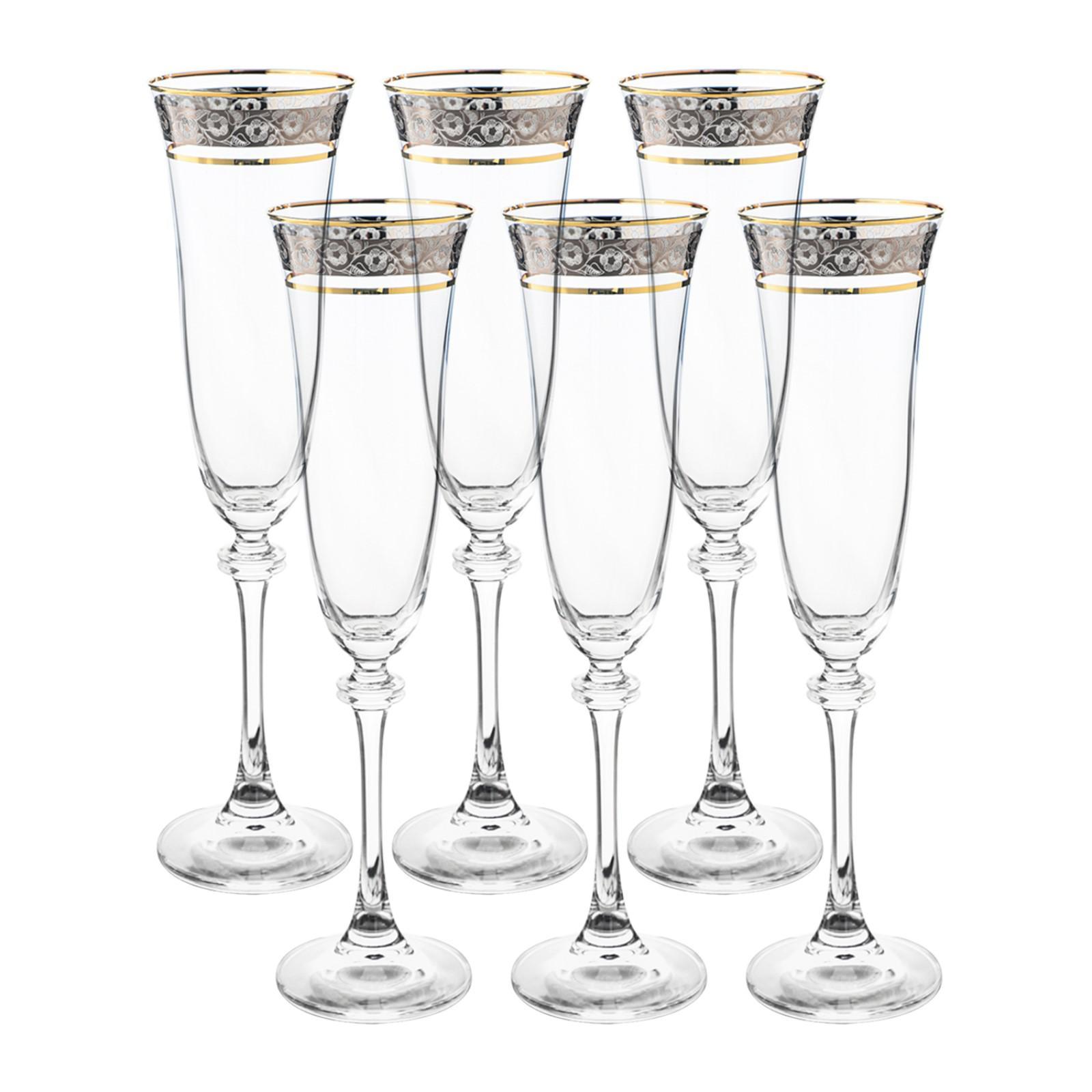Набор бокалов для шампанского Asio, декор «панто платина, отводка золото», 190 мл X 6 шт.