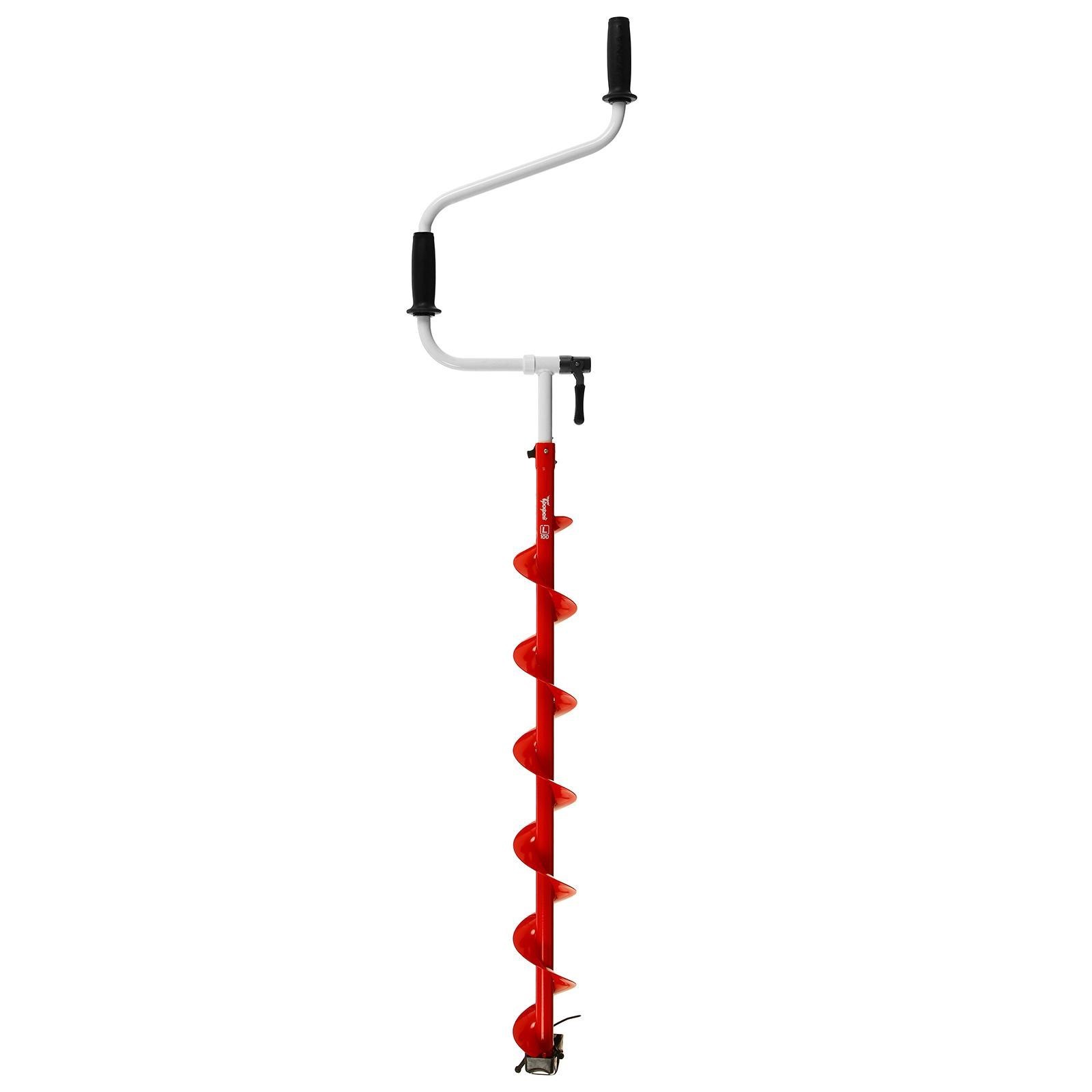 Ледобур "трофей 100", левое вращение. Ледобур «ТРОФЕЙ 100» с цельнотянутым шнеком левого вращения обеспечивает быстрое освобождение лунки от шуги, тем самым снижая усилие рыболова. Запатентованный механизм складывания рукоятки позволяет моментально приводить ледобур в рабочее состояние и гарантирует отсутствие люфта. Телескопическая вставка-удлинитель, при помощи фиксированных отверстий выдвижения, позволяет отрегулировать высоту ледобура под толщину льда и рост рыболова. Максимальная глубина бурения достигает 1, 47 м. Нескользящие «тёплые» ручки обеспечивают максимальный комфорт при бурении. Надёжное полимерное покрытие выдерживает резкие колебания температуры и сильные механические нагрузки. Металлическая несъёмная голова выдерживает большие нагрузки и гарантирует постоянный режущий угол ножам. Ножи из высококачественной стали обеспечивают лёгкое бурение. Транспортировочный чехол в комплект не входит. Характеристики ледобура Левое вращение. Материал: сталь. Диаметр бурения: 100 мм. Глубина бурения: до 1470 мм. Длина в рабочем положении: 1458 – 1958 мм. Длина в транспортном положении: 1002 мм. Комплект поставки Ледобур в сборе: 1 шт. Ножи: 2 шт. Винт М6х12: 4 шт. Футляр защитный: 1 шт. Паспорт: 1 шт. Диаметр, мм: 100 Глубина бурения, м: 1.47 Вес, кг: 3.15 Транспортная длина, см: 100.2 Температурное ограничение: Нет Тип: Ледобур Вид ледобура: Двуручный Вид ледобура: Телескопический Направление вращения: Левое (против часовой стрелки)  развернуть описание ▼