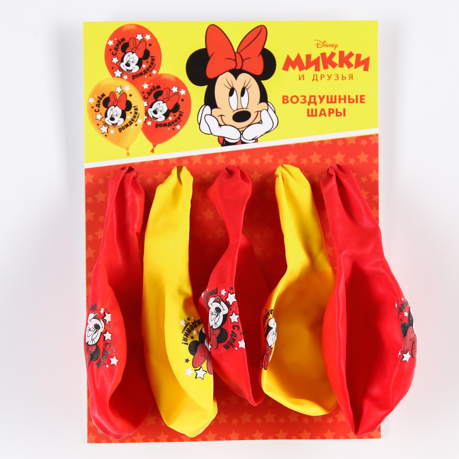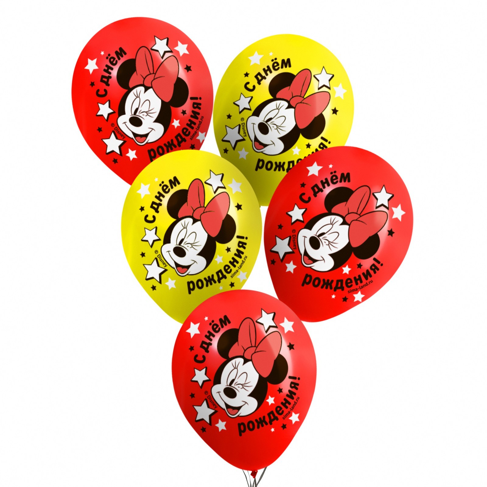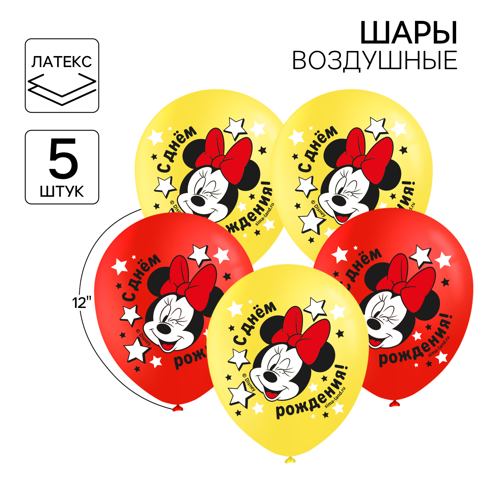 Шар воздушный «с днем рождения!» 12 дюйм, латексный, 5 штук, минни маус