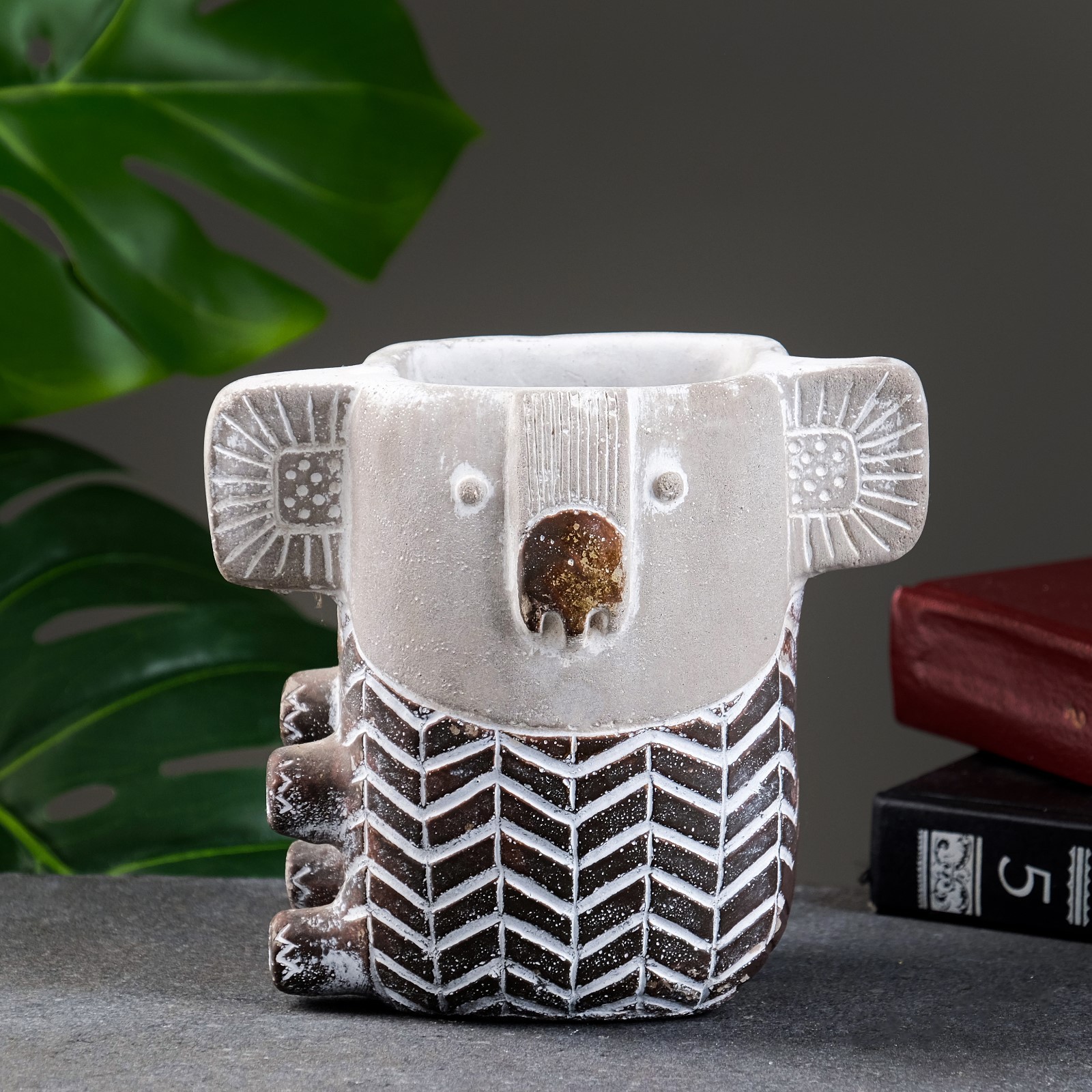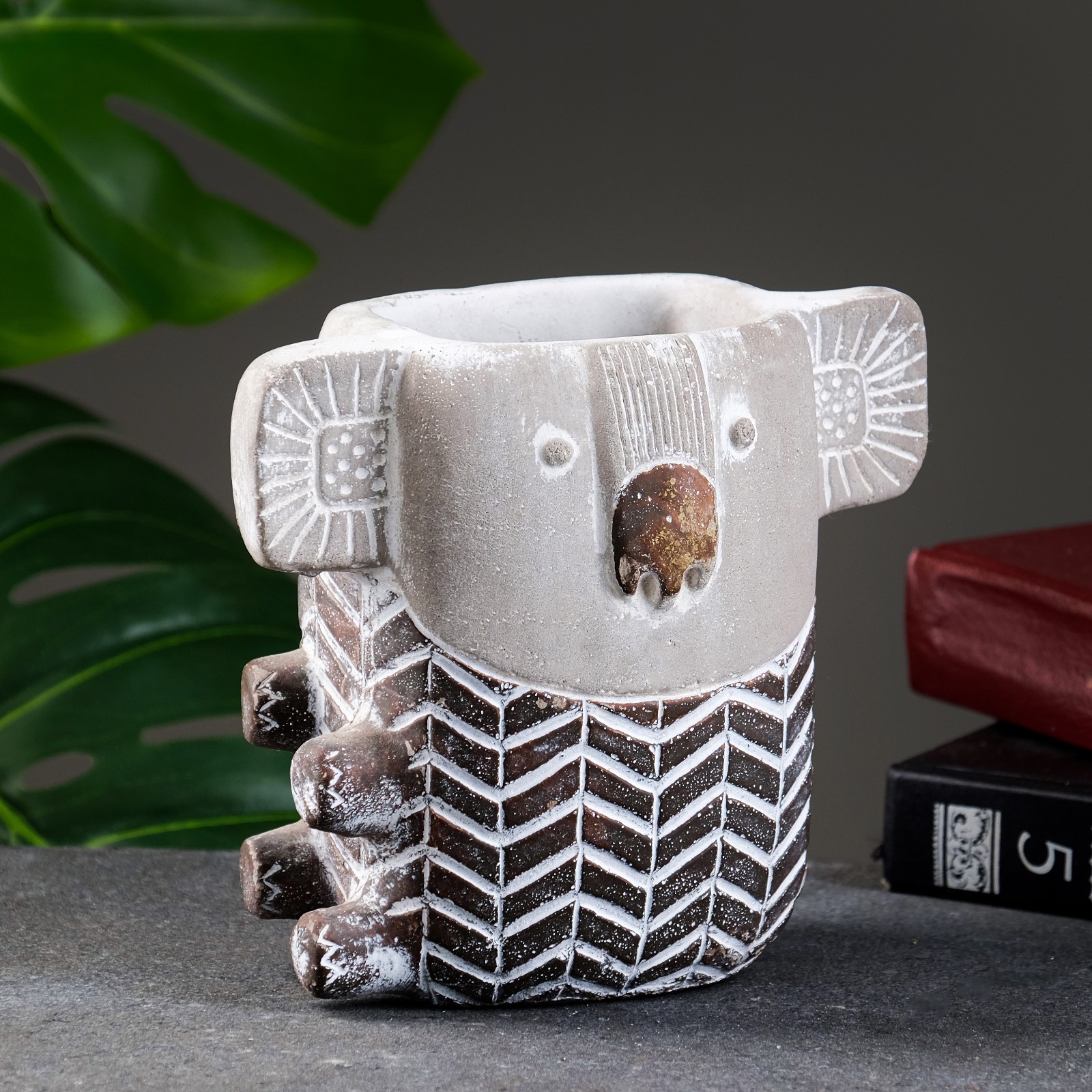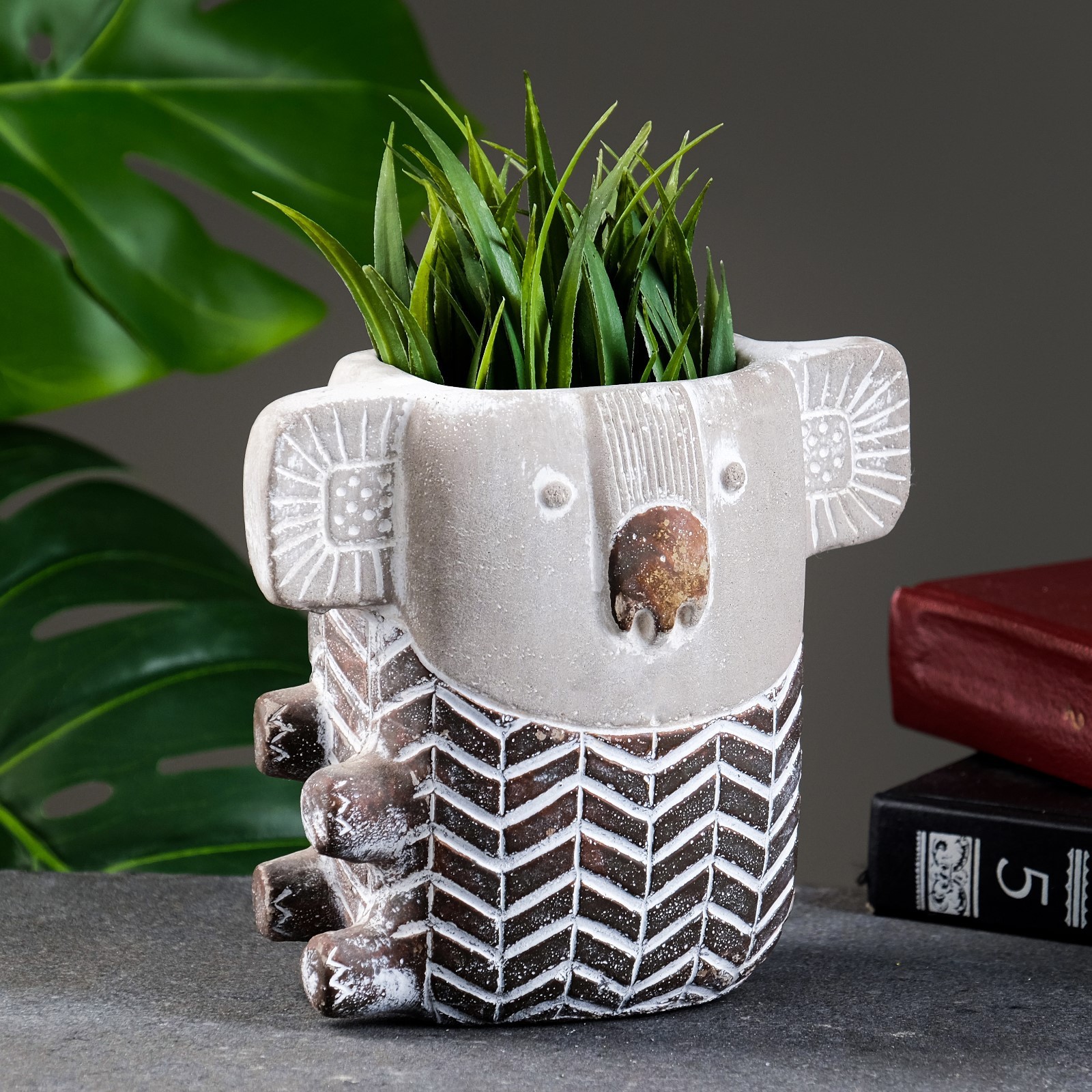 Фигурное кашпо для цветов «коала», 500 мл, 15 10 15 см, керамика, серое. Цвет:Серый|Диаметр, см:5.5|Диаметр, см:7.5|Высота, см:15|Объём, л:0.5|Вид установки:Настольное|Вид вазы:Настольная|Материал:Бетон|Оформление:Рельефные|Можно оставлять зимой на улице:Нет|Имеется дренажное отверстие:Нет|Особенности:Фигурное|Тип полива:Без системы полива|Страна:Китай  развернуть описание ▼