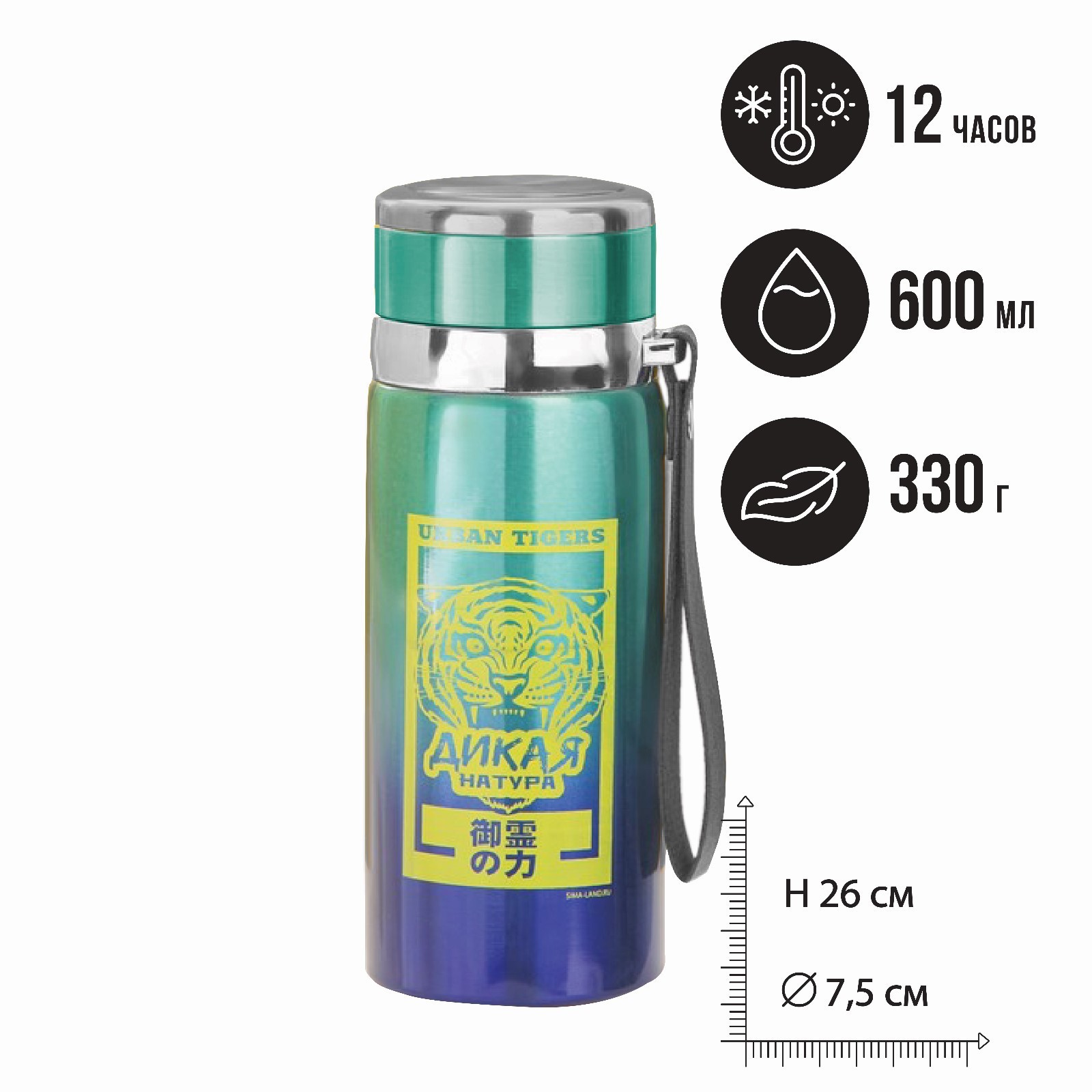 Термос «дикая», 600 мл, сохраняет тепло 8-12 ч