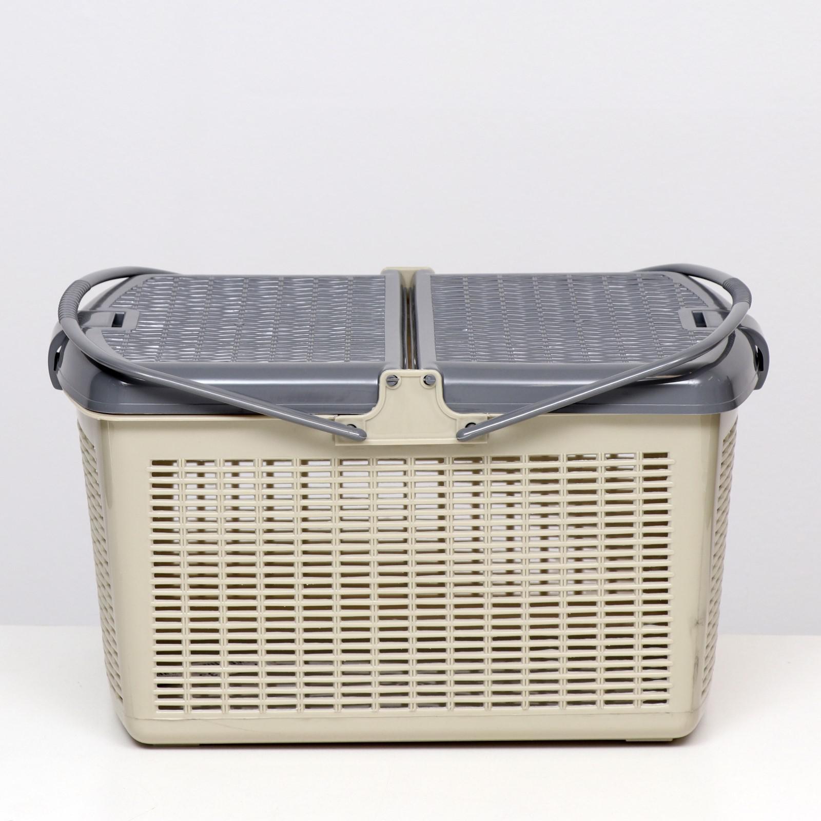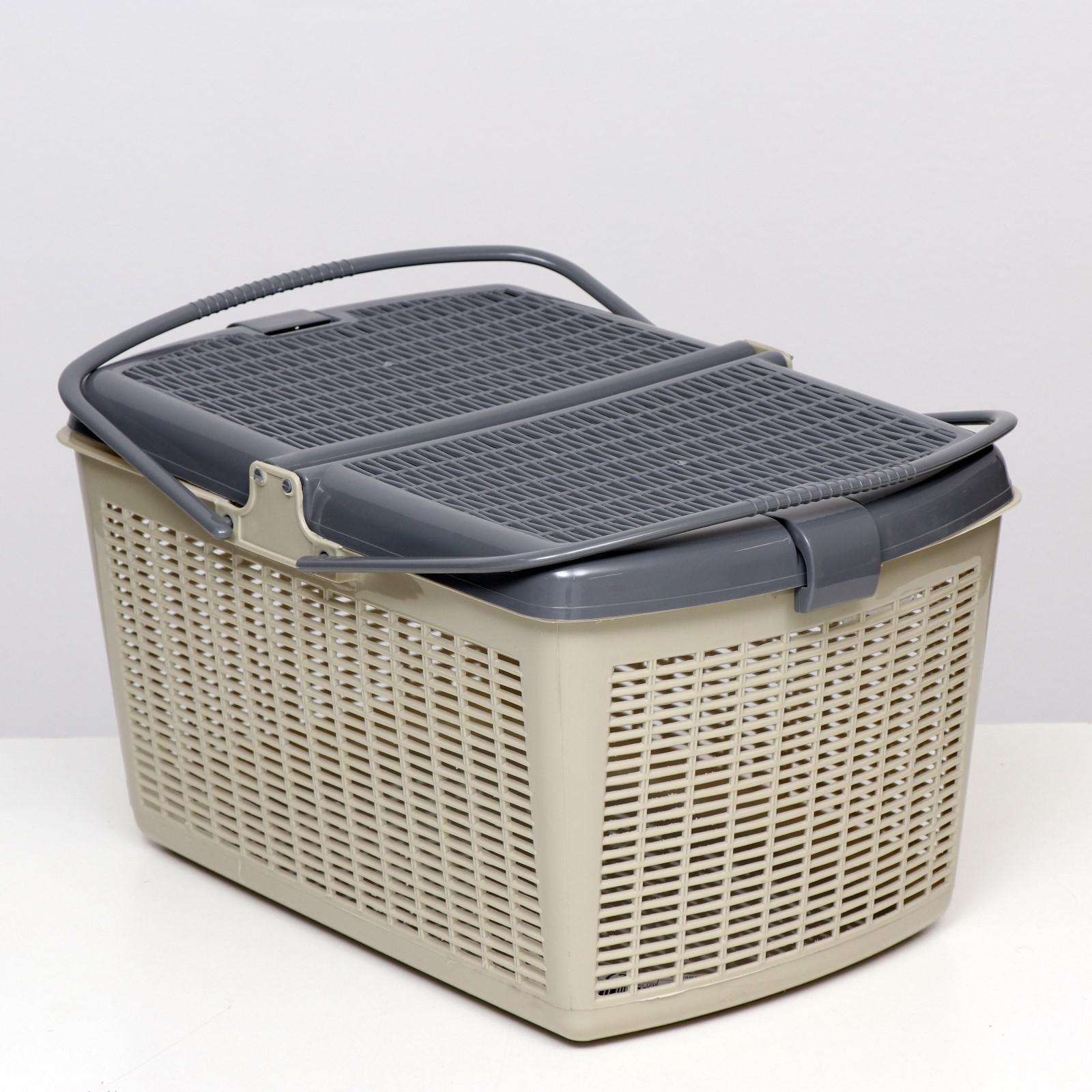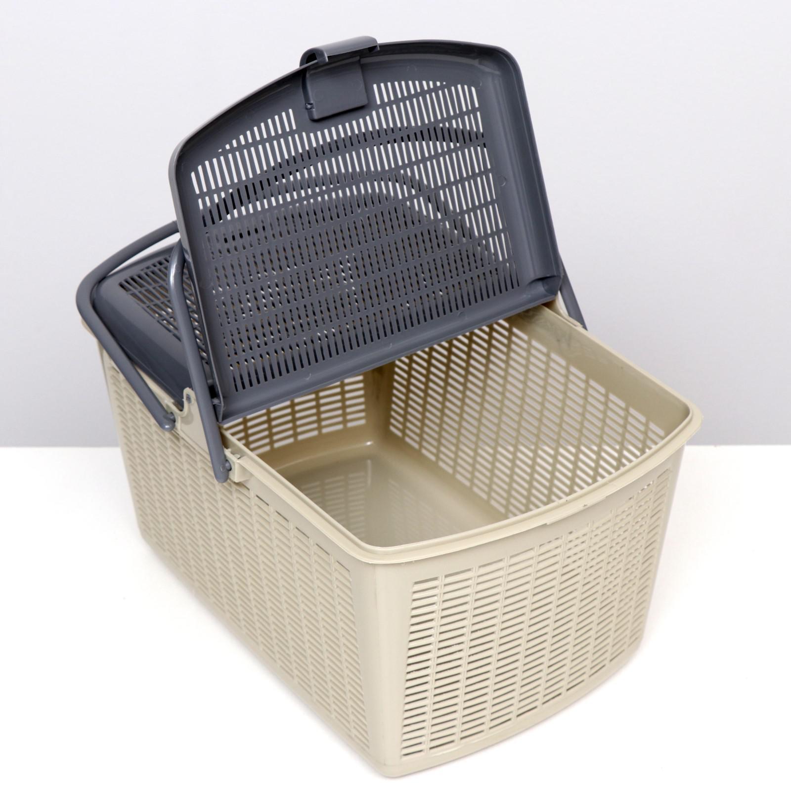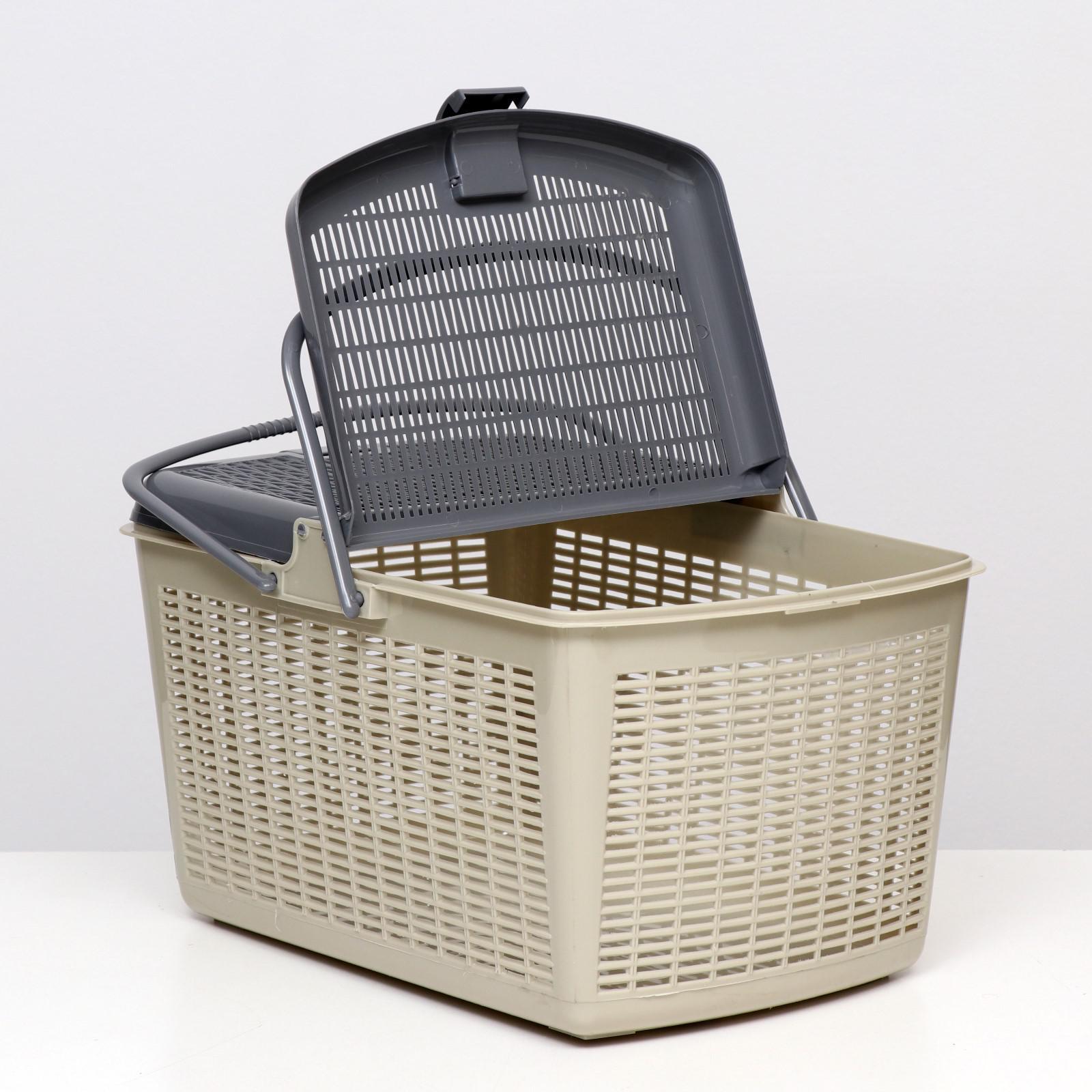 Корзина 47х36х27,5 см, серая. Корзинка для безопасной перевозки маленьких животных. Она выполнена из прочного и легкого материала, который не нанесет вреда здоровью питомца. Корзинка имеет удобную ручку для переноски и вентиляционные отверстия, обеспечивающие свежий воздух внутри. Внутри корзинки можно постелить плед или подстилку, которые защитят животное от дискомфорта во время перевозки. Корзинка также имеет защелку. Она идеально подходит для перевозки котят и щенков, а также других маленьких животных. Цвет: Серый Форма: Прямоугольная Ширина, см: 27.5 Глубина, см: 25 Высота, см: 36 Maксимальная нагрузка, кг: 12 parent_item_id: 497493 Крышка: Да Материал: Пластик Температурное ограничение: Нет Основной материал: Пластик Форма: Прямоугольник  развернуть описание ▼