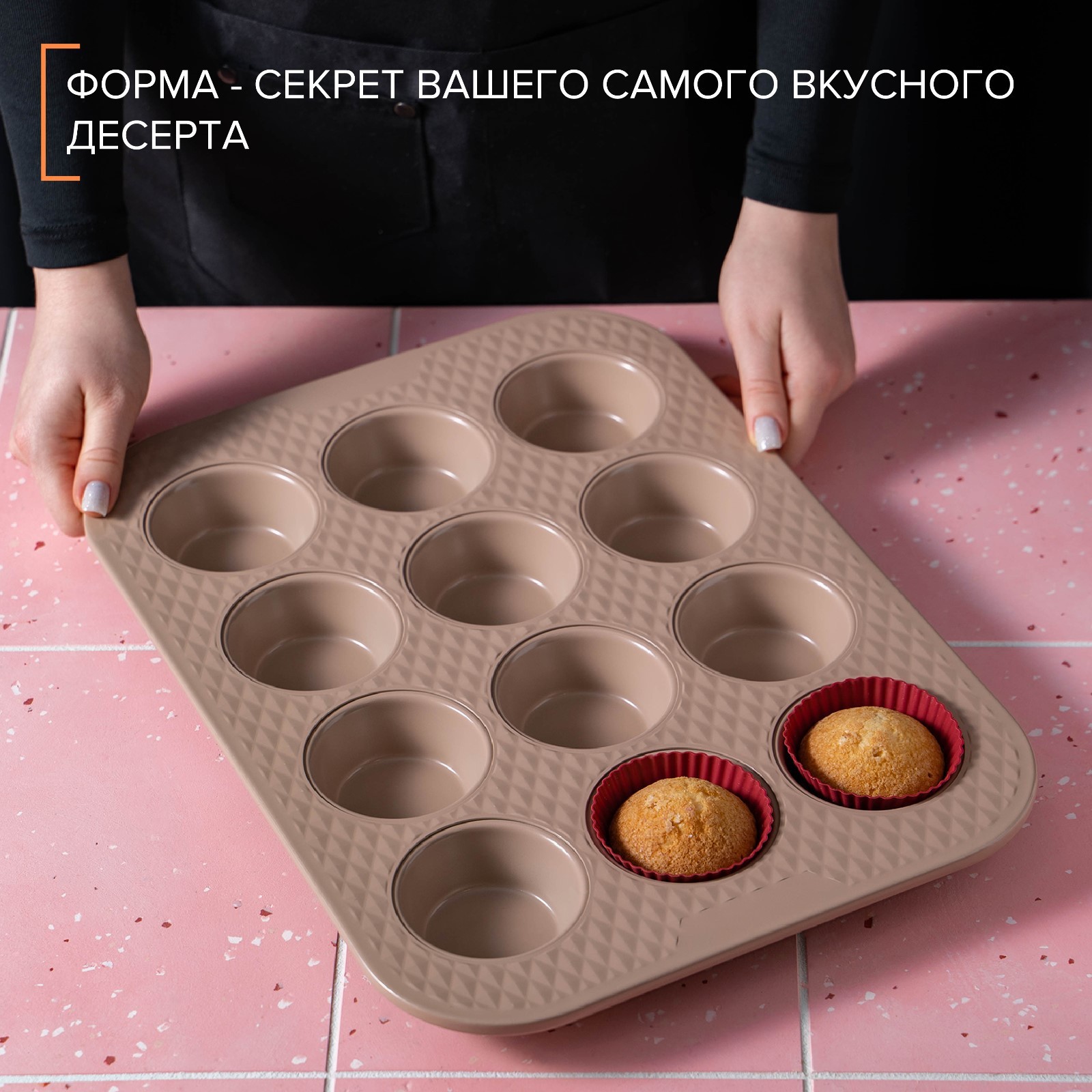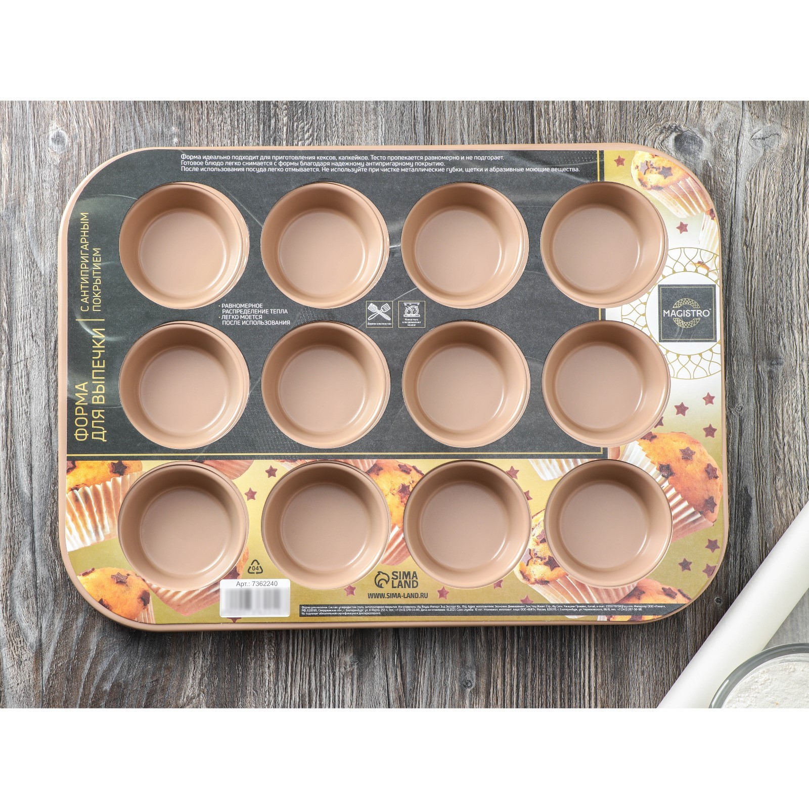 Форма для выпечки Magistro Shiny Diamond, 39,4x28,8x3,2 Cм, 12 ячеек, толщина 0,6 мм, антипригарное покрытие