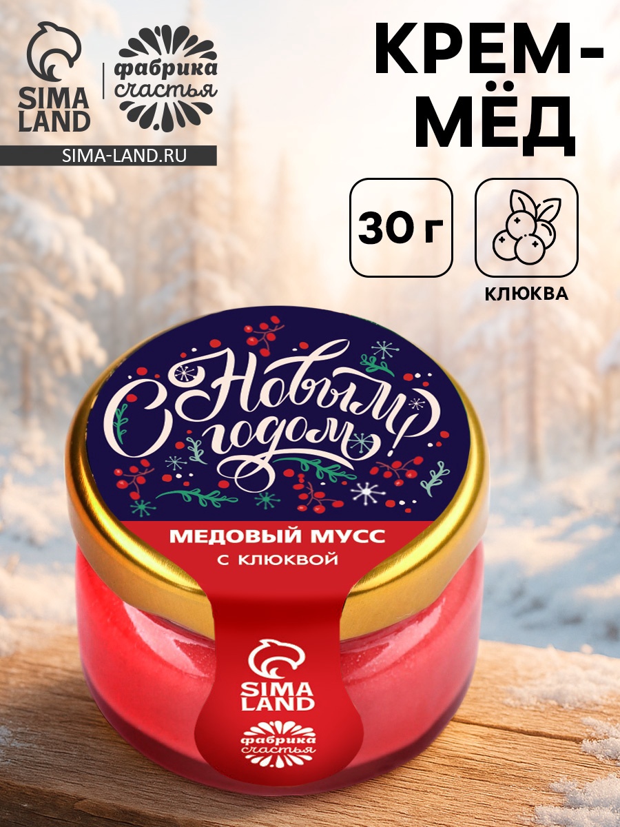 Крем-мёд «с новым годом», вкус: клюква, 30 г. ПРИ ОФОРМЛЕНИИ ЗАКАЗА, ПРОСИМ ЗАПРАШИВАТЬ АКТУАЛЬНЫЕ СРОКИ ГОДНОСТИ У МЕНЕДЖЕРА Крем-мёд с клюквой Состав: мёд натуральный, клюква сублимационной сушки. Пищевая ценность на 100 г: белки – 1 г, жиры – 0 г, углеводы – 78 г. Энергетическая ценность (калорийность): 1323 кДж (316 ккал). Вес нетто, г:30|Тематика:Новогодняя|Символ года:Нет|Тематика праздника:Новый год|Вкус:Клюква|Вид:Крем-мёд|Добавки:Клюква|Страна:Россия  развернуть описание ▼