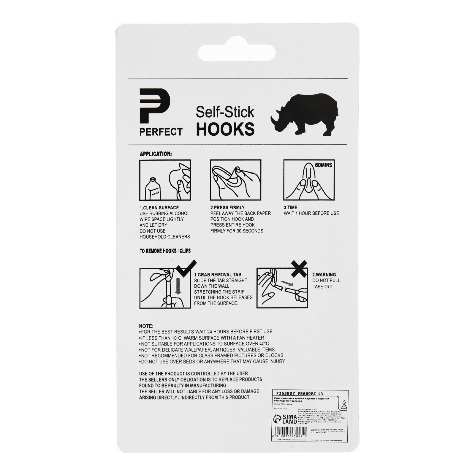 Крючок самоклеящийся, круглый, с системой бесследного удаления, 8,5*3,7 см, 1 шт.