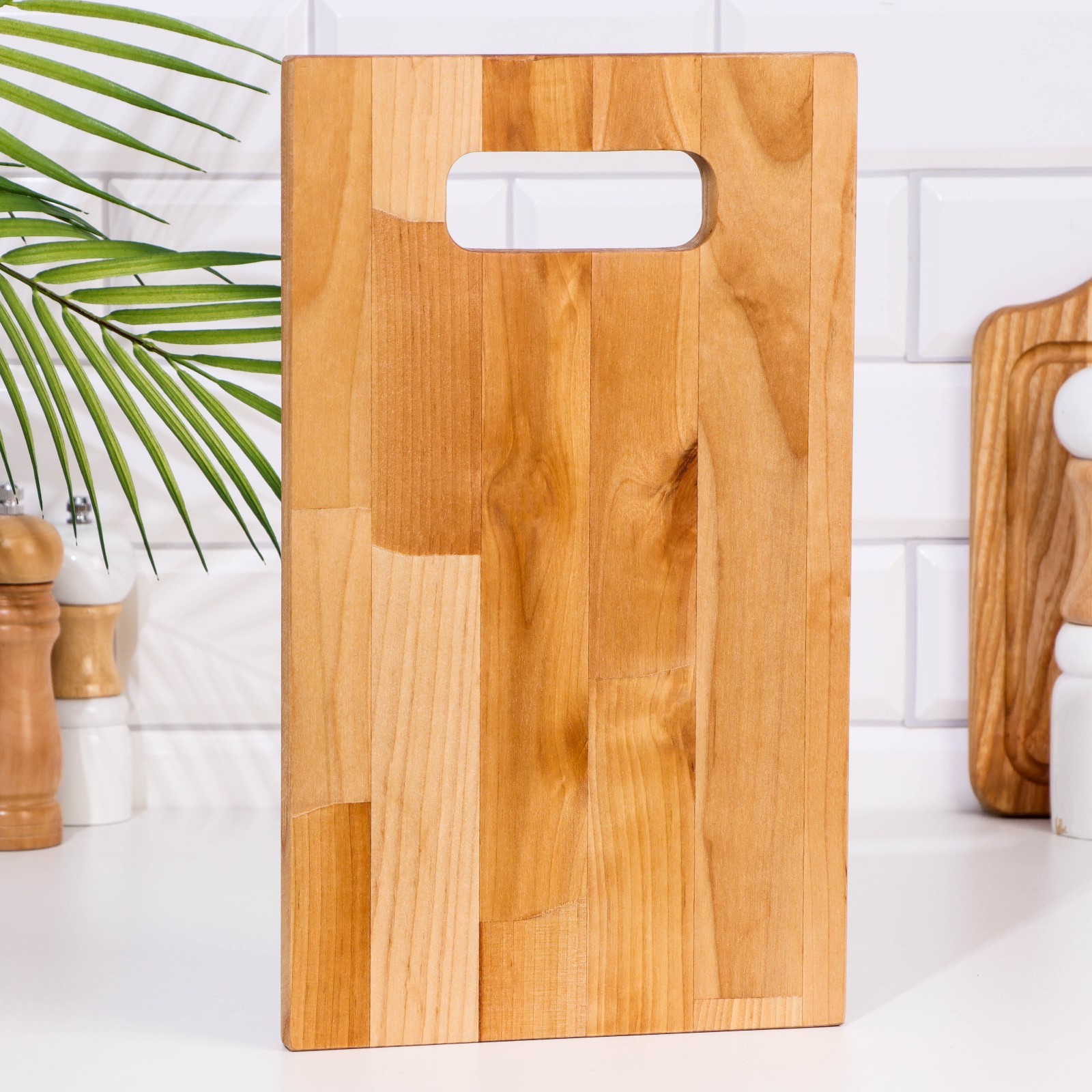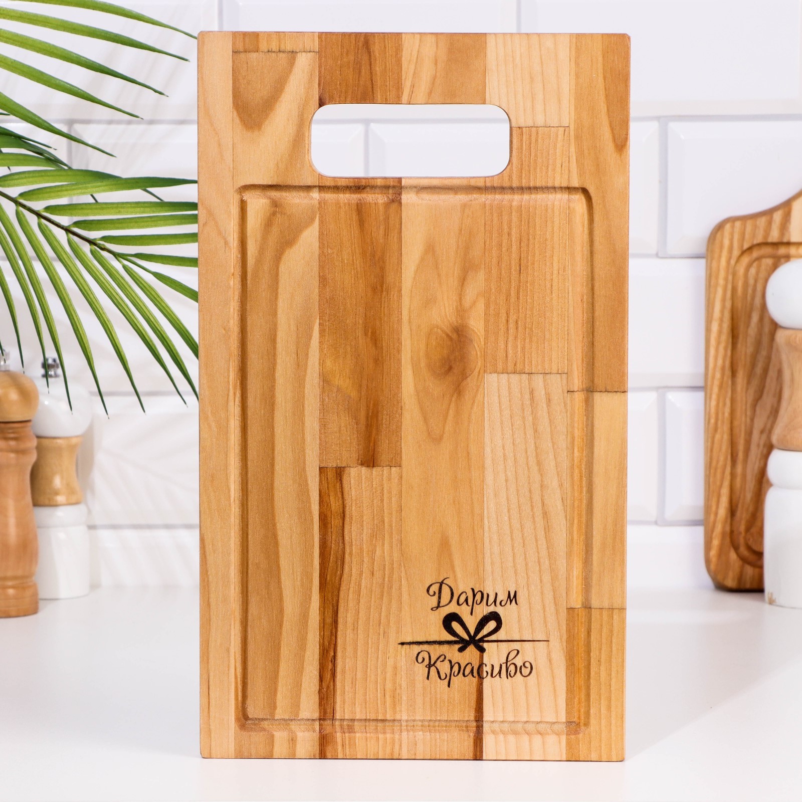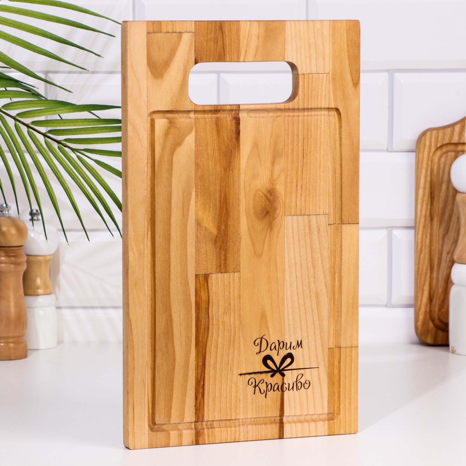 Доска разделочная "прямая ручка" средняя (кровосток) 34х20х1,8 см. Деревянная разделочная доска — это классика, актуальная во все времена. Она не боится воды и имеет длительный срок службы. Подходит для мяса и овощей: продукты на ней не скользят, что значительно облегчает нарезку и обеспечивает безопасность повару. Также изделие почти не тупит ножи. Особенности: легко моется и быстро сушится;удобно хранить, можно подвесить на крючок;безопасный природный материал;невысокая цена. Уход за деревянной посудой: 1. Перед первым использованием ополосните деревянное изделие в тёплой воде без добавления моющих средств. Протрите предмет впитывающей тканью. Оставьте его на 1–2 часа, чтобы испарилась вся влага. 2. Не оставляйте изделие надолго в воде, так как дерево впитывает влагу и по мере высыхания может растрескаться. 3. Храните посуду в месте, куда не попадают солнечные лучи и влага. 4. Мойте посуду только вручную, мягкой губкой с добавлением небольшого количества моющего средства. 5. Не оставляете деревянную посуду грязной или мокрой надолго. 6. После мытья тщательно протрите изделие и высушите в вертикальном положении. Цвет: Бежевый Форма: Прямоугольная Длина, см: 34 Ширина, см: 20 Вид дерева: Берёза Материал: Дерево Тип доски: Стандартная Температурное ограничение: Нет Можно мыть в посудомоечной машине: Нет Особенности: Подвесная Форма: Прямоугольник  развернуть описание ▼