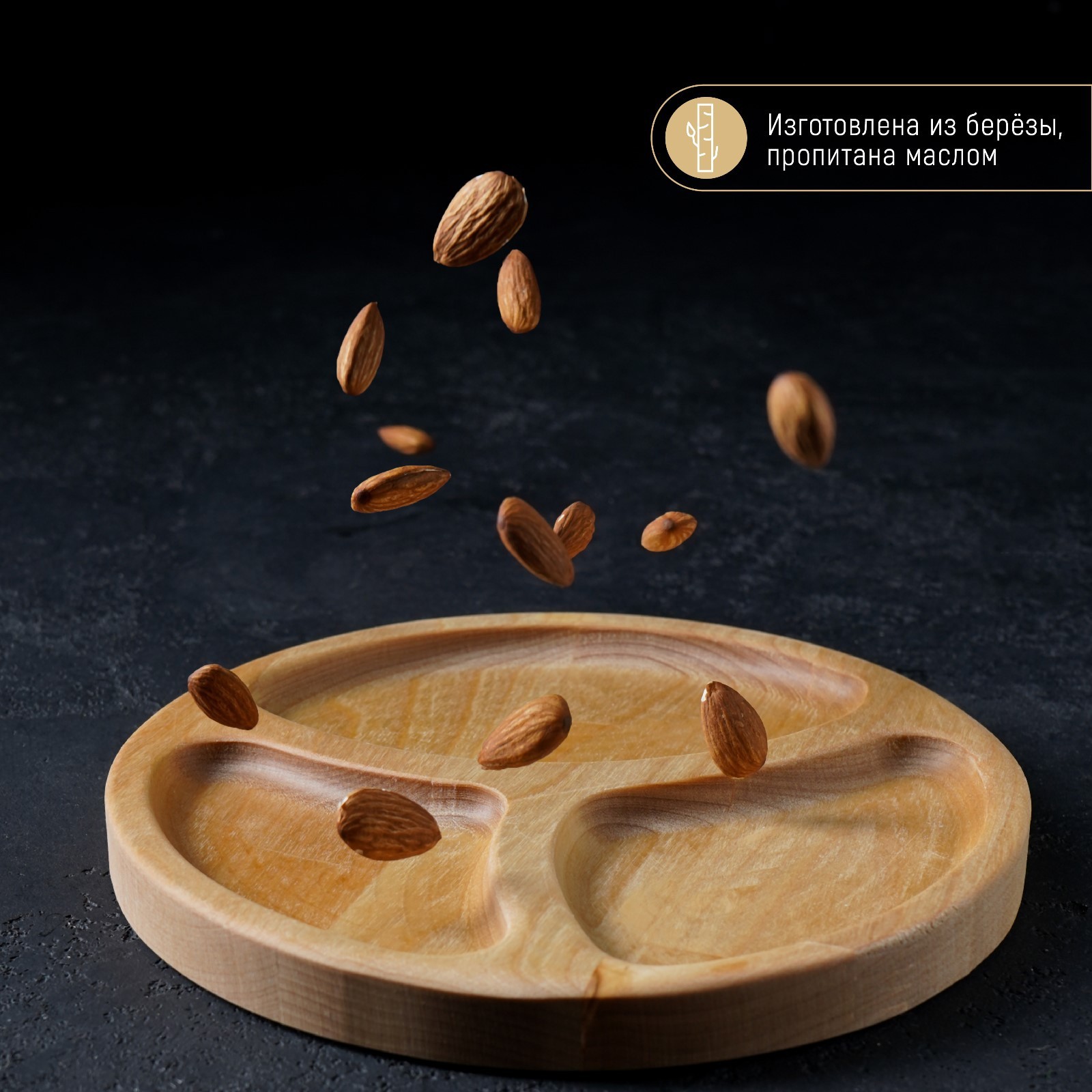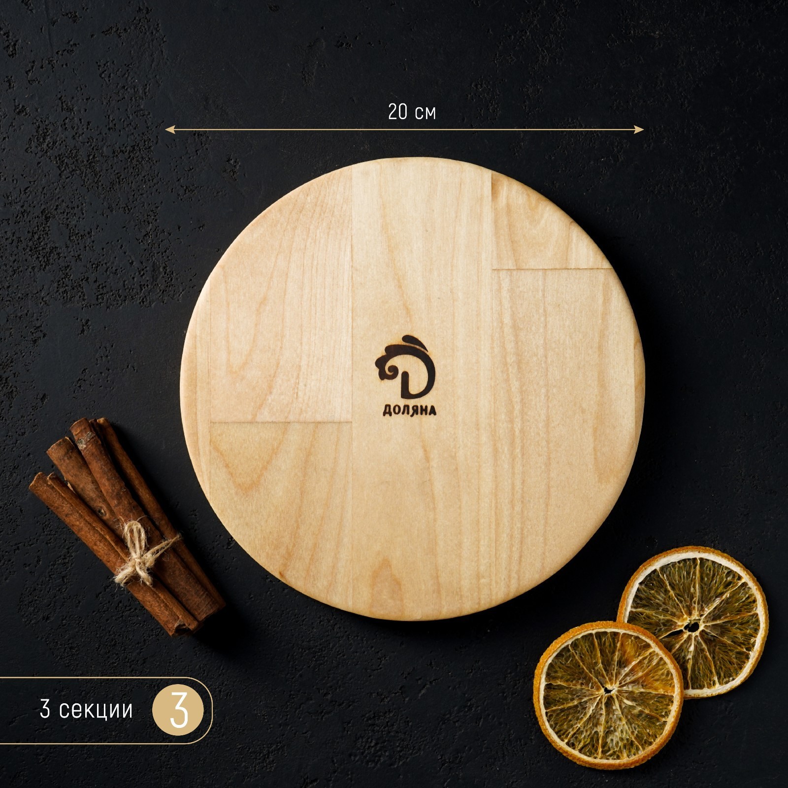 Менажница круглая доляна «валенсия», D=20 см, 3 секции, берёза, пропитана маслом