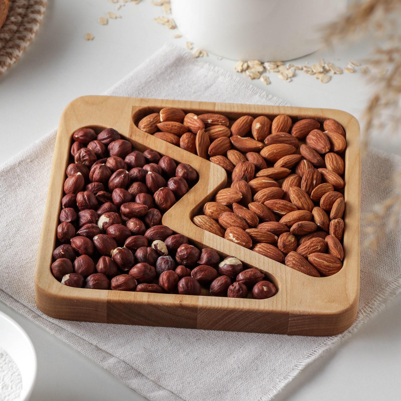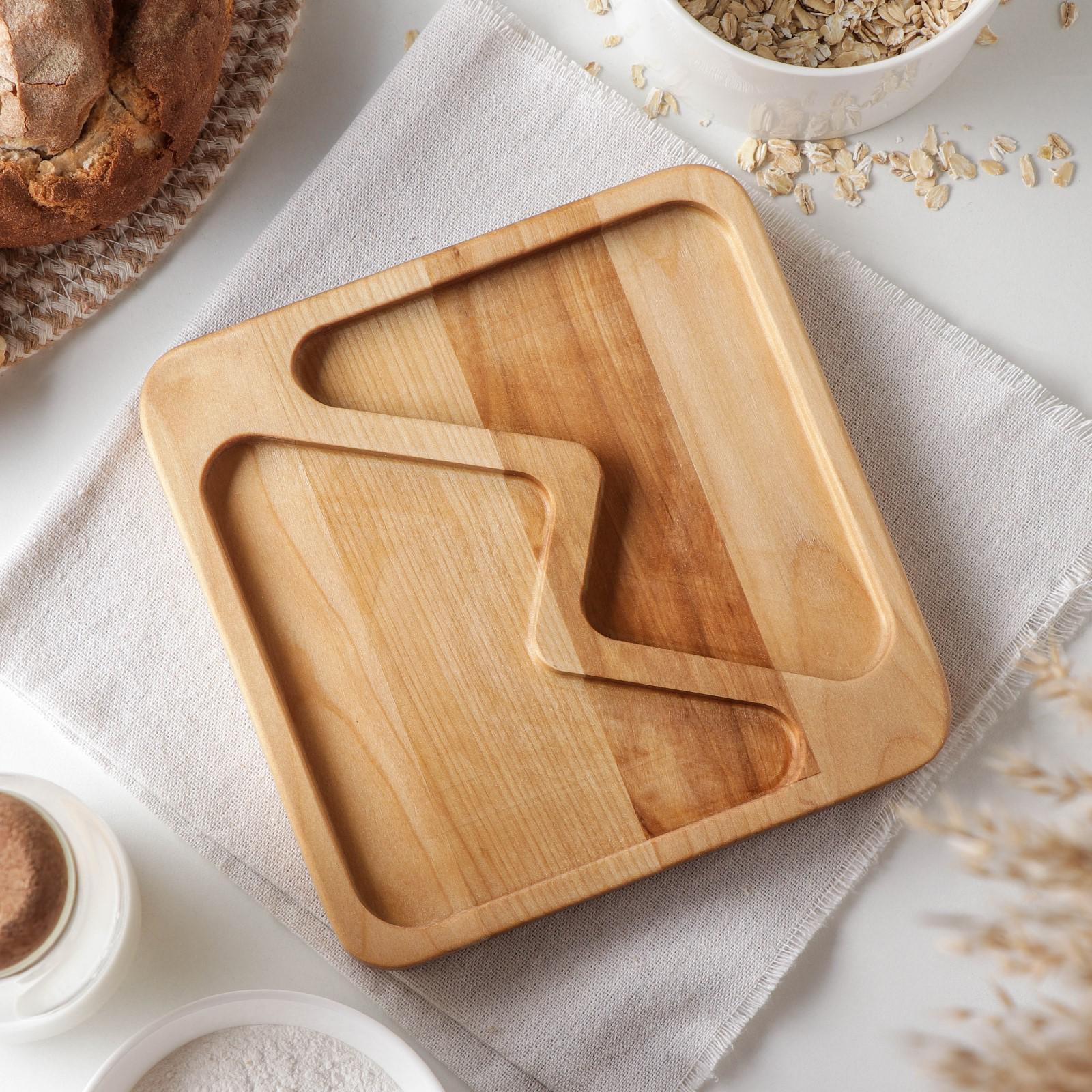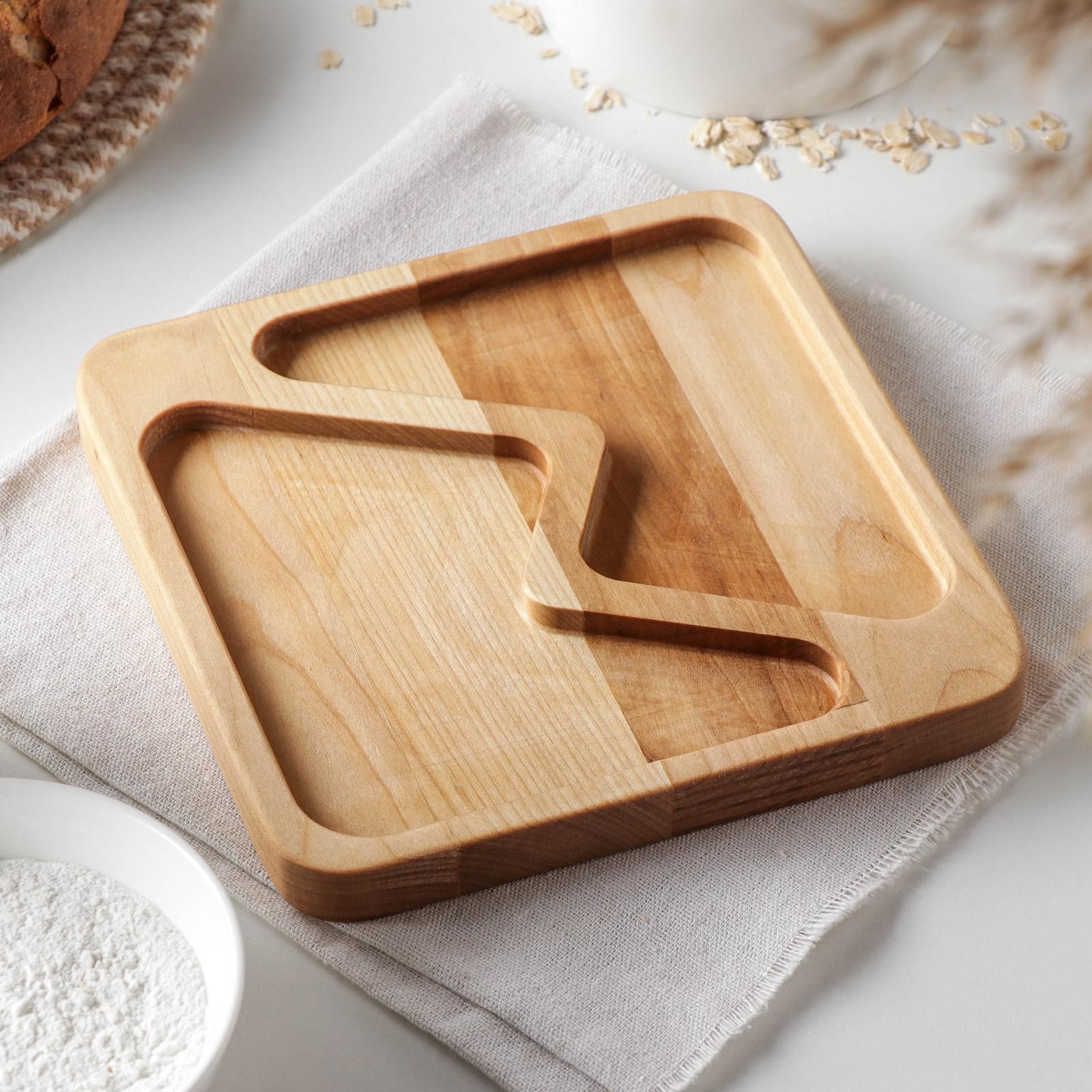 Менажница квадратная доляна «авеллино», 20x20 см, 2 секции, берёза, пропитана маслом