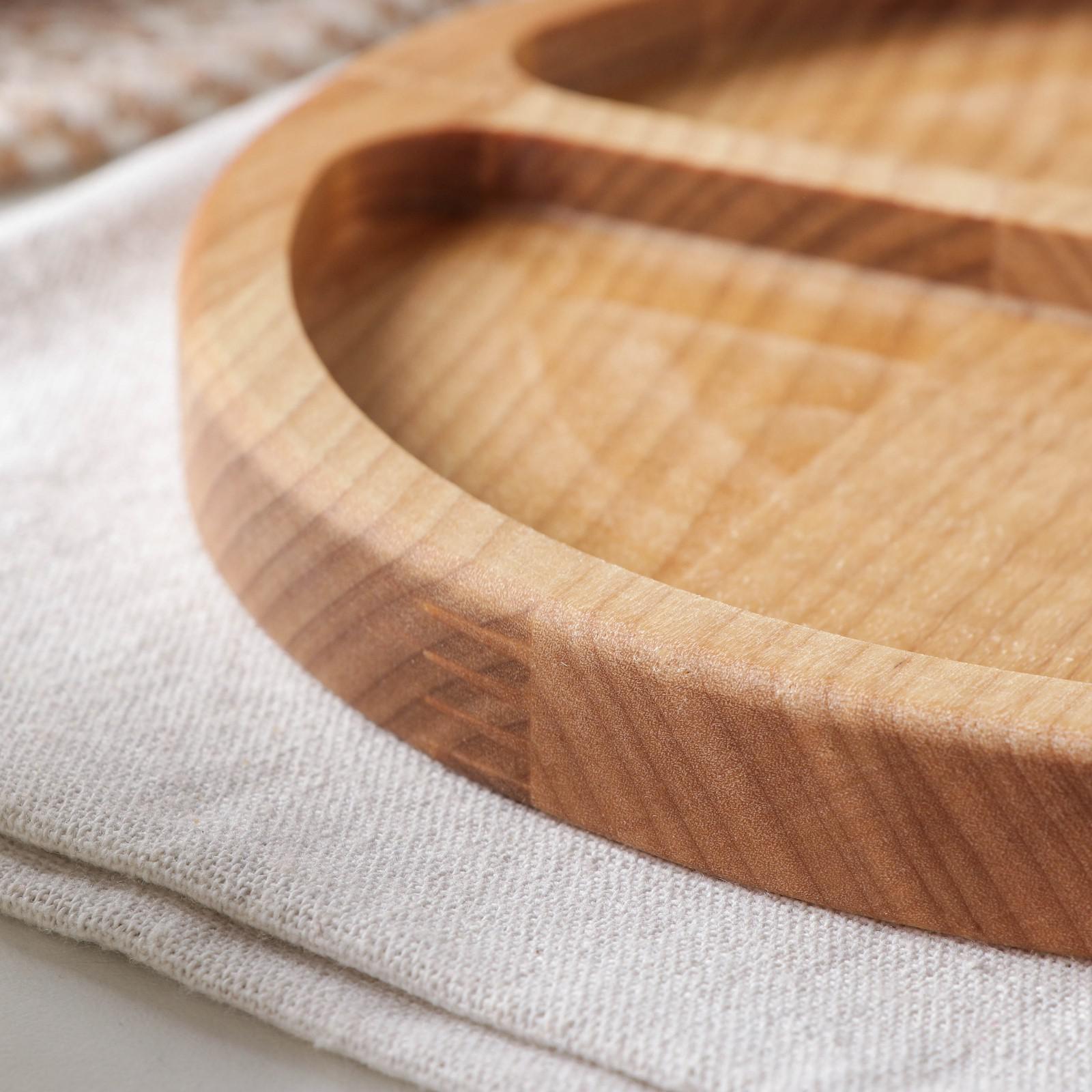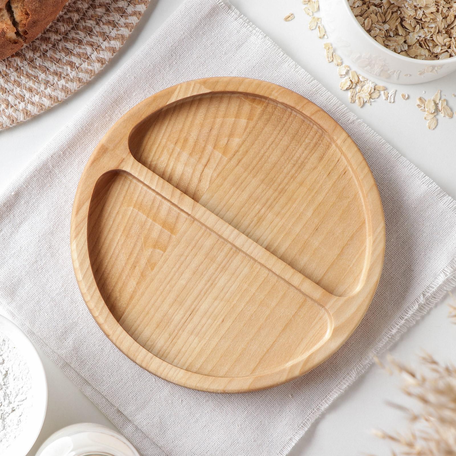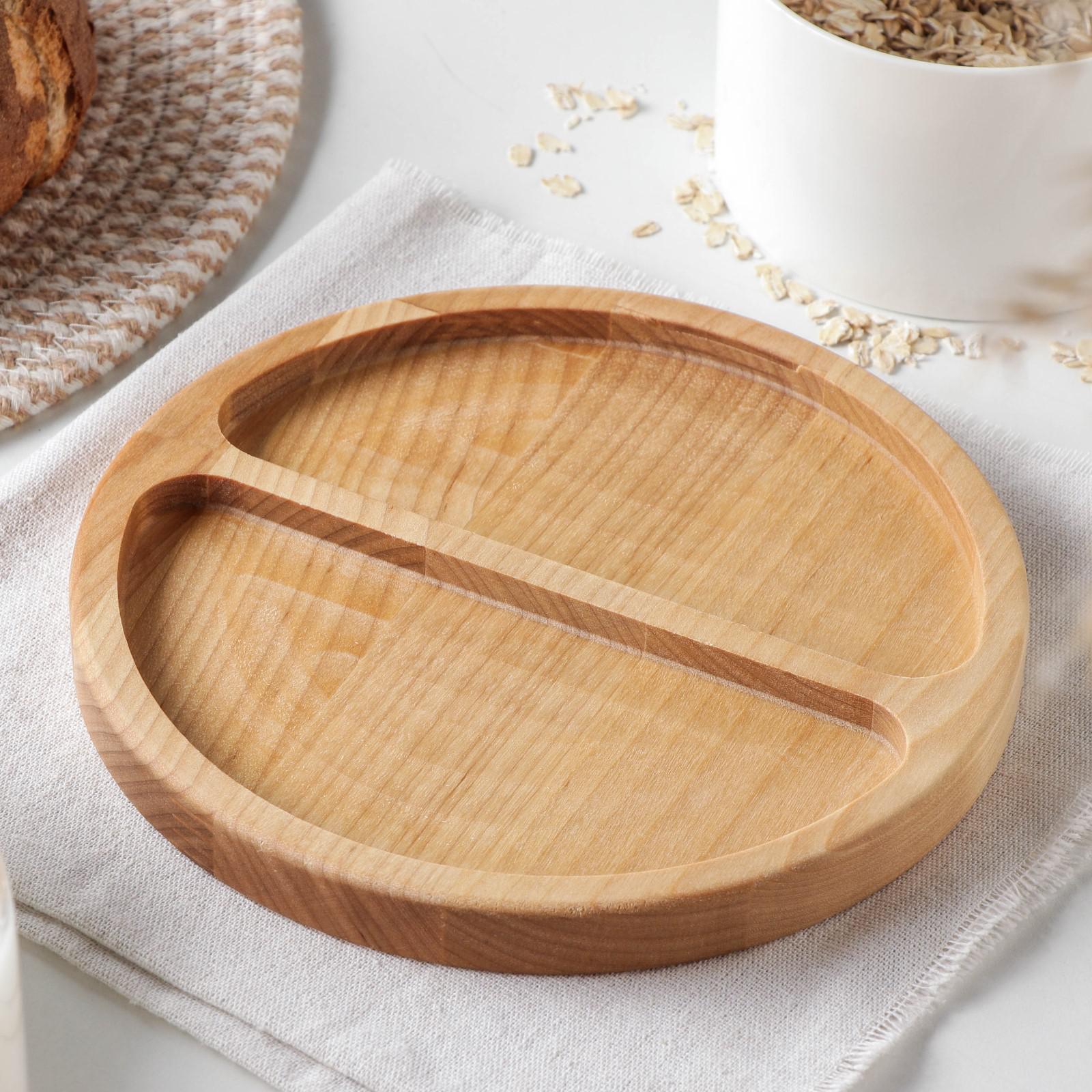 Менажница круглая доляна «генуя», D=20 см, 2 секции, берёза, пропитана маслом