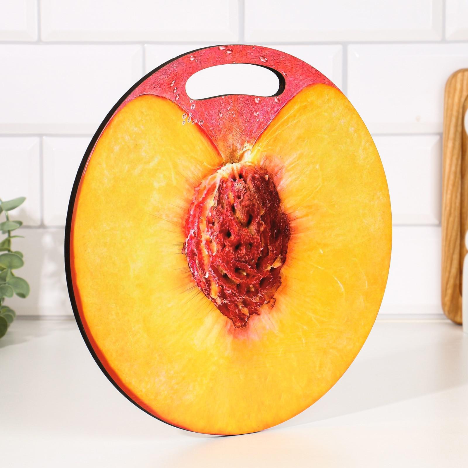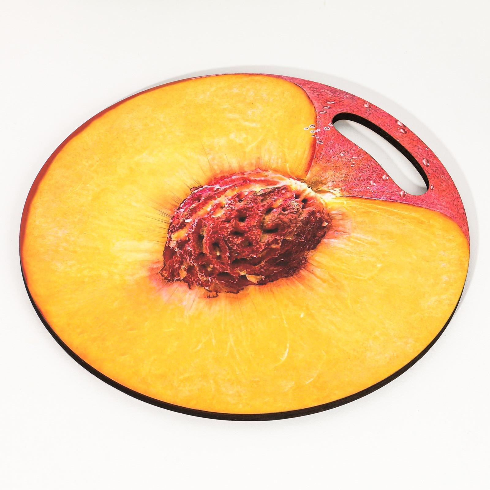 Доска разделочная и сервировочная круглая кухонная "персик в разрезе", 25,5 см