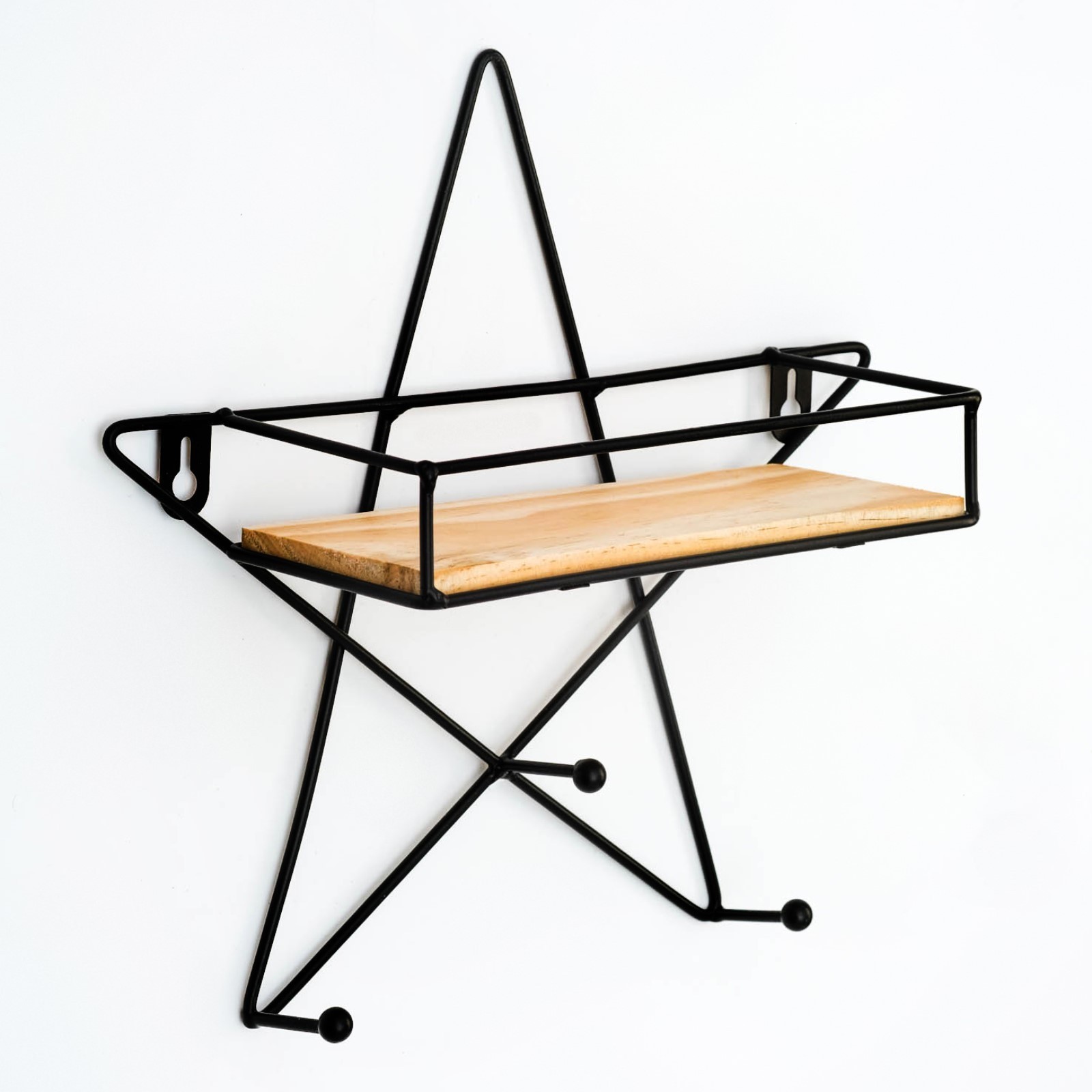 Вешалка настенная с полкой "звезда", с подсветкой, 3 крючка, черная