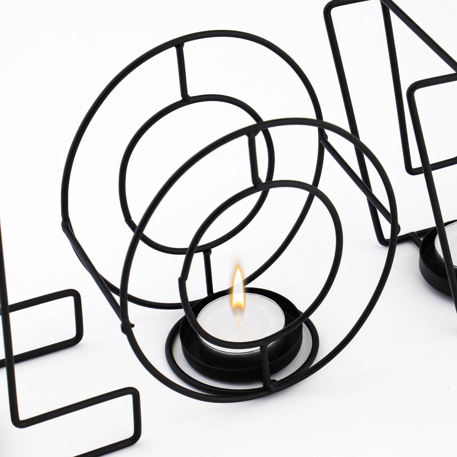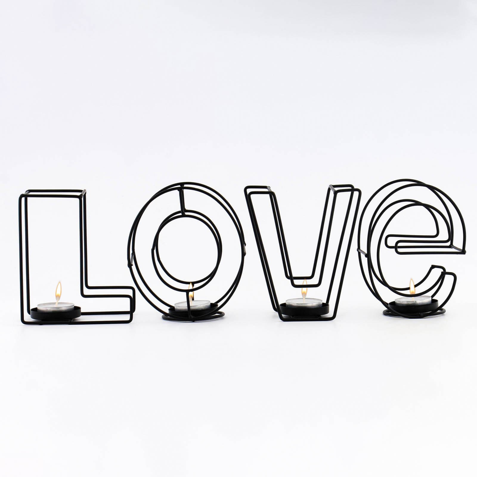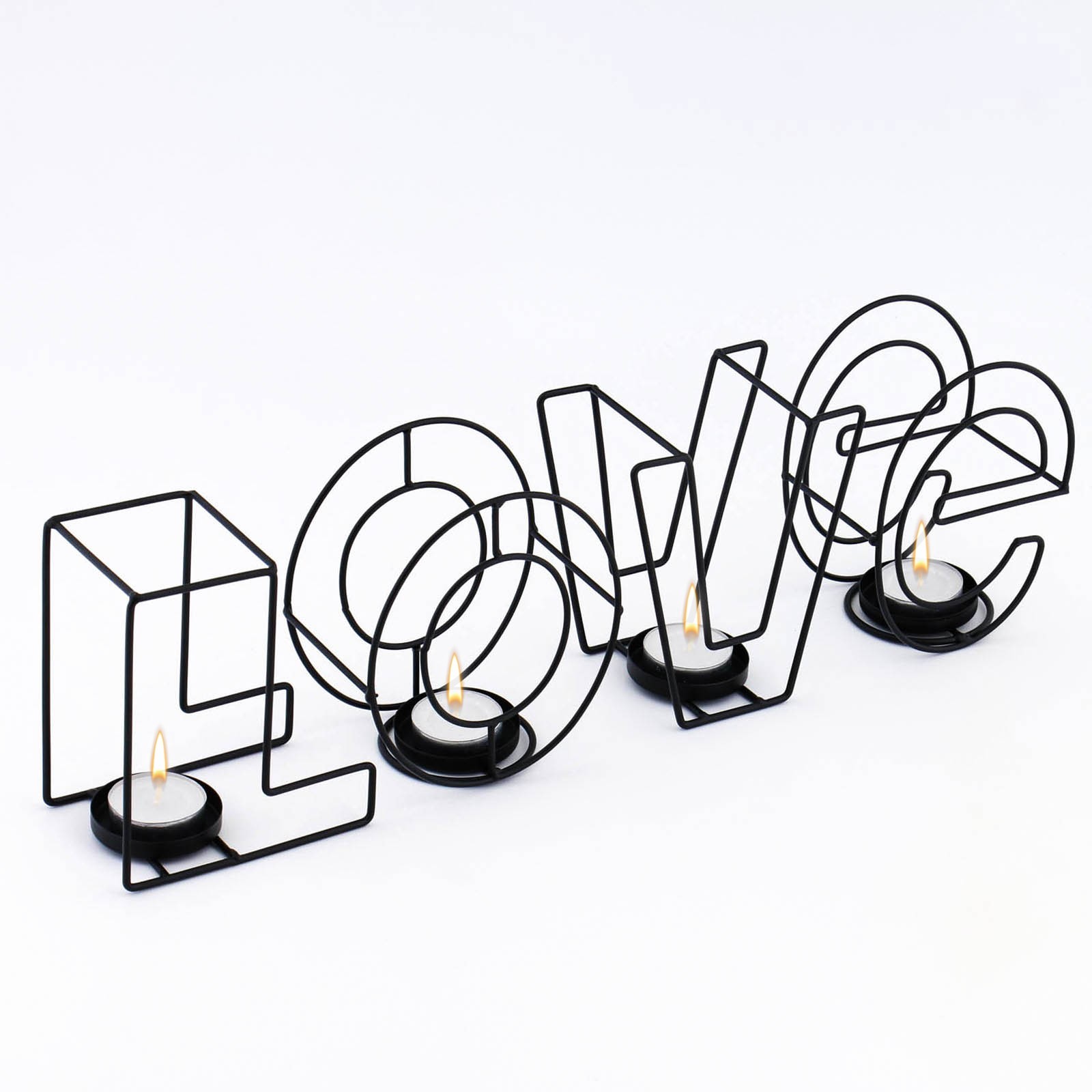 Подсвечник металлический на 4 свечи take it easy «love: слово», 13.5 42 см, чёрный. Креативный подсвечник для интерьера с фигурными прорезями слова «LOVE» отлично подойдет для украшения спальни, а также для вечера наедине со своей половинкой. Плоское дно позволяет поставить подсвечник на столик или прикроватную тумбочку. Набор:Нет|Цвет:Чёрный|Высота, см:13.5|Диаметр под свечу, см:5|Тематика праздника:Универсальная тематика|Тематика праздника:Свадьба|Тематика праздника:14 Февраля|Материал:Металл|Свеча в комплекте:Нет|Страна:Китай  развернуть описание ▼