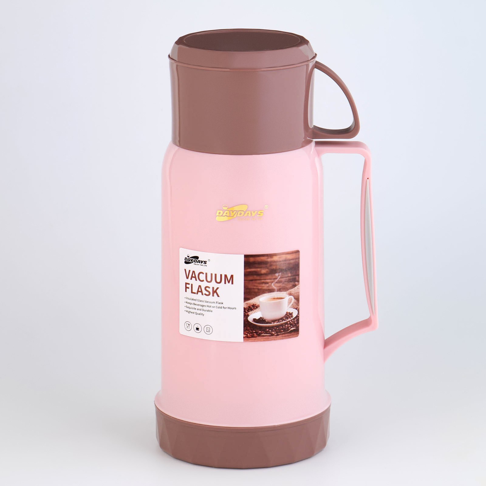 Термос 1 л, со стеклянной колбой, сохраняет тепло 12 ч, с кружкой, микс