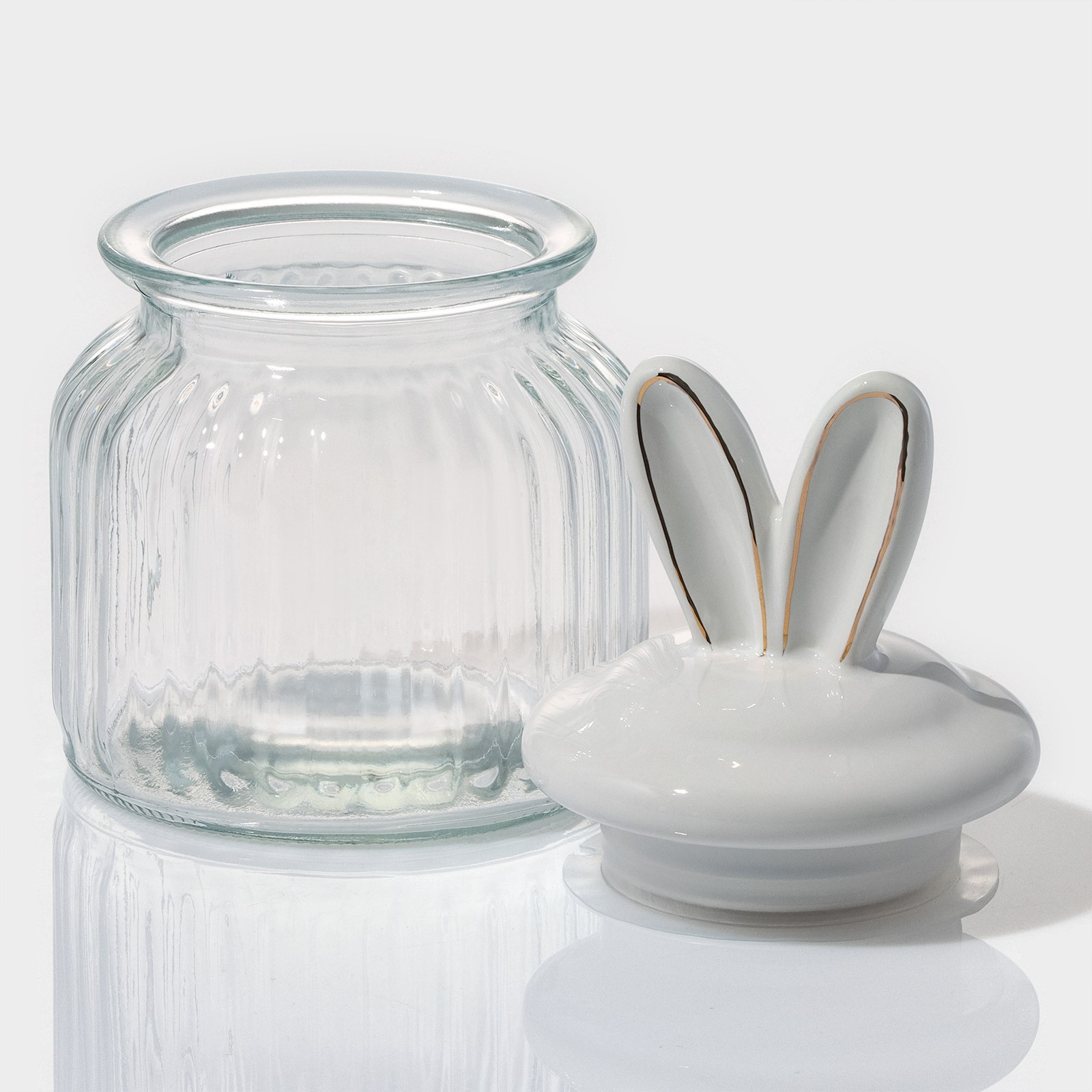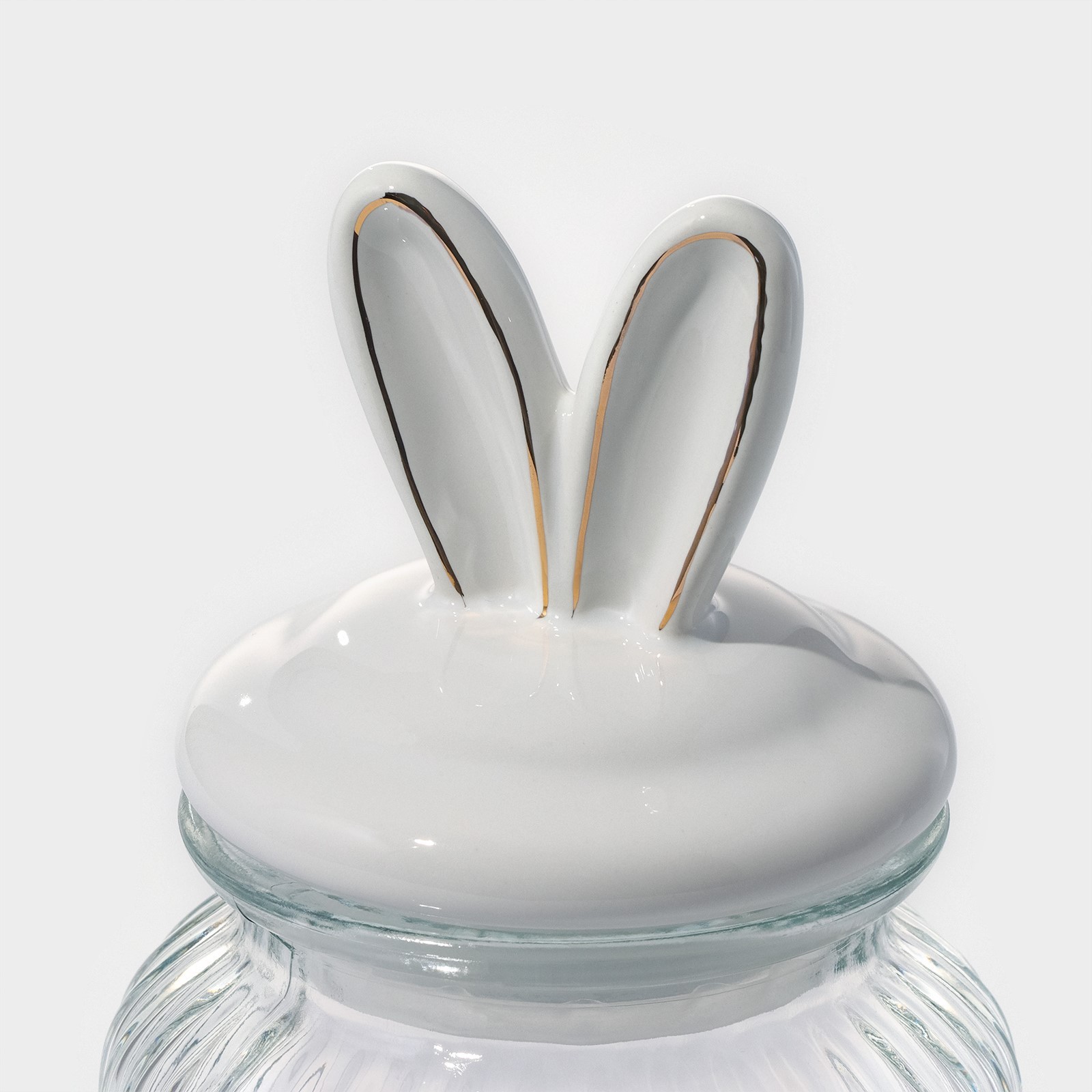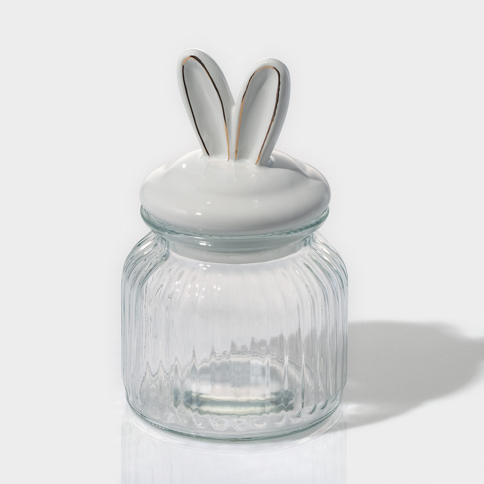Банка стеклянная для сыпучих продуктов с керамической крышкой доляна «зайка в золотом», 600 мл