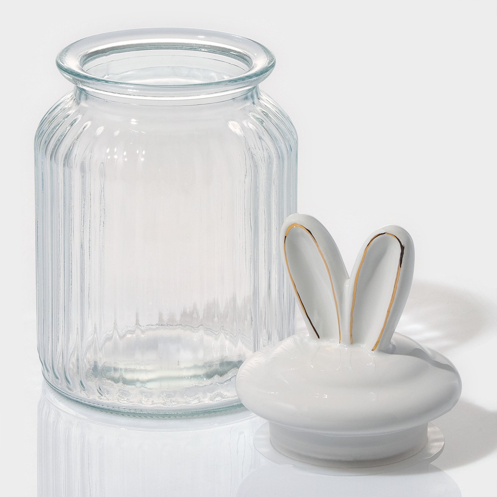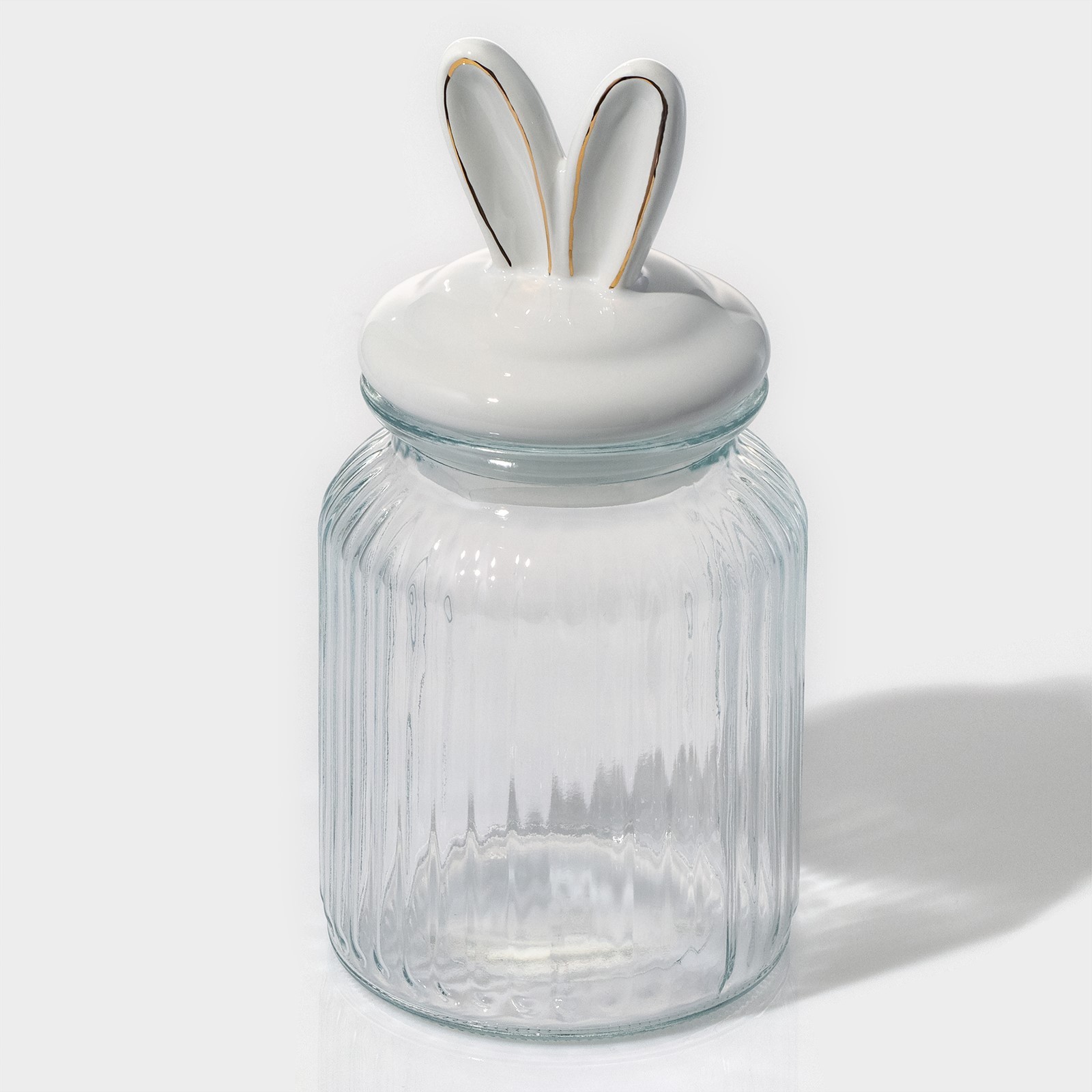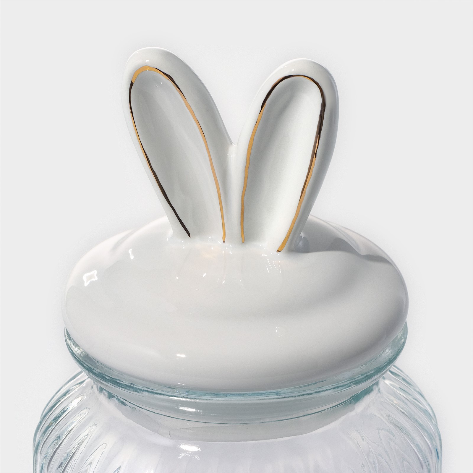 Банка стеклянная для сыпучих продуктов с керамической крышкой доляна «зайка в золотом», 950 мл