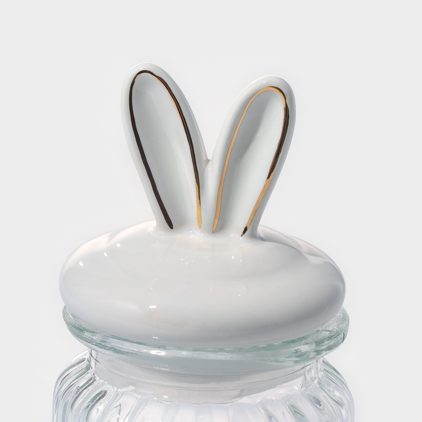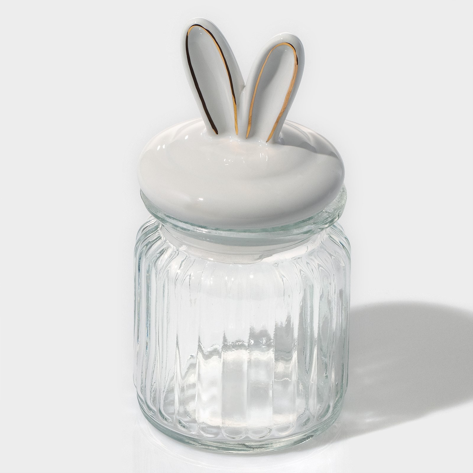Банка стеклянная для сыпучих продуктов с керамической крышкой доляна «зайка в золотом», 230 мл
