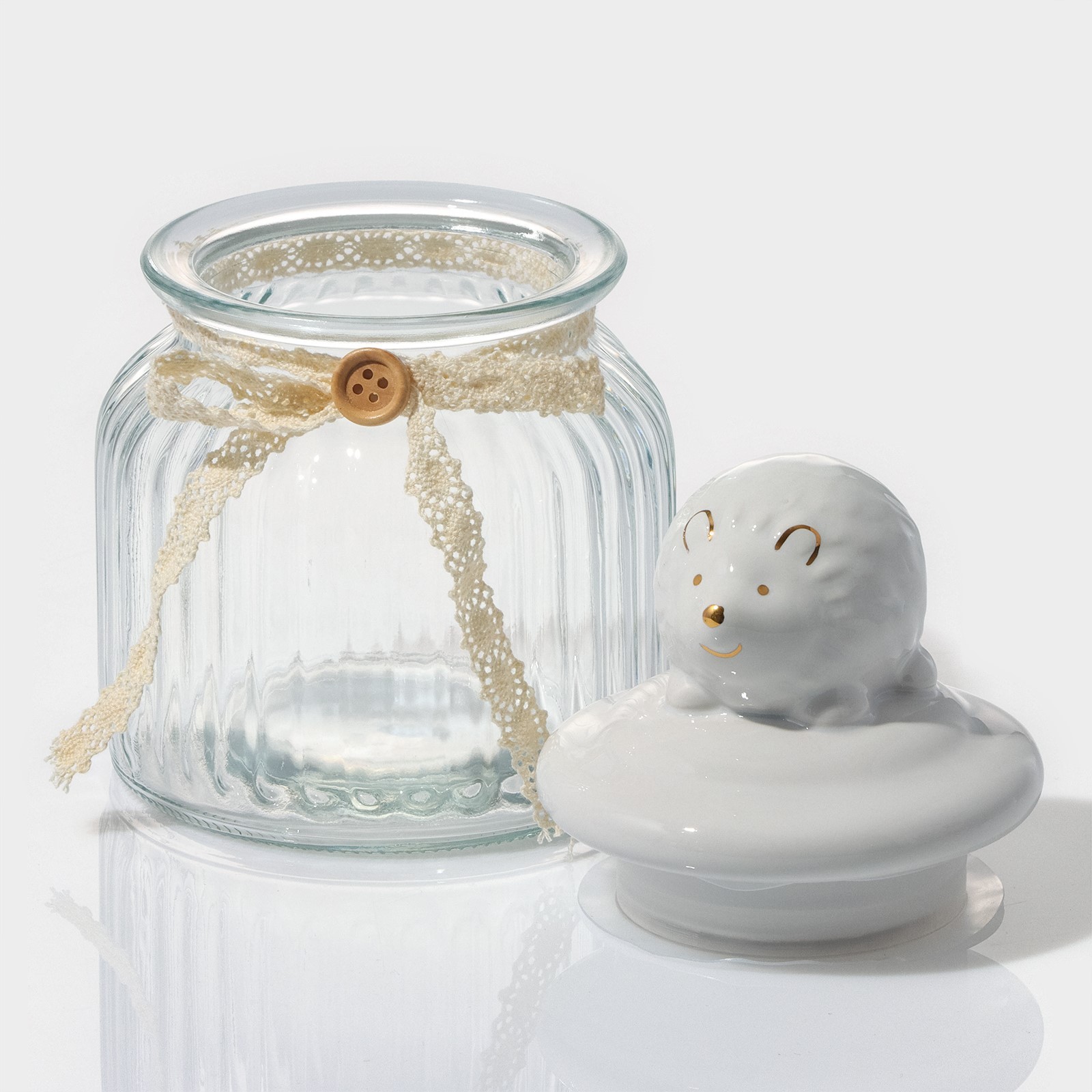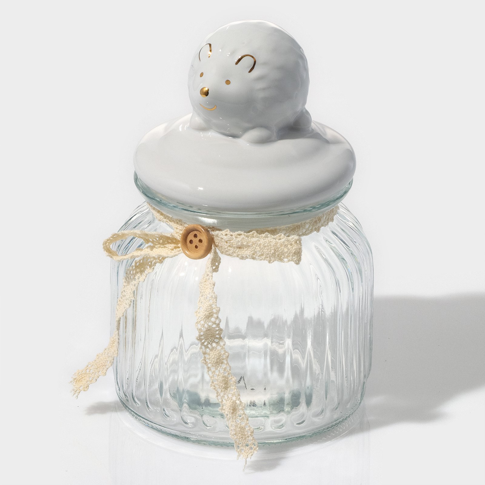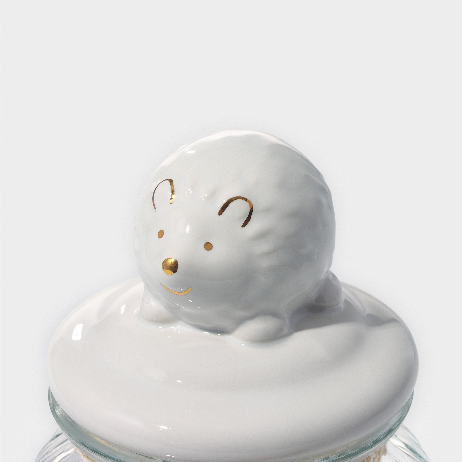 Банка стеклянная для сыпучих продуктов с керамической крышкой доляна «ёжик в золотом», 600 мл