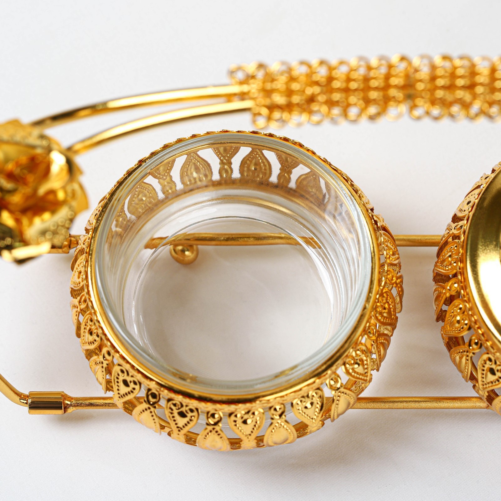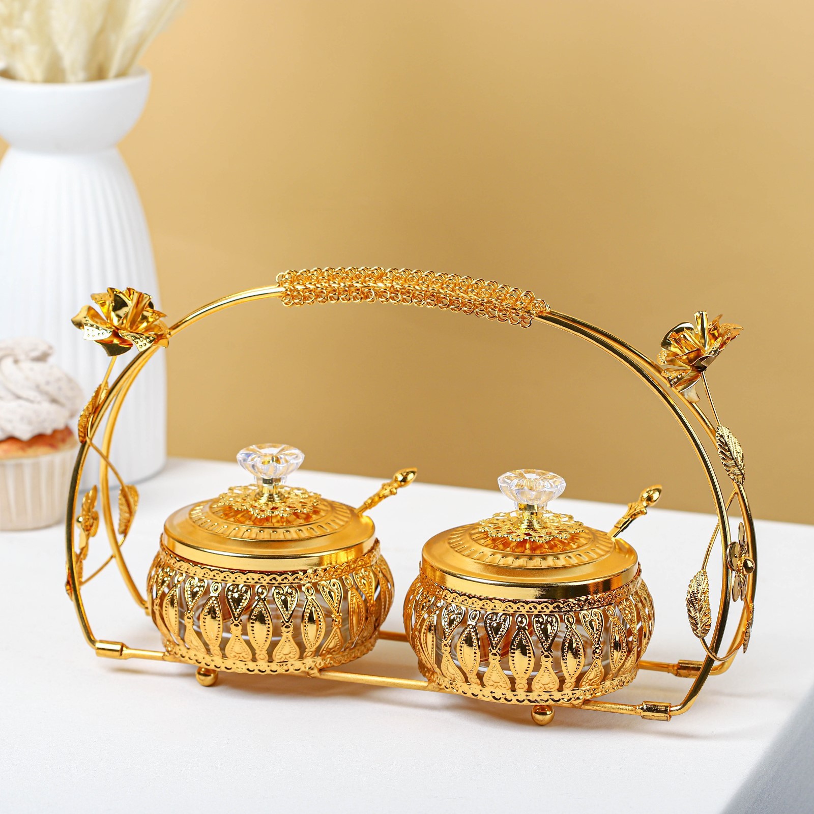 Набор сахарниц «бонжур», с ложками на подставке, цвет золотой