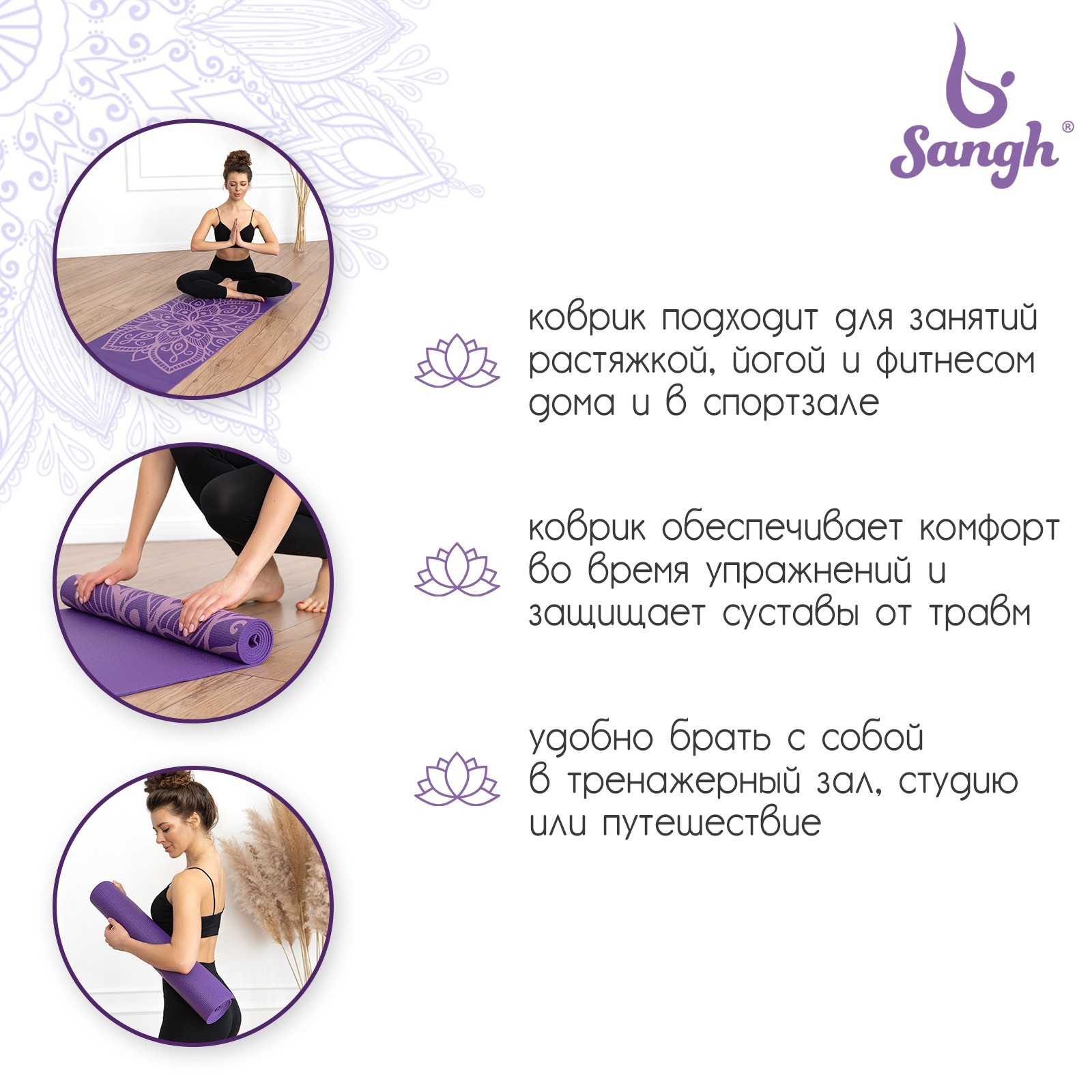 Коврик для йоги Sangh «мандала», 173х61х0,4 см, цвет фиолетовый