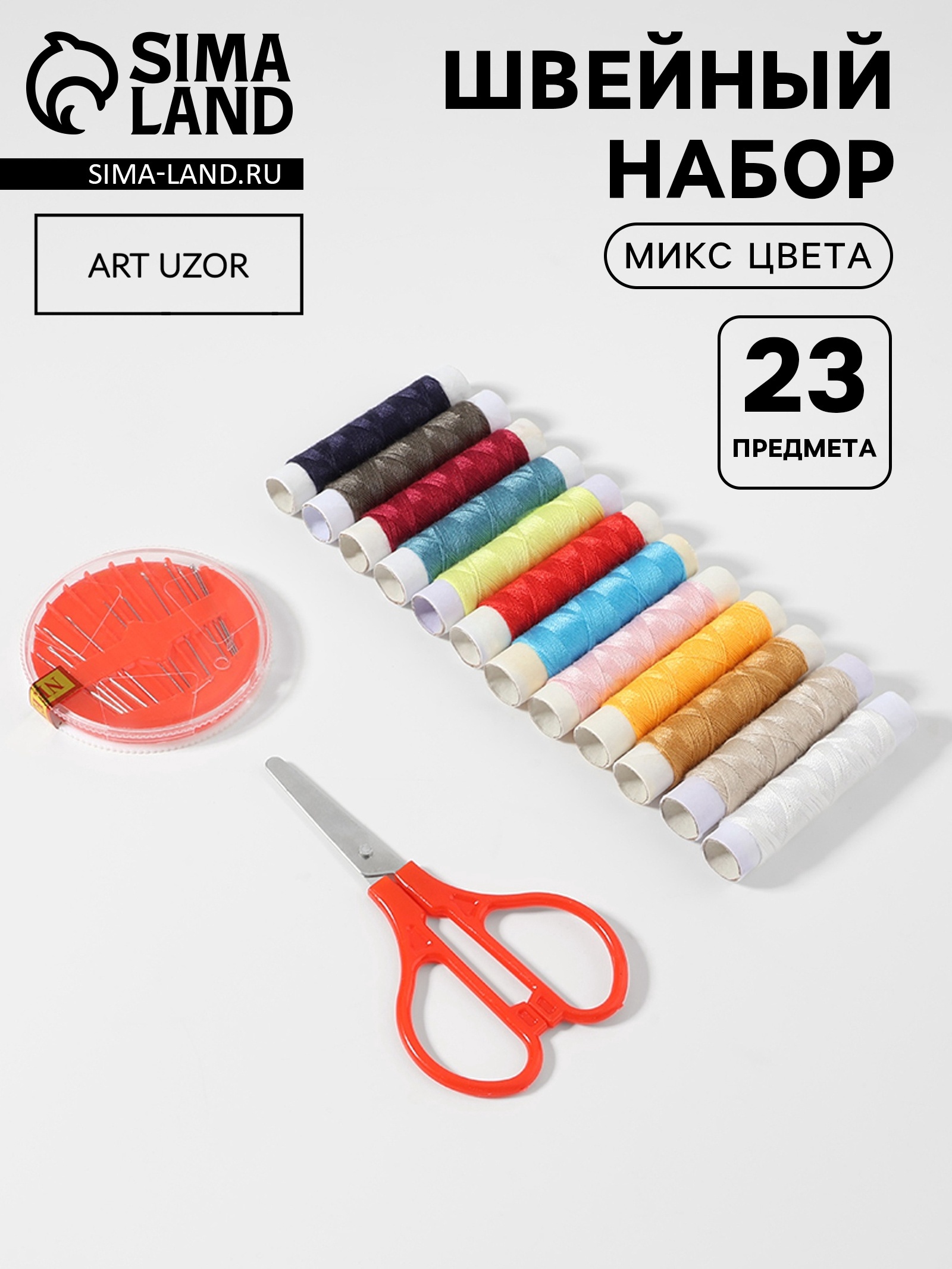 Швейный набор, 23 предмета, в блистере, микс
