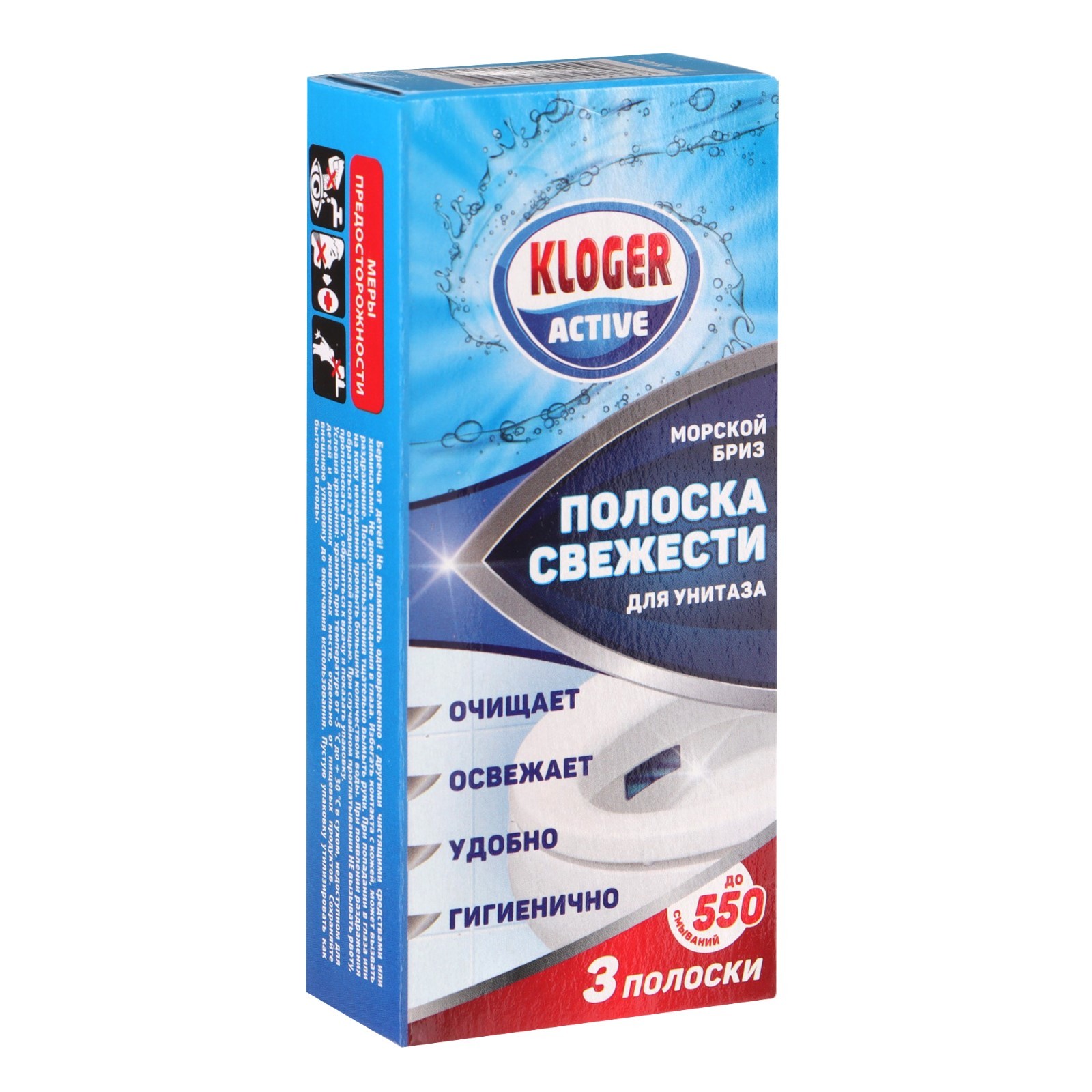 Чистящее средство для унитазов Kloger "морской бриз", полоски чистоты, 10 г, 3 шт.