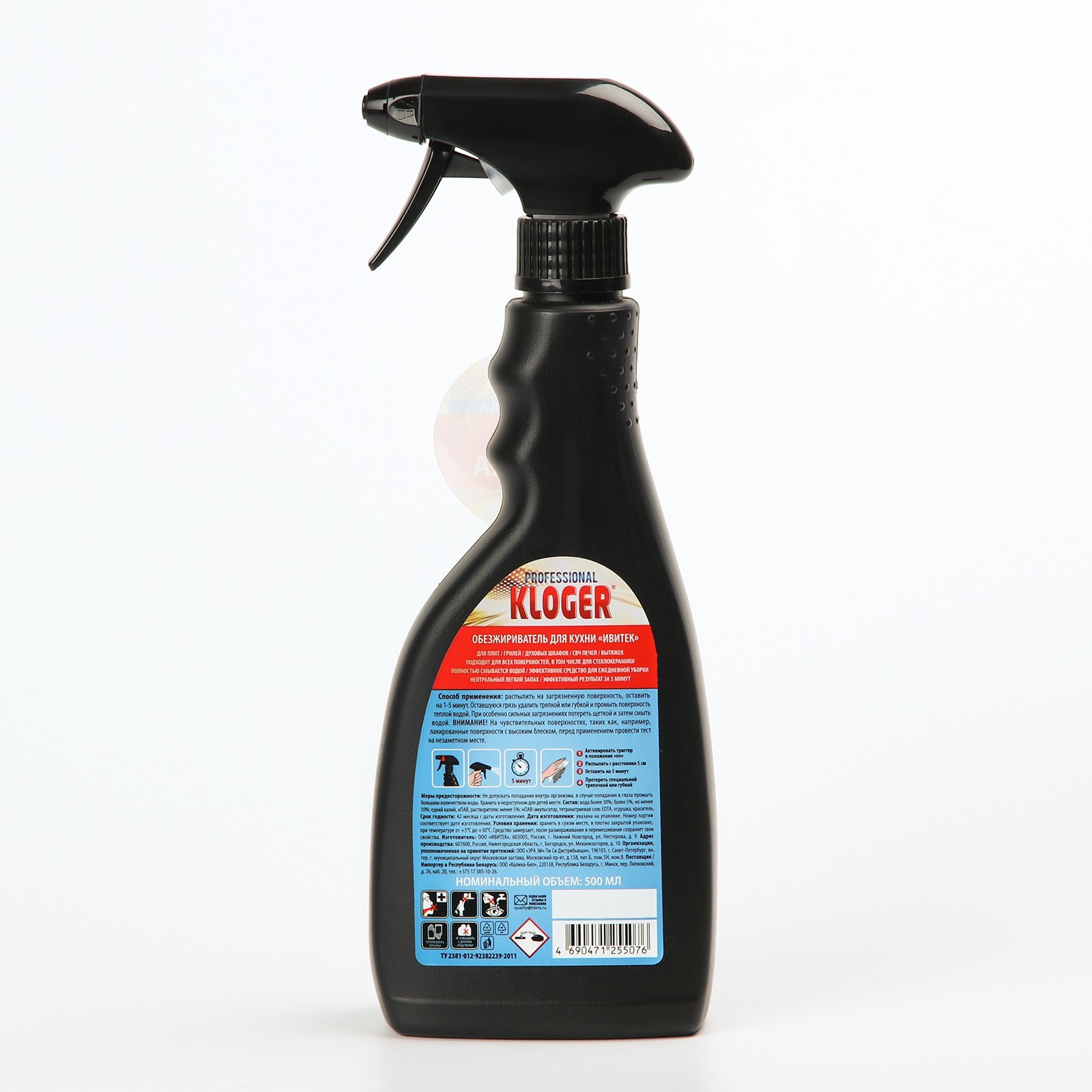 Чистящее средство "kloger prof", жироудалитель для плит и микроволновых печей, 500 мл. Супер быстрый эффект за 10 секунд! Особое средство для мгновенного удаления самых стойких застарелых и подгоревших масложировых загрязнений, нагара, копоти с поверхностей кухонных плит, духовых шкафов, грилей, кастрюль, сковородок, с прочих поверхностей для приготовления пищи, пароуловителей, кафельной плитки в том числе и с охлажденных поверхностей. Способ применения: нанести средство с помощью распылителя с расстояния 15-20 см на загрязненную поверхность, подождать, 10-15 секунд, потереть влажной тряпкой и смыть водой. Меры предосторожности: может вызвать коррозию металлов. При попадании на кожу и в глаза вызывает химические ожоги. Не допускать попадания средства в глаза, на кожу, слизистые оболочки, не вдыхать. Состав: очищенная вода 30%, гидроксид калия 5%, растворители 5%, неиногенные поверхностно-активные вещества 5%, загуститель 5%, краситель 5%, отдушка 5%. Вес, г/Объём, мл: 500 Назначение: Для кухонной техники Температурное ограничение: Нет  развернуть описание ▼